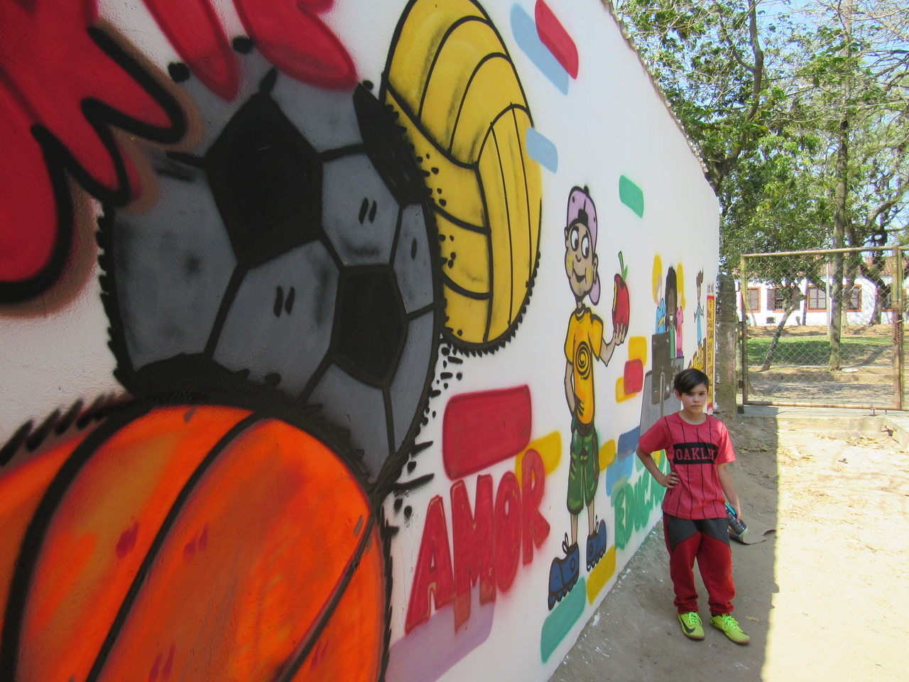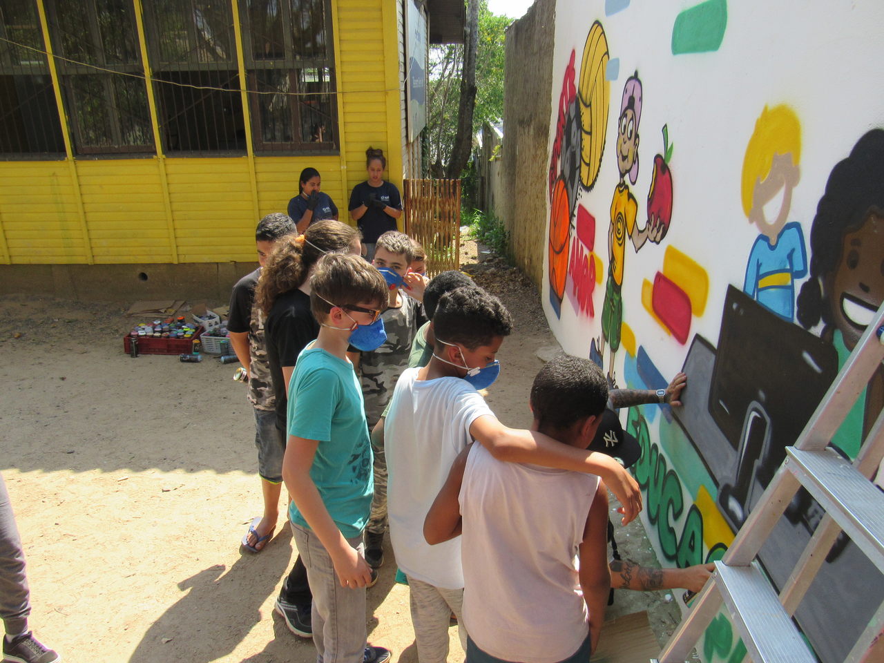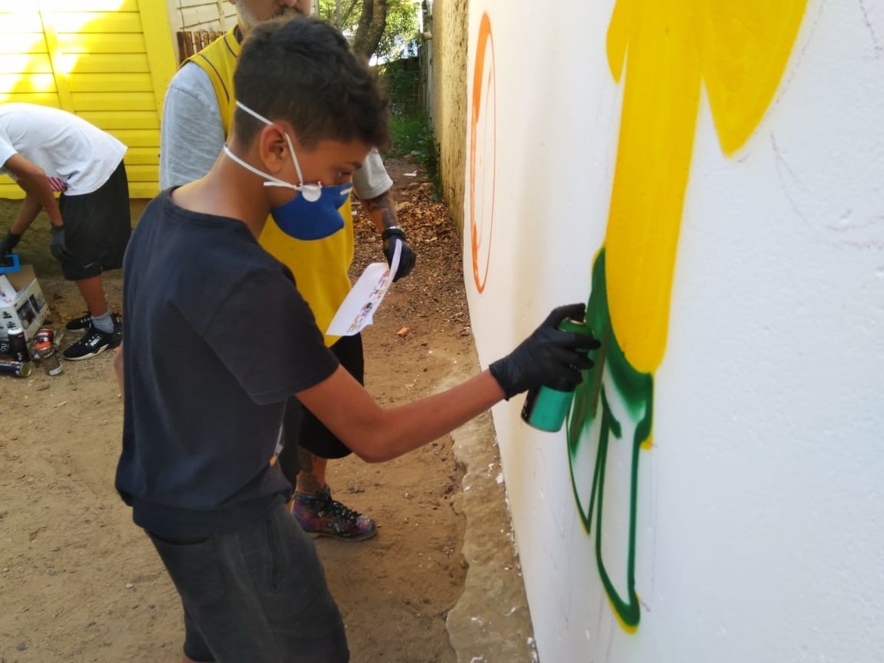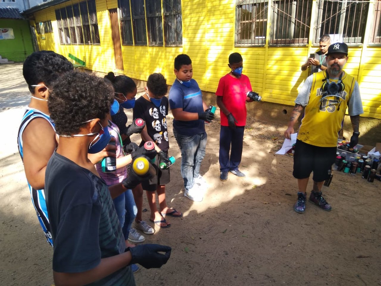 Integração com a Associação Comunitária Belém Velho realizada no dia 01/10, oficina essa ministrada pelo grafiteiro Fábio Bison, em parceria com a ASCOBEV, os adolescentes da modalidade de customização do Instituto São Benedito deram uma oficina para as crianças da associação, realizando desenhos em forma de grafite nos muros da mesma.