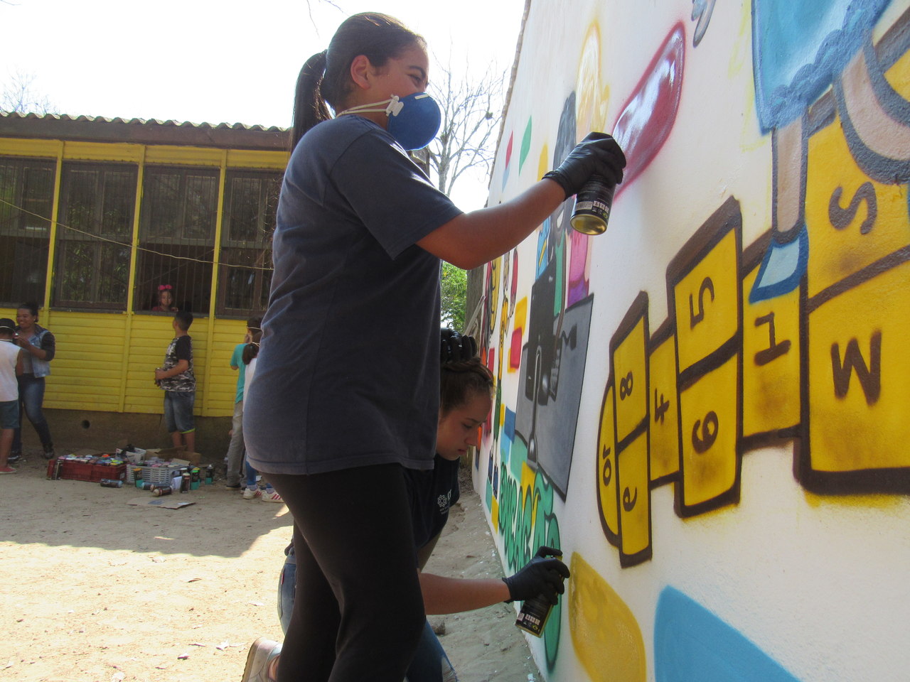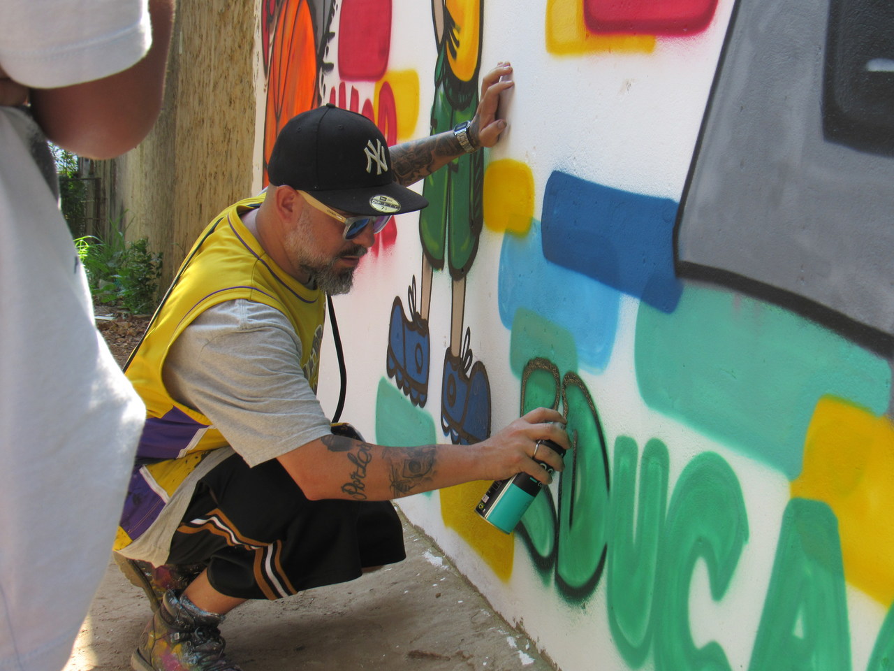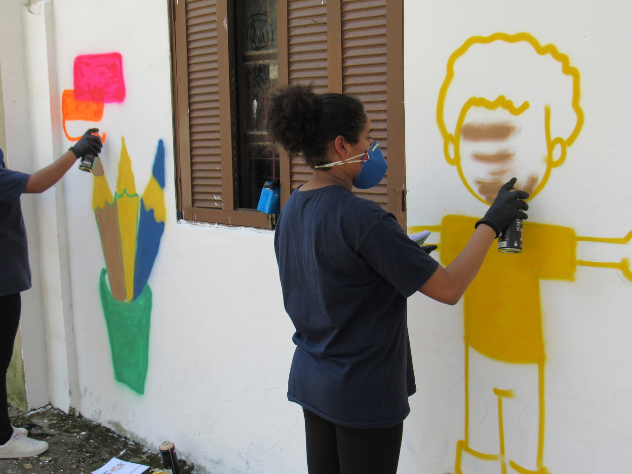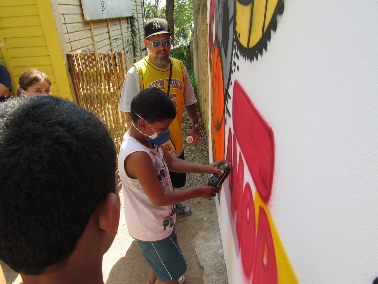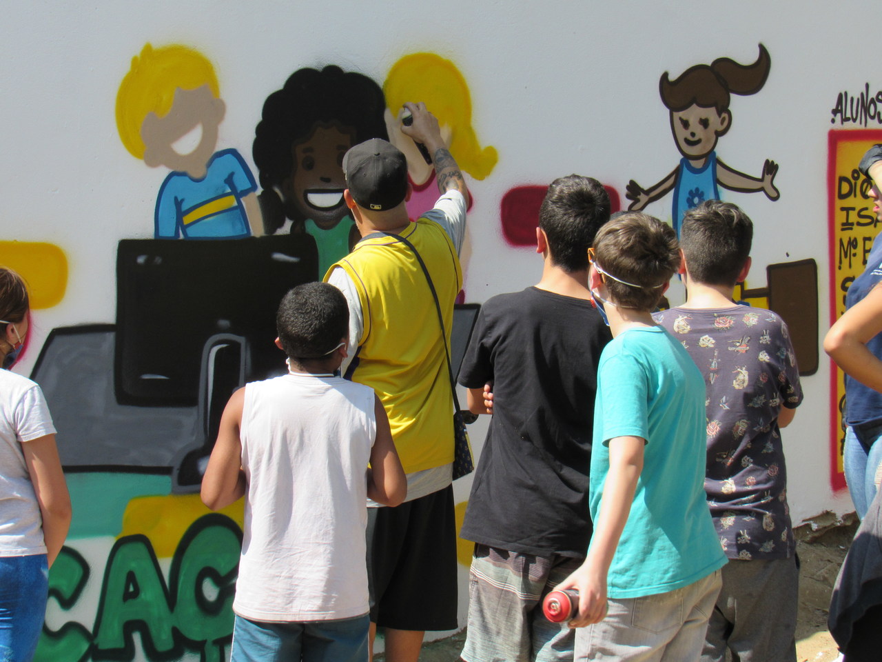 Integração com a Associação Comunitária Belém Velho realizada no dia 01/10, oficina essa ministrada pelo grafiteiro Fábio Bison, em parceria com a ASCOBEV, os adolescentes da modalidade de customização do Instituto São Benedito deram uma oficina para as crianças da associação, realizando desenhos em forma de grafite nos muros da mesma.