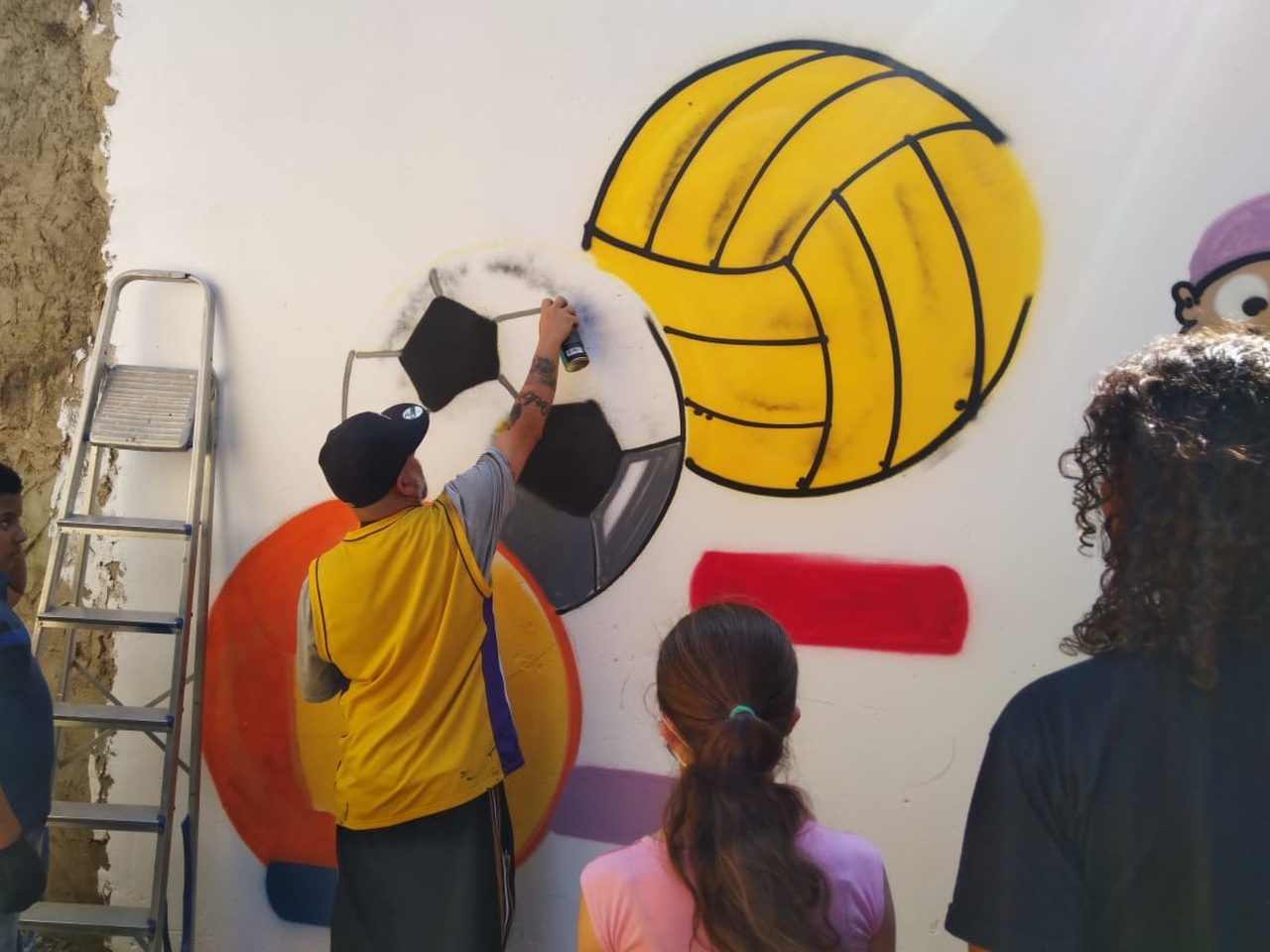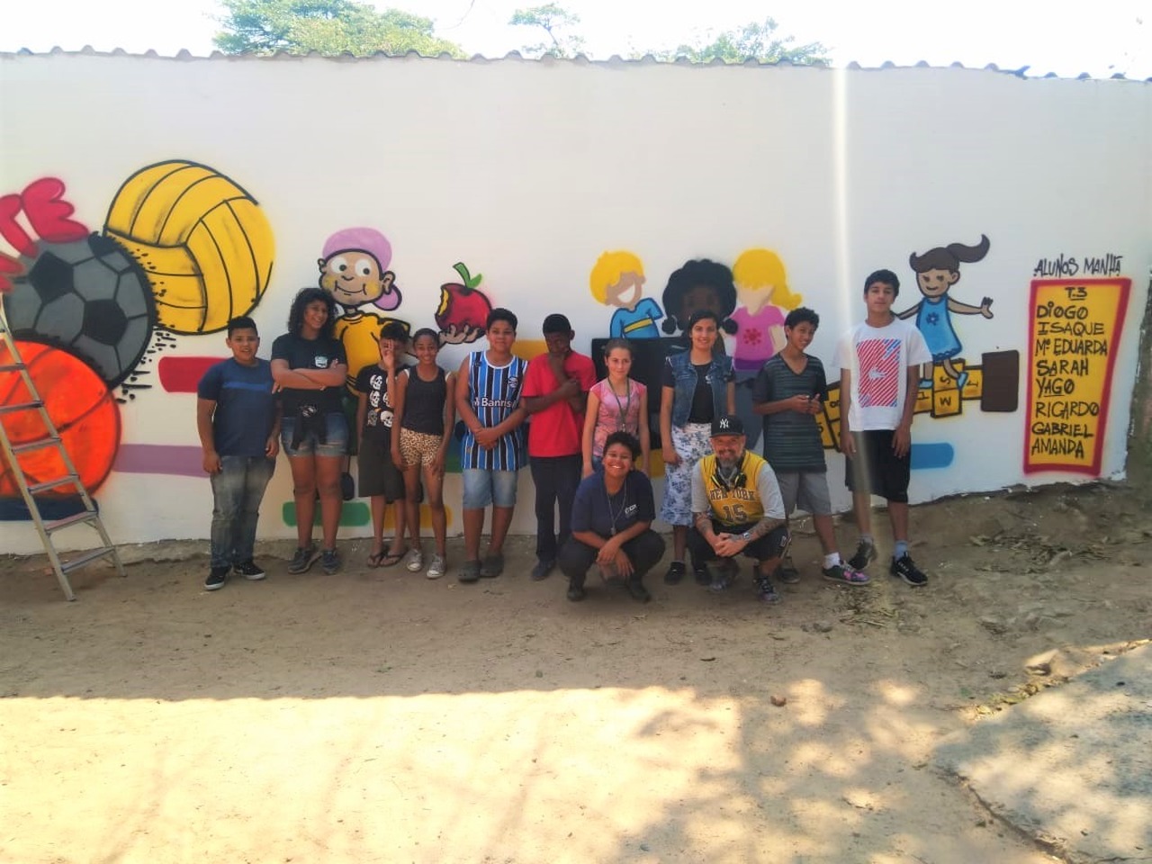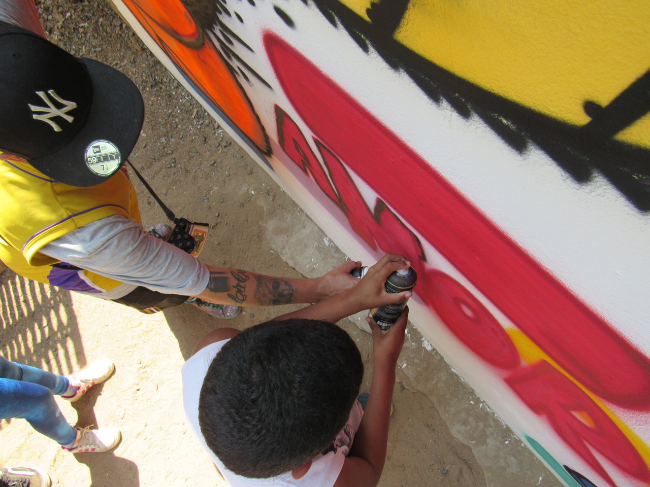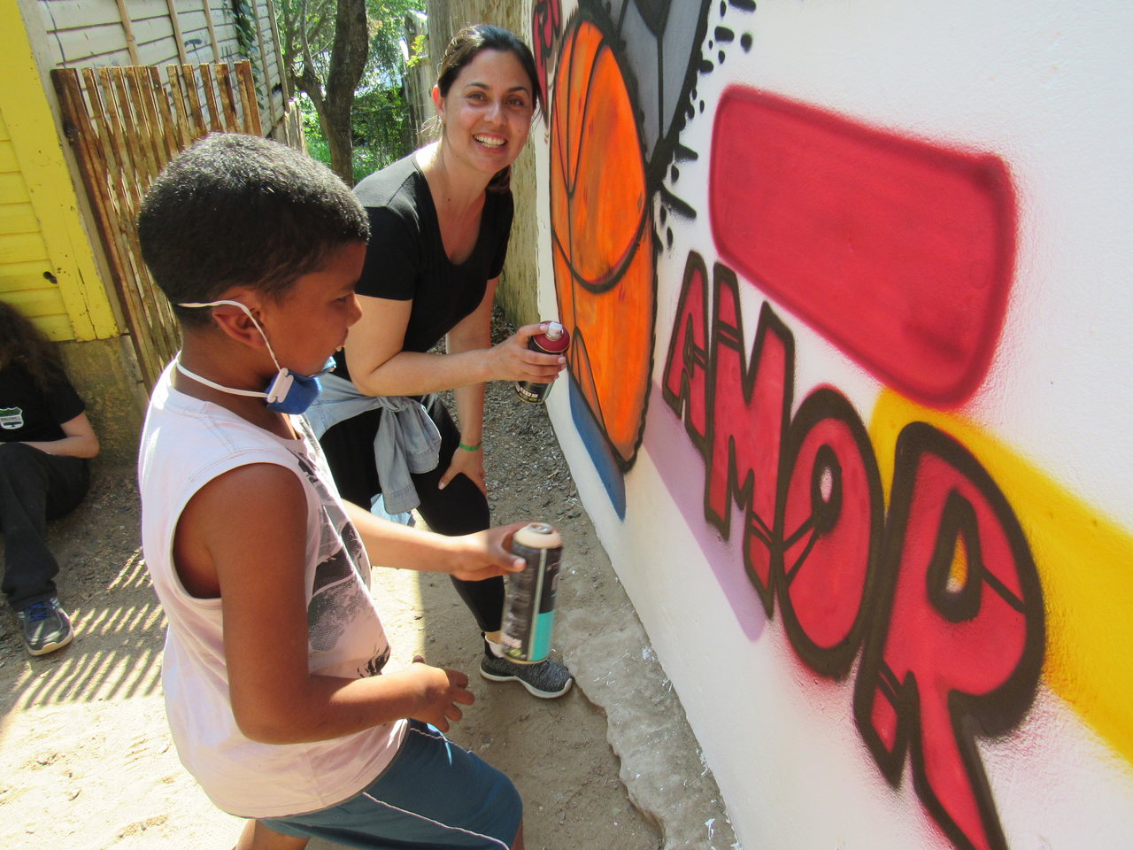 Integração com a Associação Comunitária Belém Velho realizada no dia 01/10, oficina essa ministrada pelo grafiteiro Fábio Bison, em parceria com a ASCOBEV, os adolescentes da modalidade de customização do Instituto São Benedito deram uma oficina para as crianças da associação, realizando desenhos em forma de grafite nos muros da mesma.