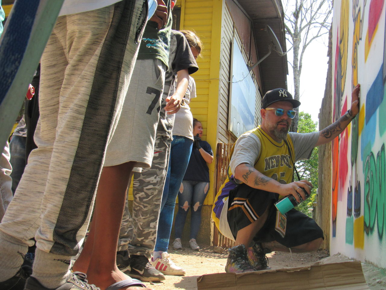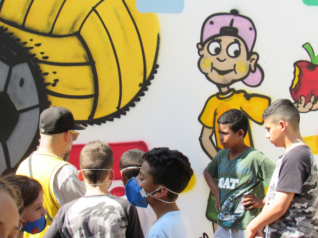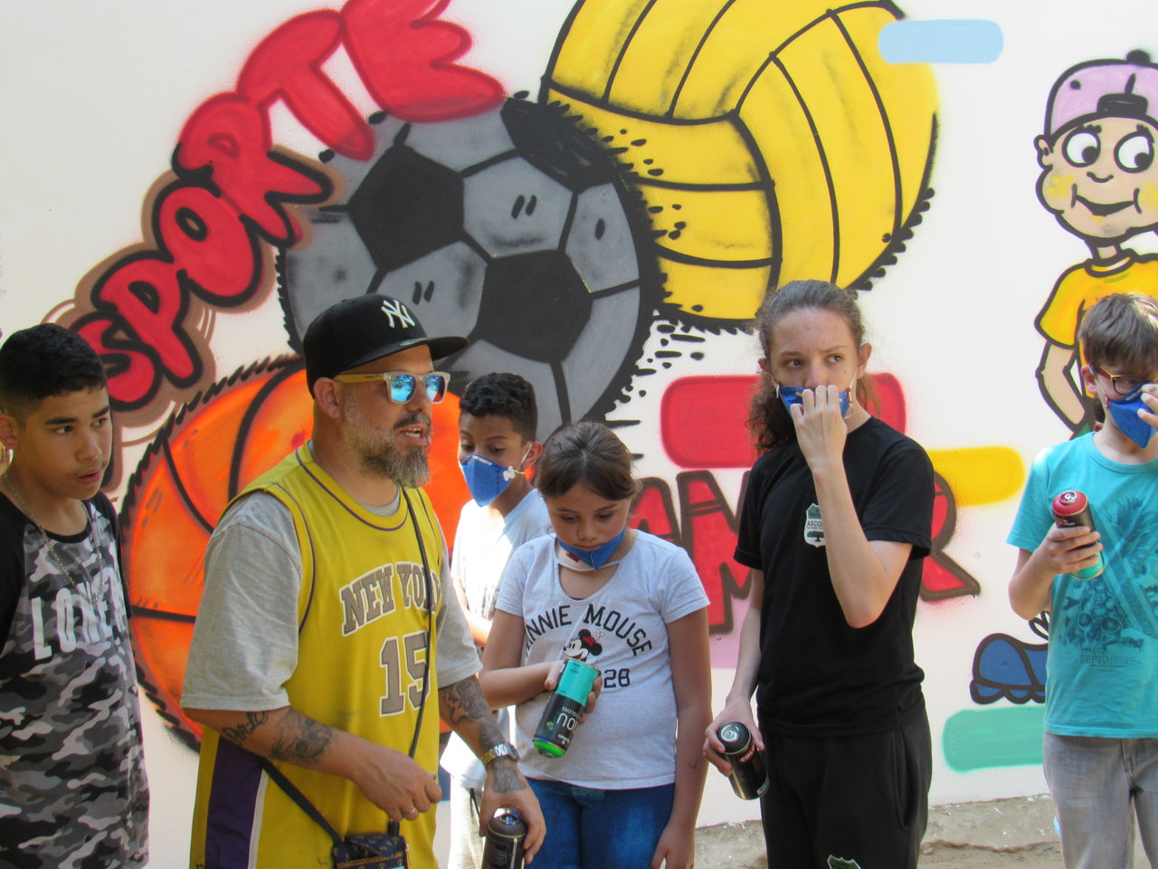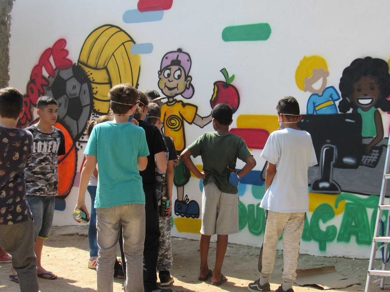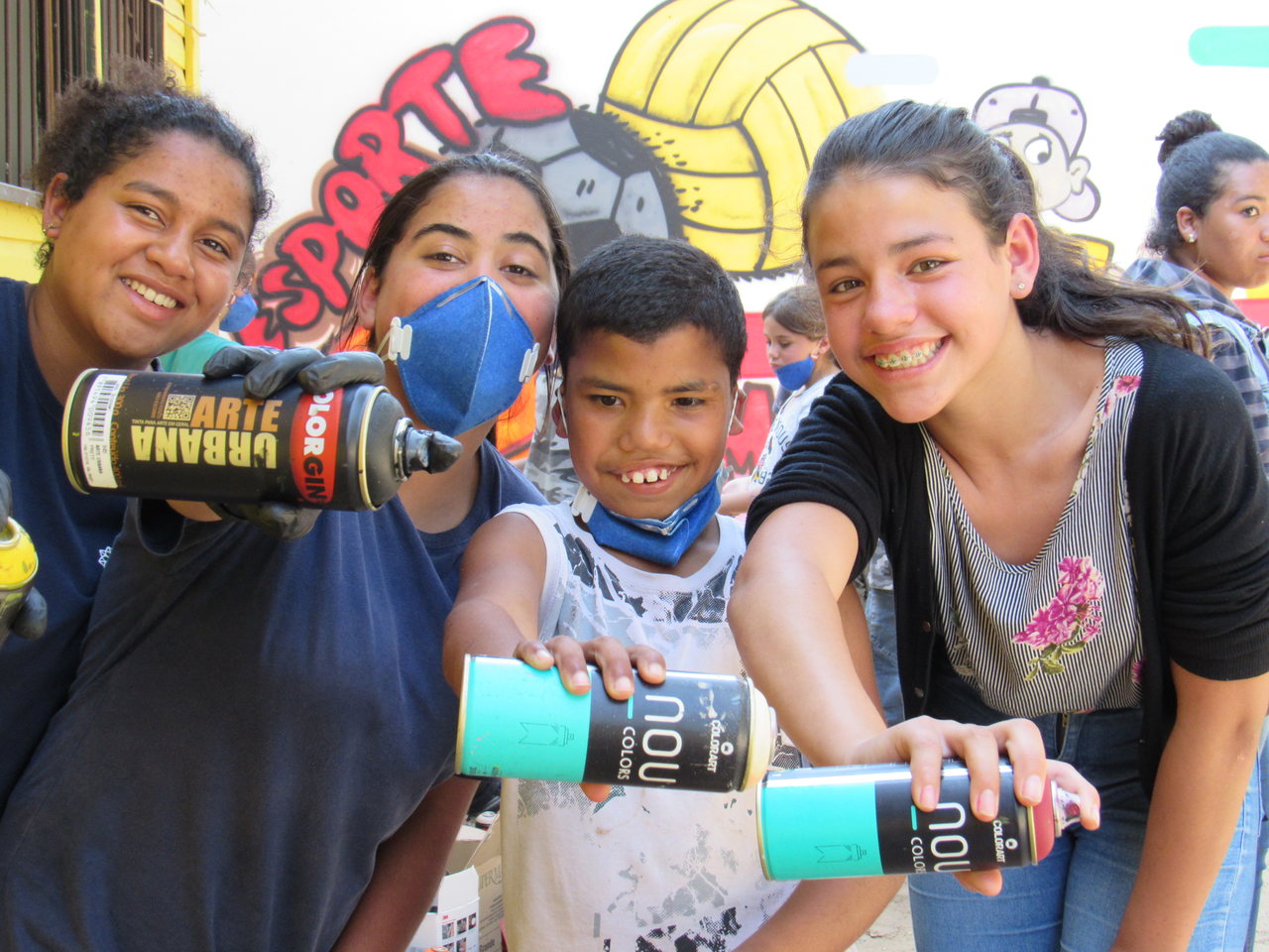 Integração com a Associação Comunitária Belém Velho realizada no dia 01/10, oficina essa ministrada pelo grafiteiro Fábio Bison, em parceria com a ASCOBEV, os adolescentes da modalidade de customização do Instituto São Benedito deram uma oficina para as crianças da associação, realizando desenhos em forma de grafite nos muros da mesma.