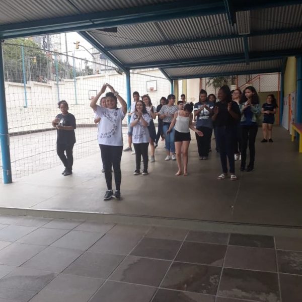 Integrando as juventudes dos grupos: Vicência e Sementes do Amanhã, que realizaram dinâmicas e momentos de jogos e dança, com muita alegria, entusiasmo, partilha, apesar do calor, aproveitaram este momento para trocas e para conhecerem uns aos outros.