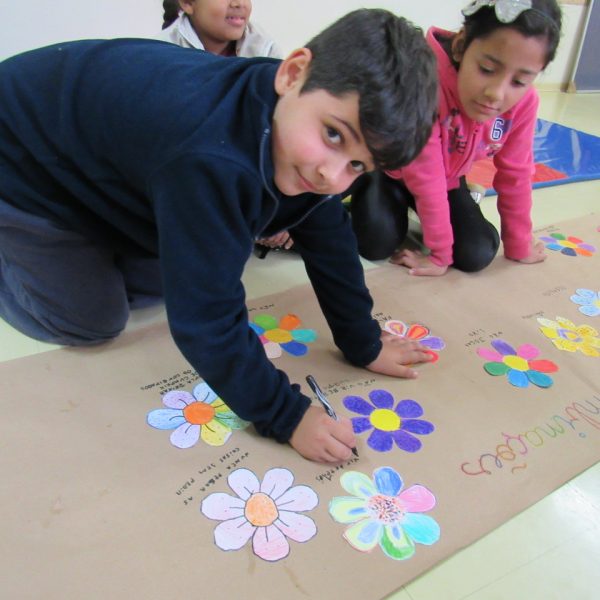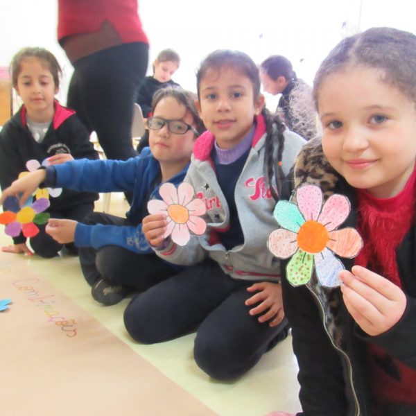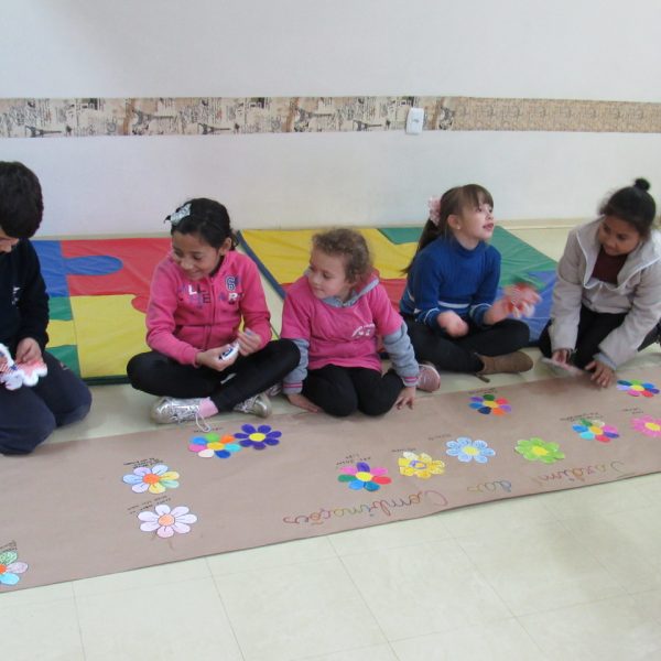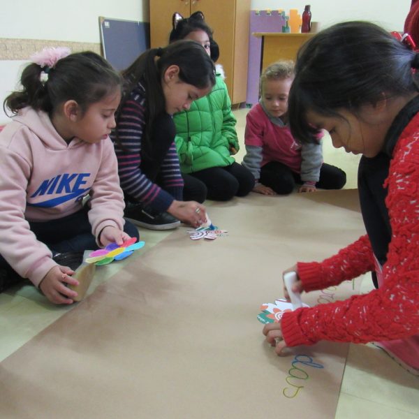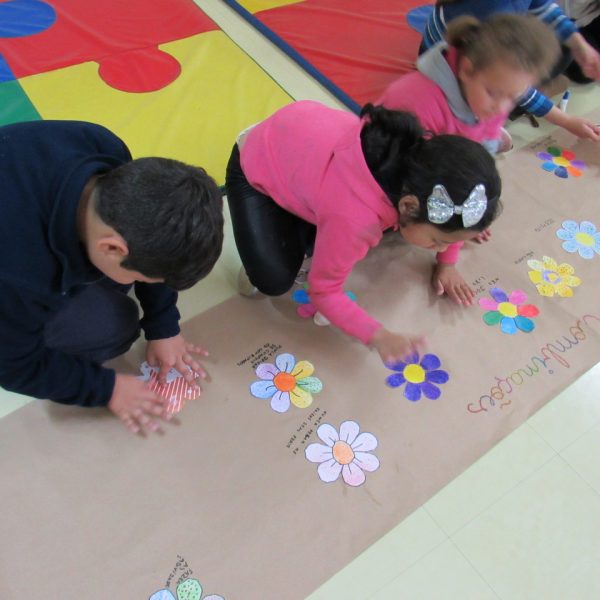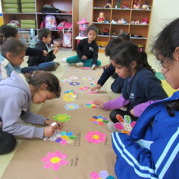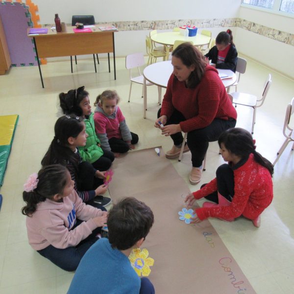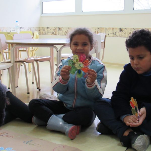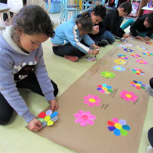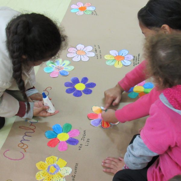 Na Turma A as crianças criaram com a educadora Daniela o jardim das combinações. Cada um pintou uma flor para poder colar no cartaz, conforme foram colando as flores, embaixo de cada uma foi escrito uma das combinações.