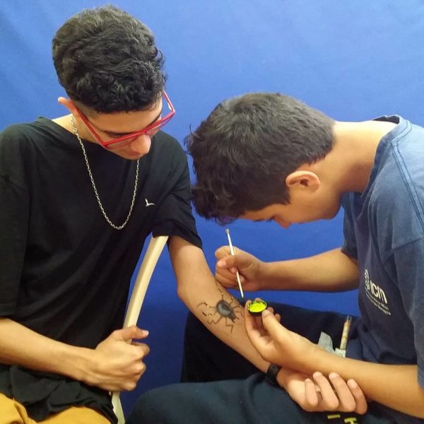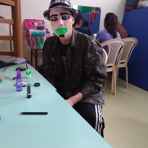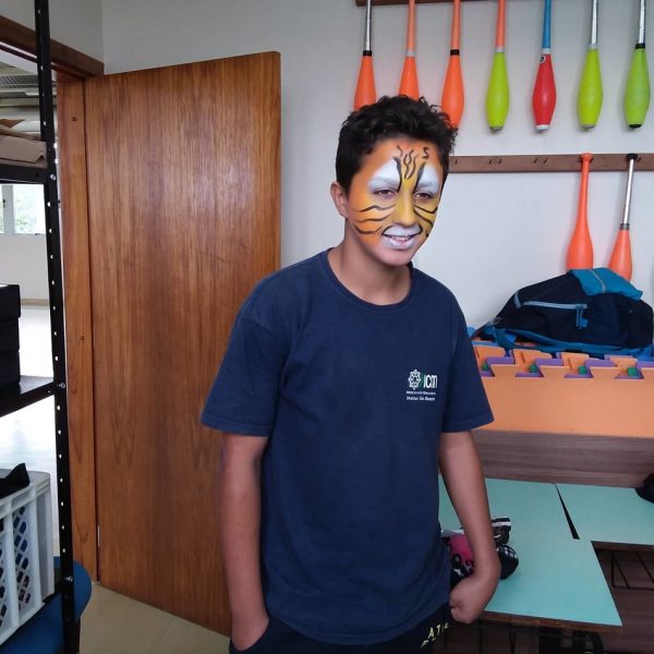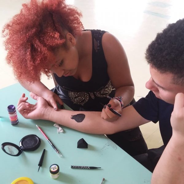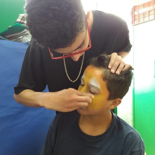 Os jovens da modalidade Oficinas Culturais tiveram o dia de Oficina de maquiagem nos turnos manhã e tarde. Faz parte do saber circense maquiar e ser maquiado tanto através e criação livre quanto com técnicas específicas, como a pintura da aranha e do tigre.
