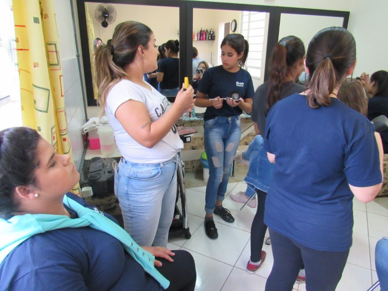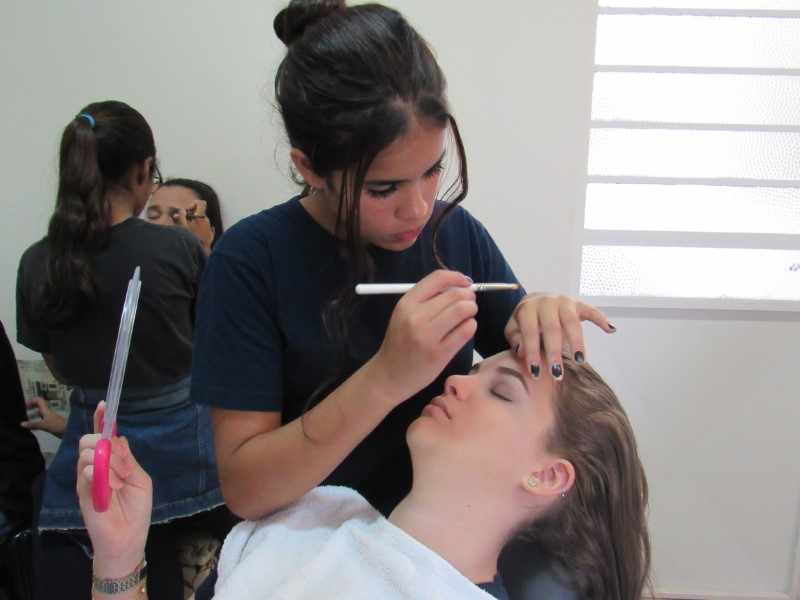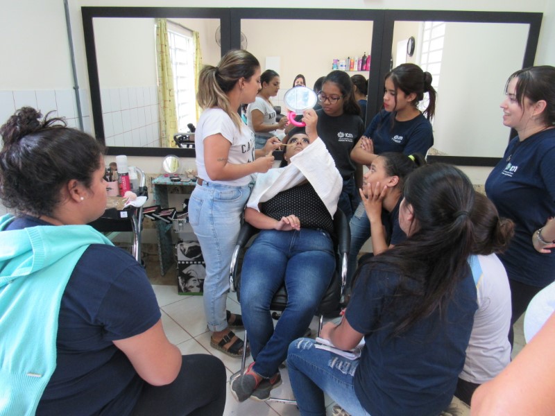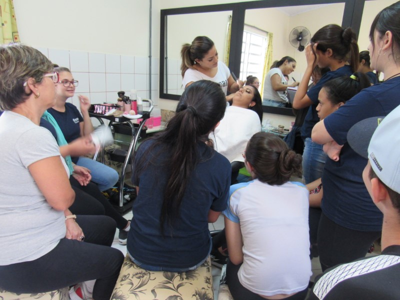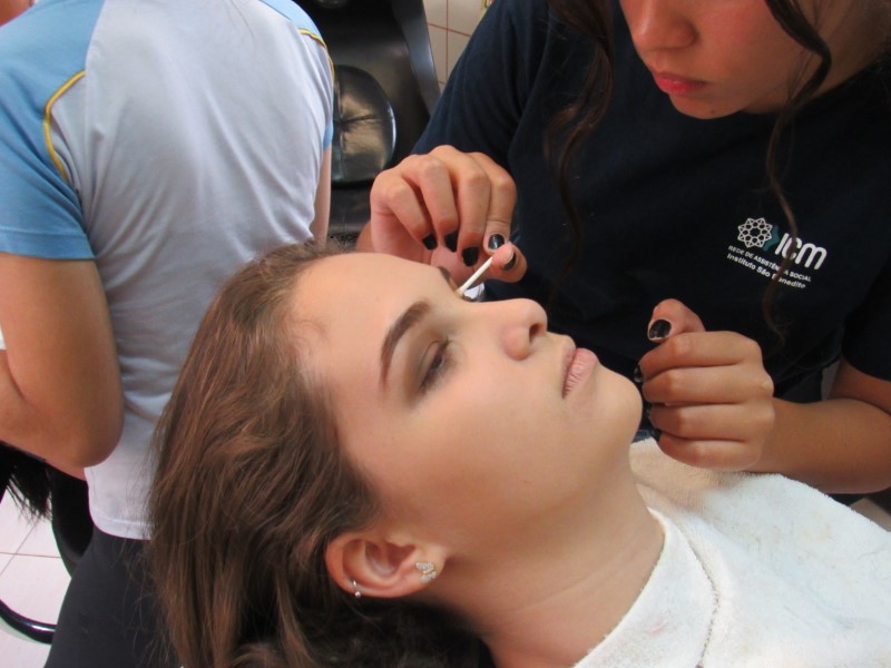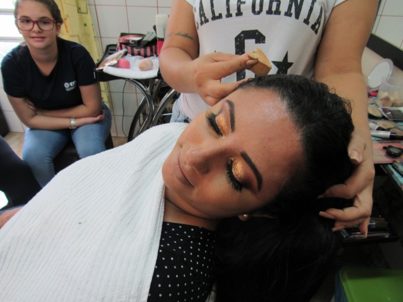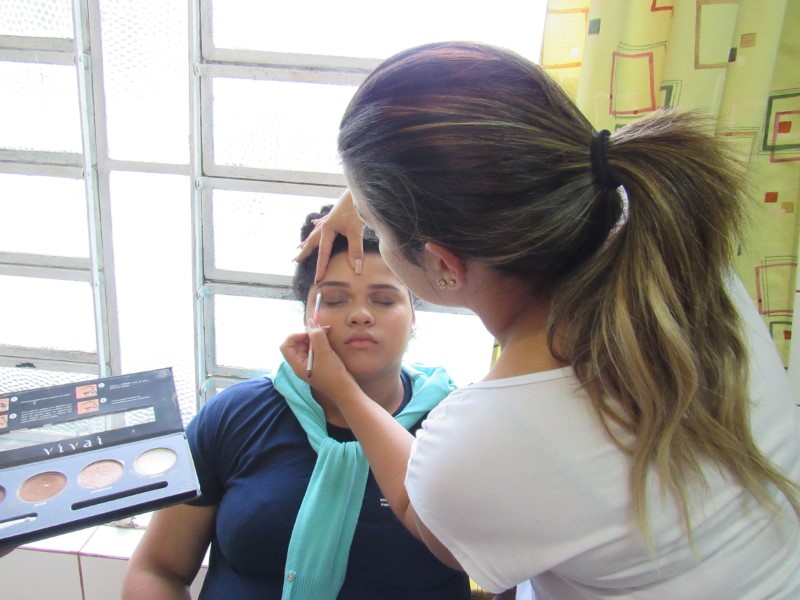 Ontem na modalidade de embelezamento foi dia de aprender com a maquiadora Jeniffer Leal a fazer maquiagem para festa. Foi ensinado passo a passo, sendo mostrada em modelos todo o processo para que as adolescentes pudessem prestar bastante atenção e não perder nenhum detalhe. As jovens aproveitaram para tirar suas dúvidas, e logo depois colocaram em prática todo o aprendizado, treinando nas demais colegas todo o processo ensinado. Saíram lindas maquiagens, cada dia melhorando com a prática e dedicação na oficina !
