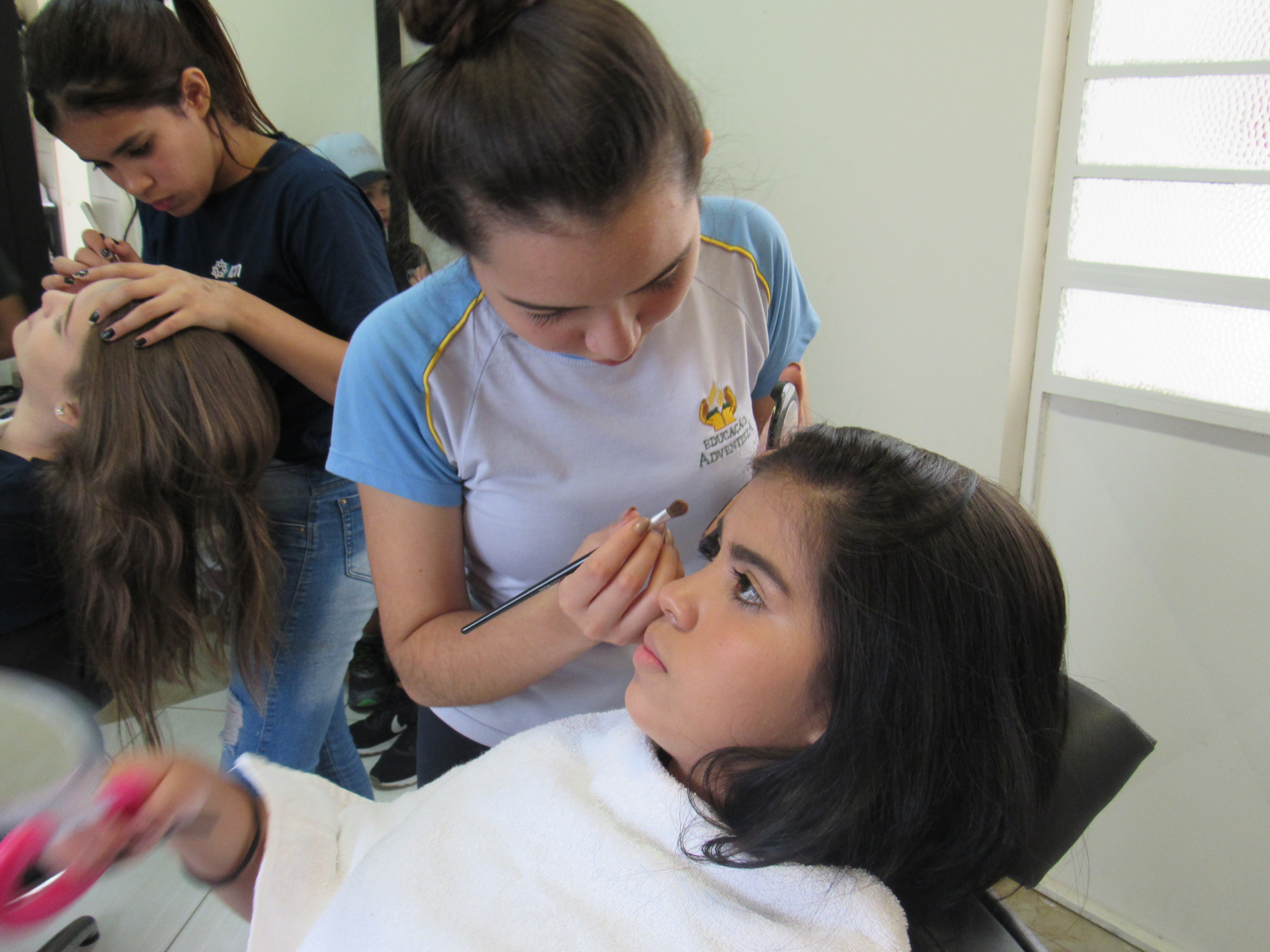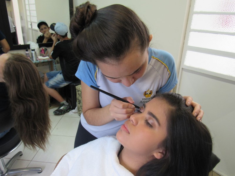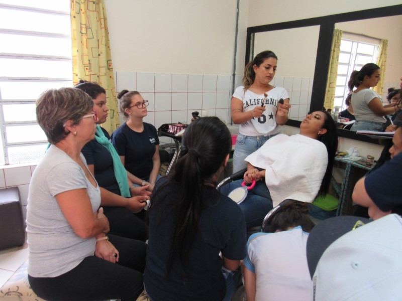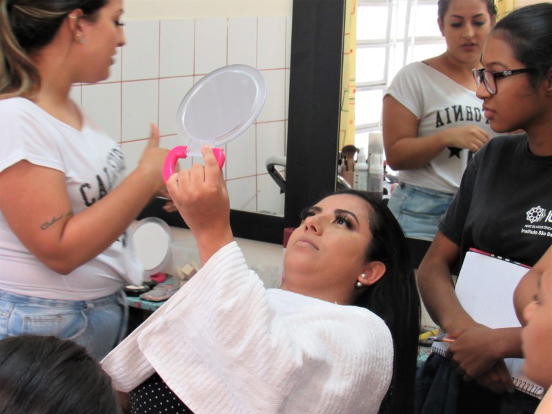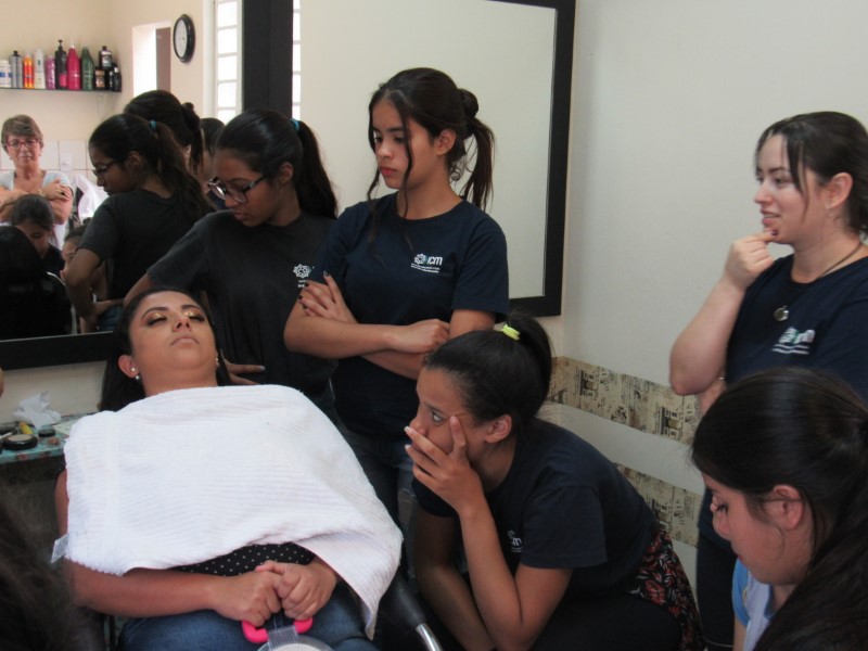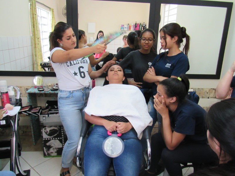 Ontem na modalidade de embelezamento foi dia de aprender com a maquiadora Jeniffer Leal a fazer maquiagem para festa. Foi ensinado passo a passo, sendo mostrada em modelos todo o processo para que as adolescentes pudessem prestar bastante atenção e não perder nenhum detalhe. As jovens aproveitaram para tirar suas dúvidas, e logo depois colocaram em prática todo o aprendizado, treinando nas demais colegas todo o processo ensinado. Saíram lindas maquiagens, cada dia melhorando com a prática e dedicação na oficina !