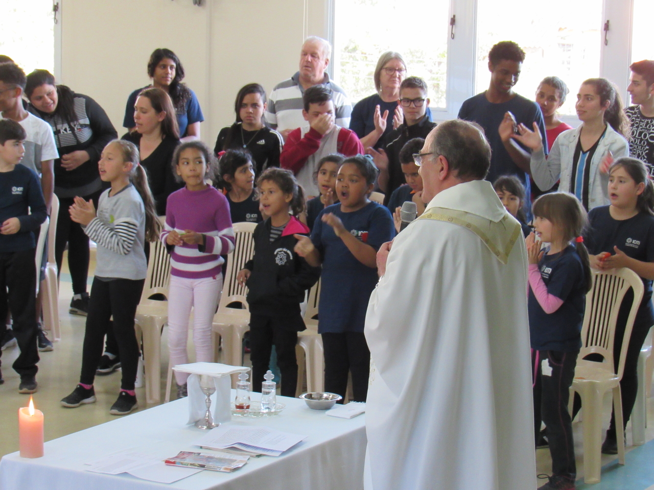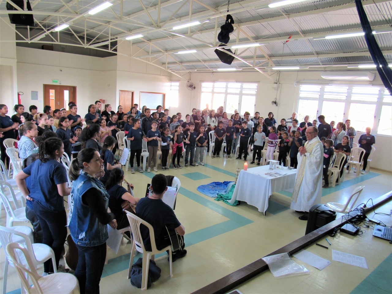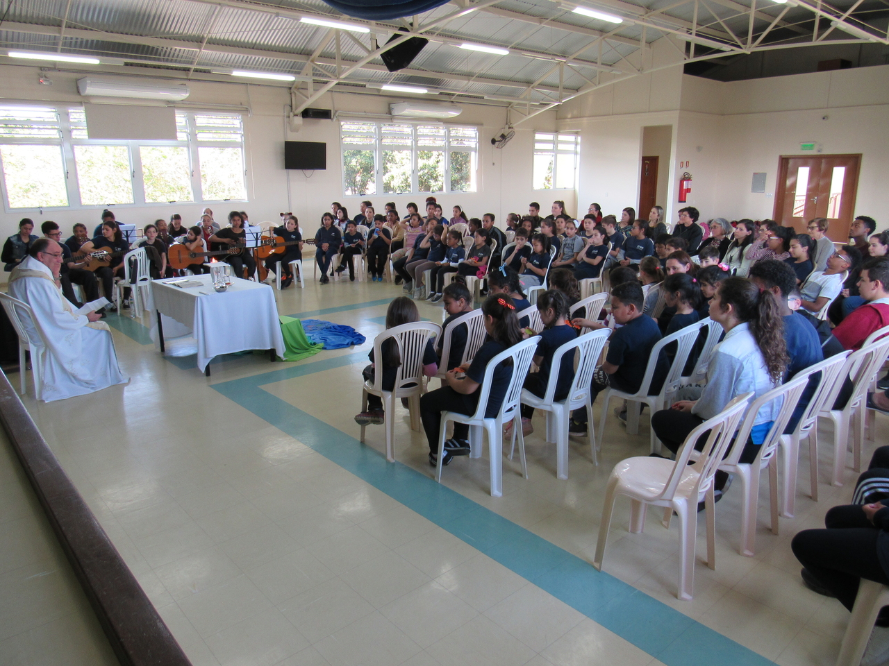 Nossa missa foi ministrada pelo Frei Xavier, que iniciou a missa falando sobre a passagem bíblica Lc 5,1-11, que conta sobre a pesca milagrosa onde Lucas conta como Pedro foi chamado por Jesus e como ele entrou na caminhada. Primeiro, escutou as palavras de Jesus ao povo. Em seguida, presenciou a pesca milagrosa. Foi só depois dessa dupla experiência surpreendente que veio o chamado de Jesus. Pedro atendeu, largou tudo e se tornou “pescador de gente”.