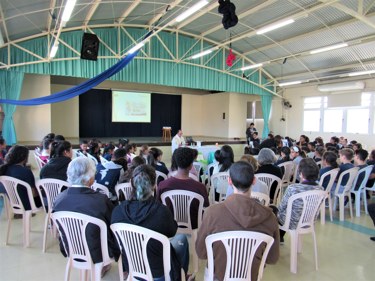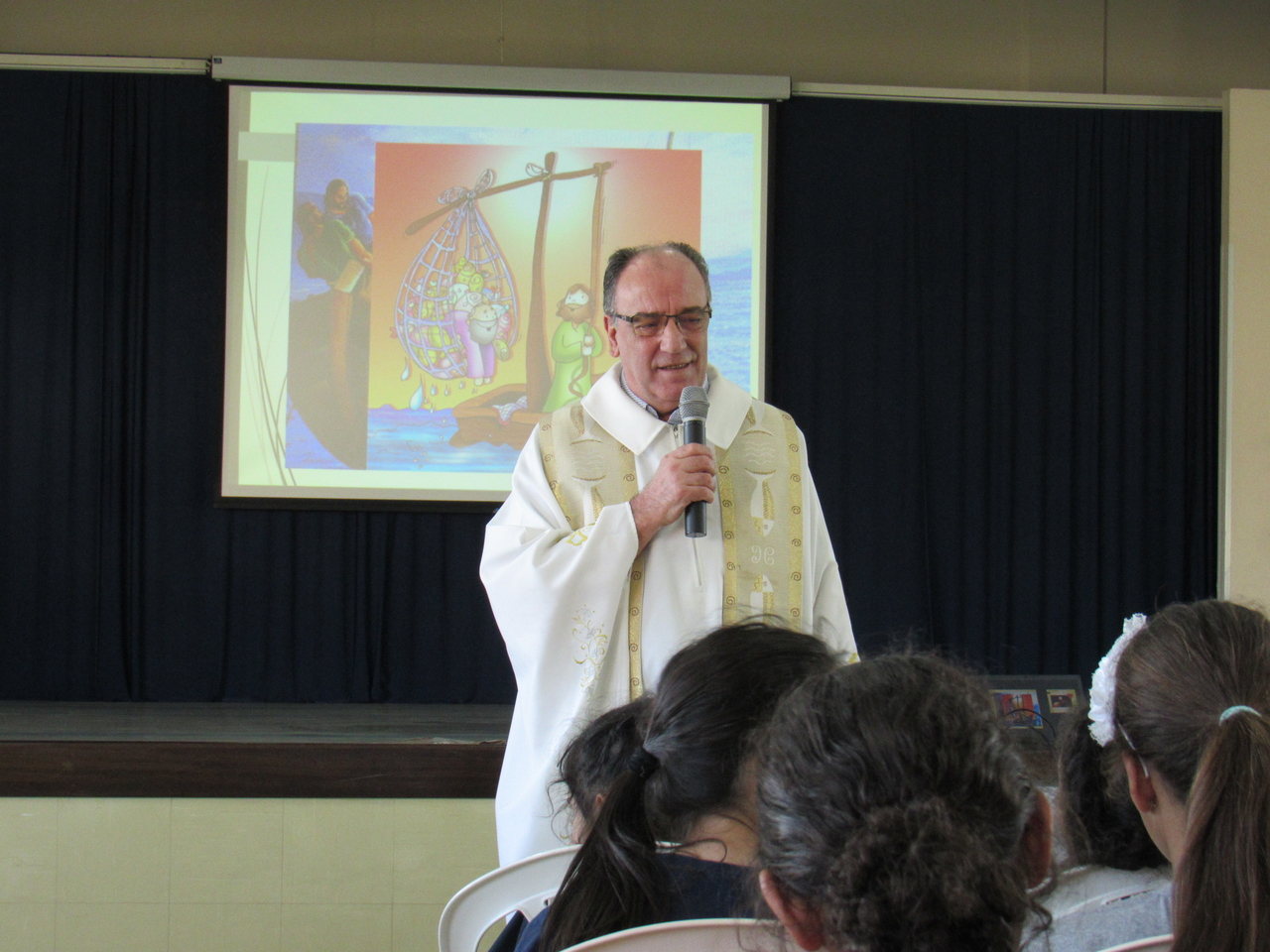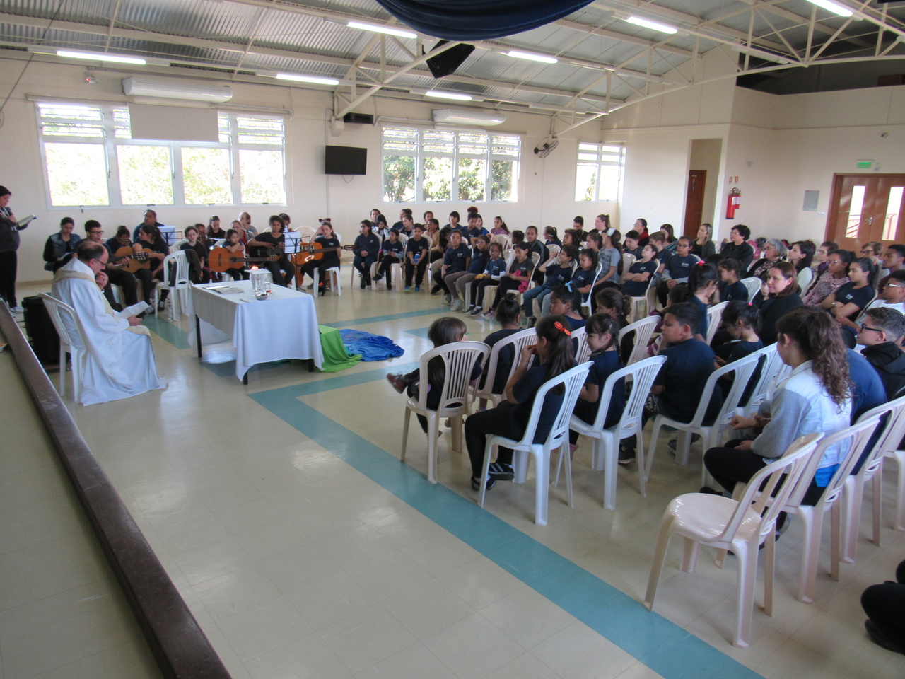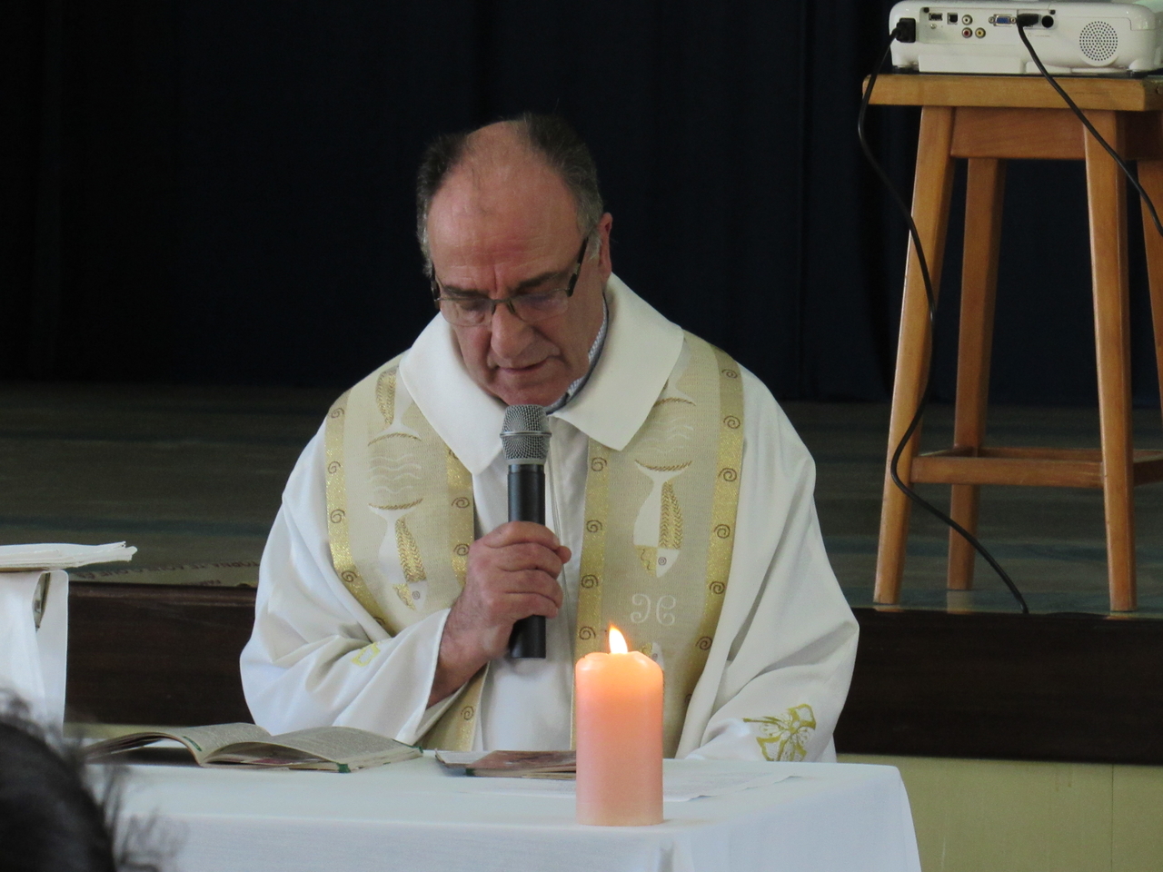 Nossa missa foi ministrada pelo Frei Xavier, que iniciou a missa falando sobre a passagem bíblica Lc 5,1-11, que conta sobre a pesca milagrosa onde Lucas conta como Pedro foi chamado por Jesus e como ele entrou na caminhada. Primeiro, escutou as palavras de Jesus ao povo. Em seguida, presenciou a pesca milagrosa. Foi só depois dessa dupla experiência surpreendente que veio o chamado de Jesus. Pedro atendeu, largou tudo e se tornou “pescador de gente”.