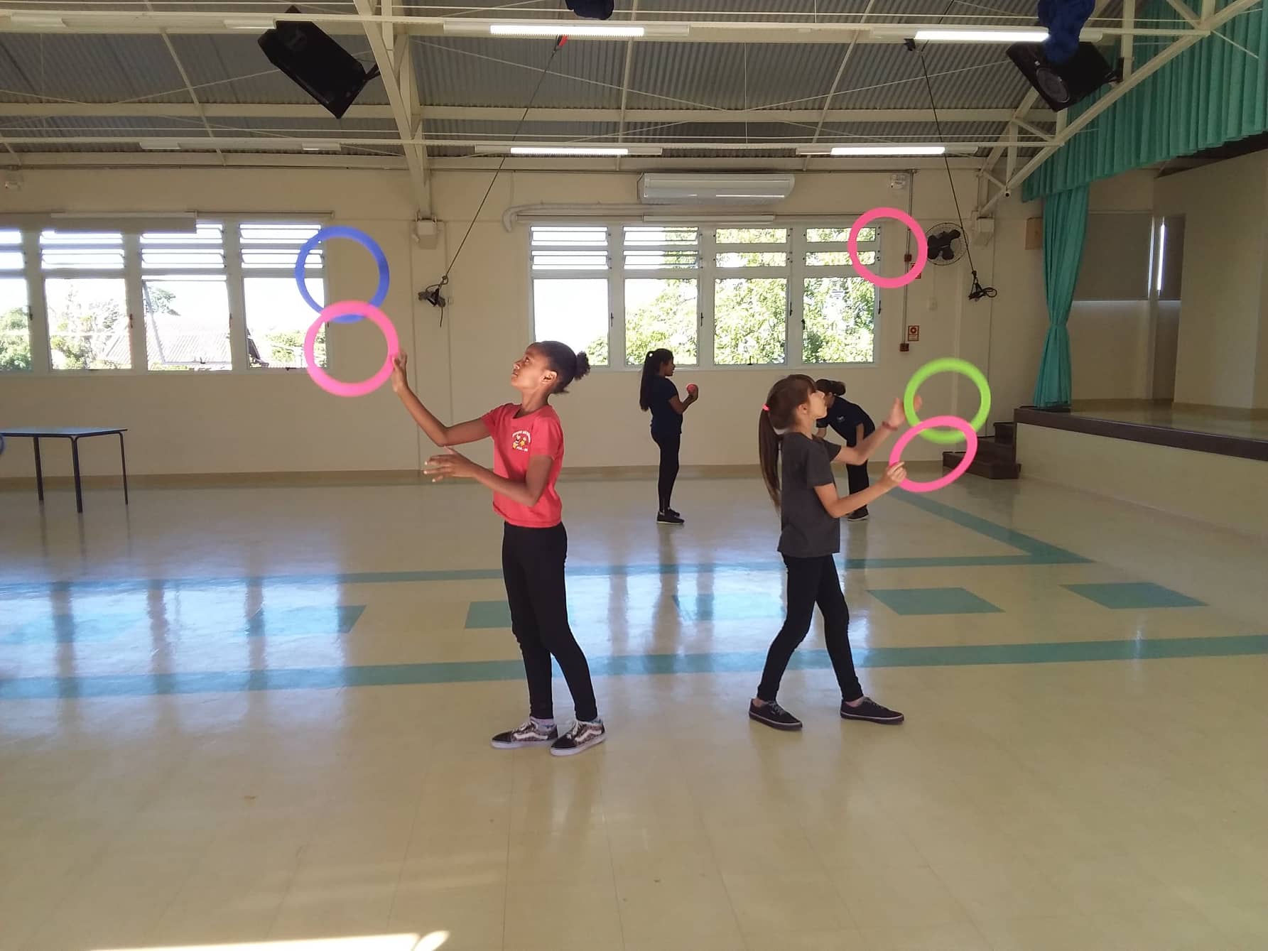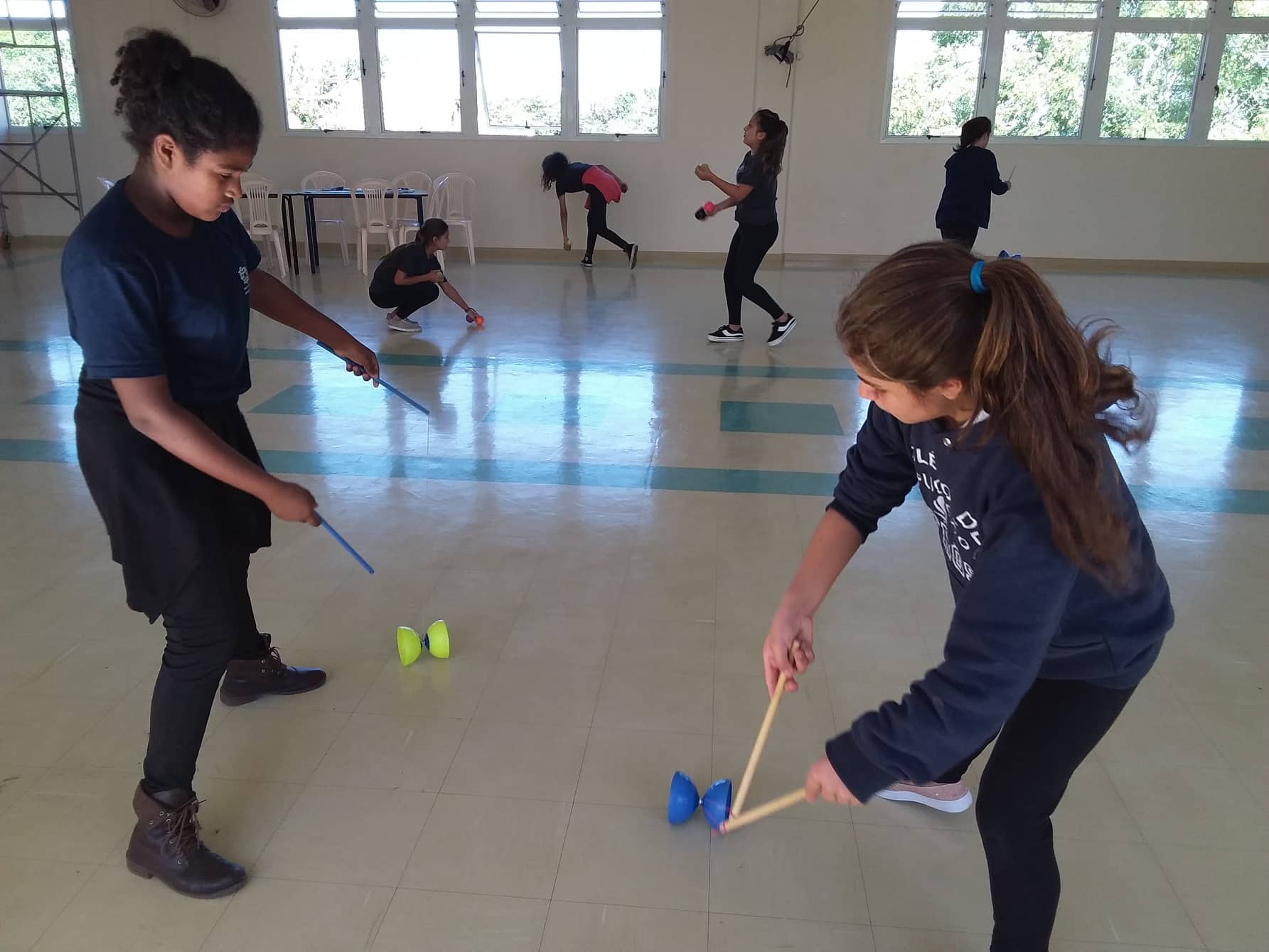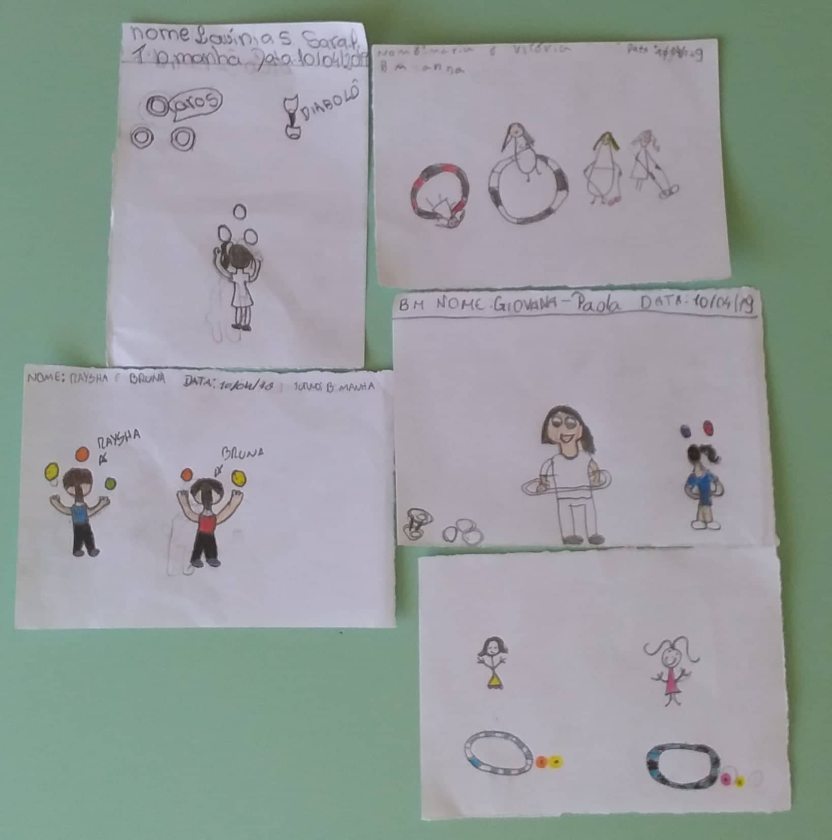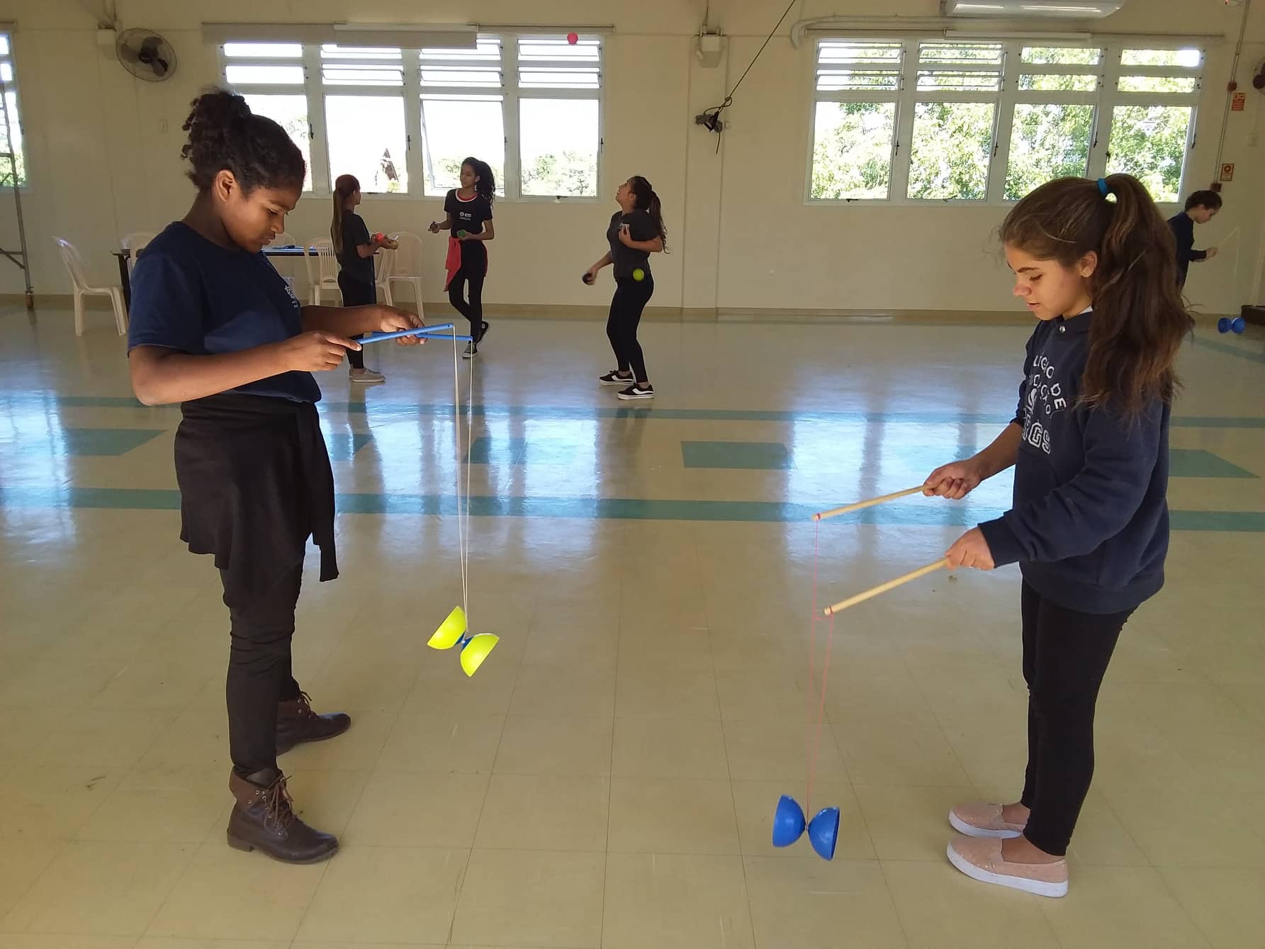 Toda semana temos oficina de circo no Instituto São Benedito, com os jovens da Oficinas Culturais e também com as crianças do Serviço de Convivência e Fortalecimento de Vínculos (SCFV). Segunda-feira tem a oficina de circo com os adolescentes, quarta-feira tem mais circo com atividade de expressão corporal, manipulação de materiais de malabarismo e relatório através de desenhos feito pelas turmas B e C manhã. É sempre muito divertido e realizado com muita atenção com o auxílio da educadora Joana.