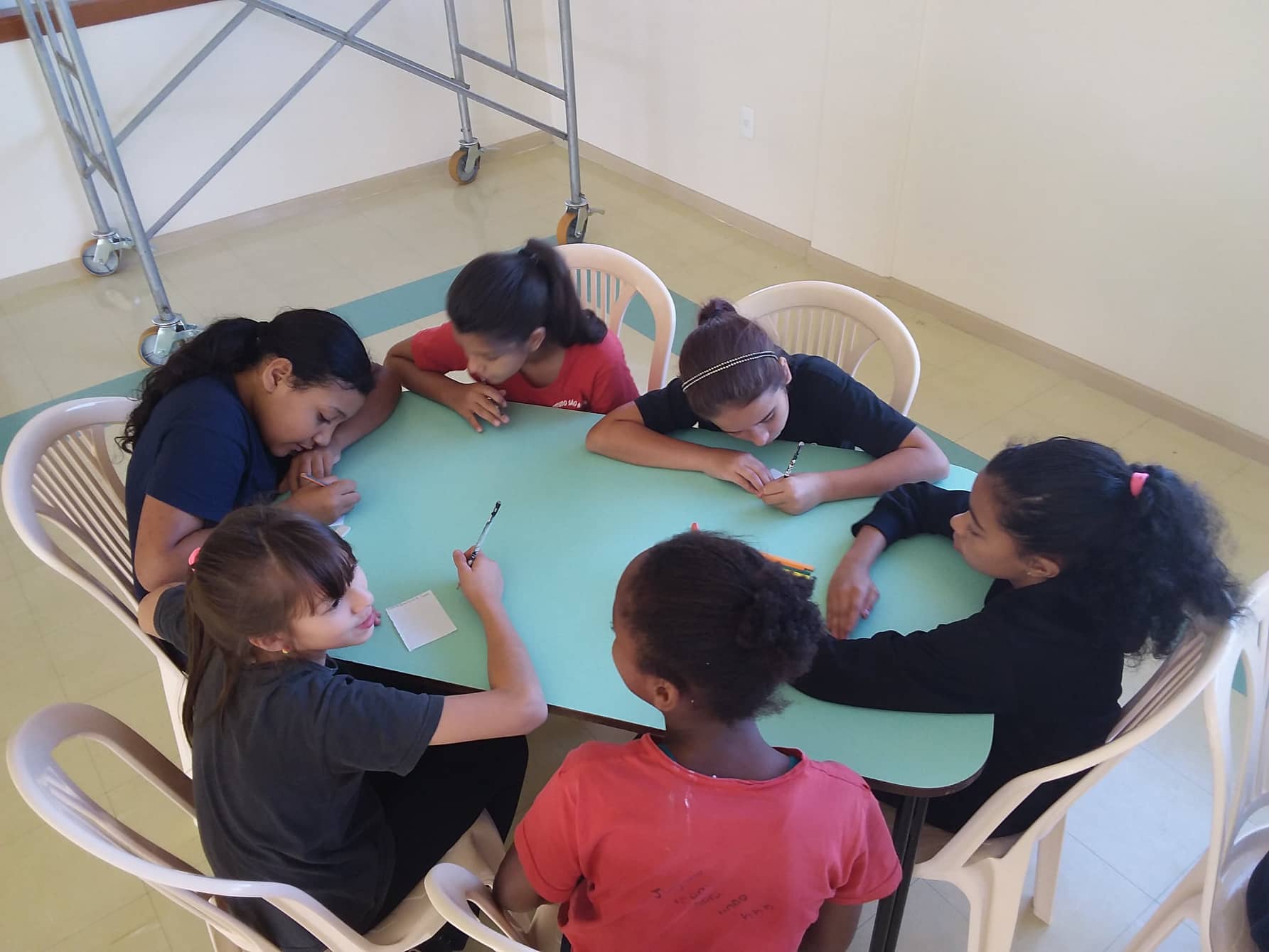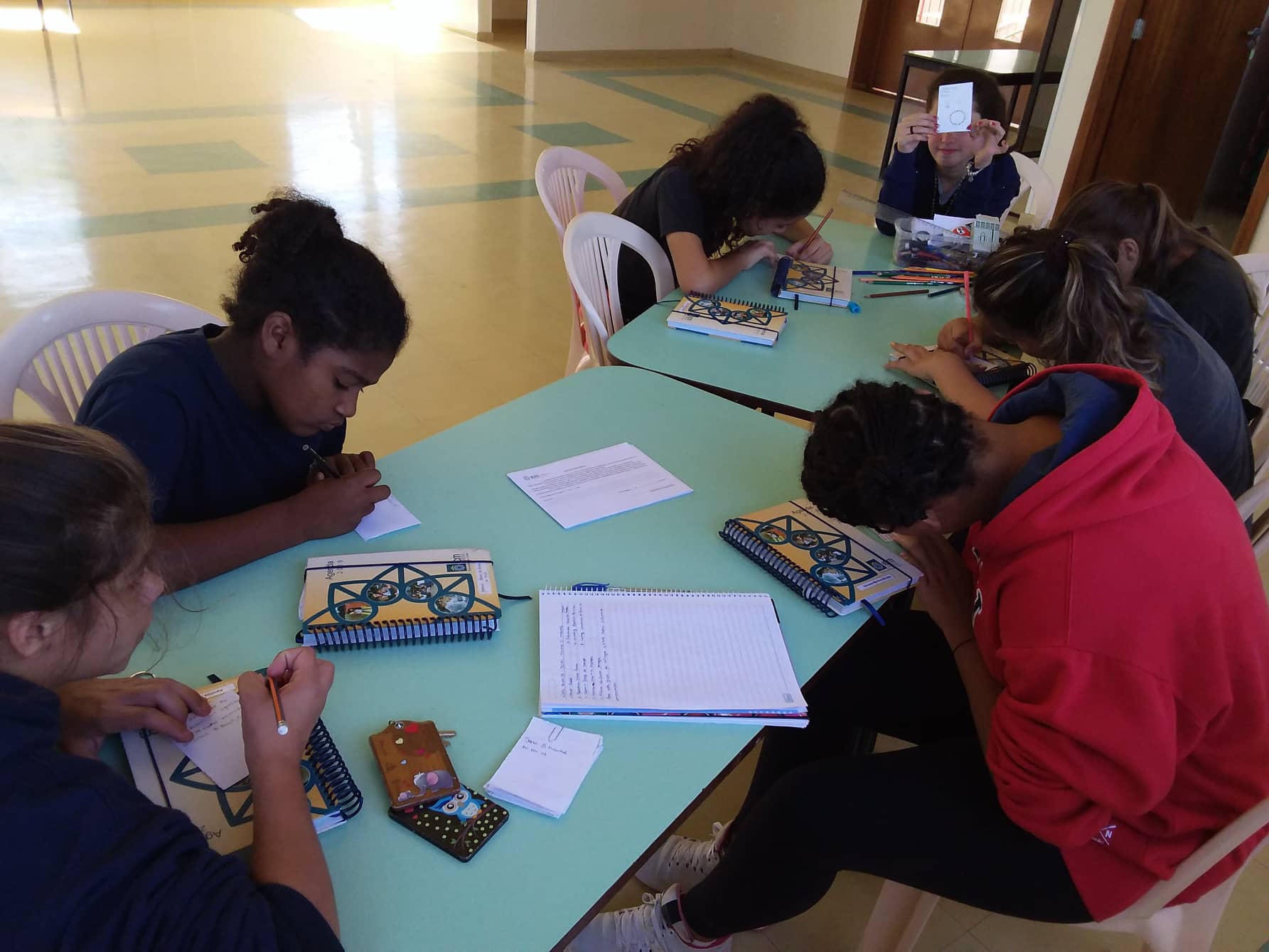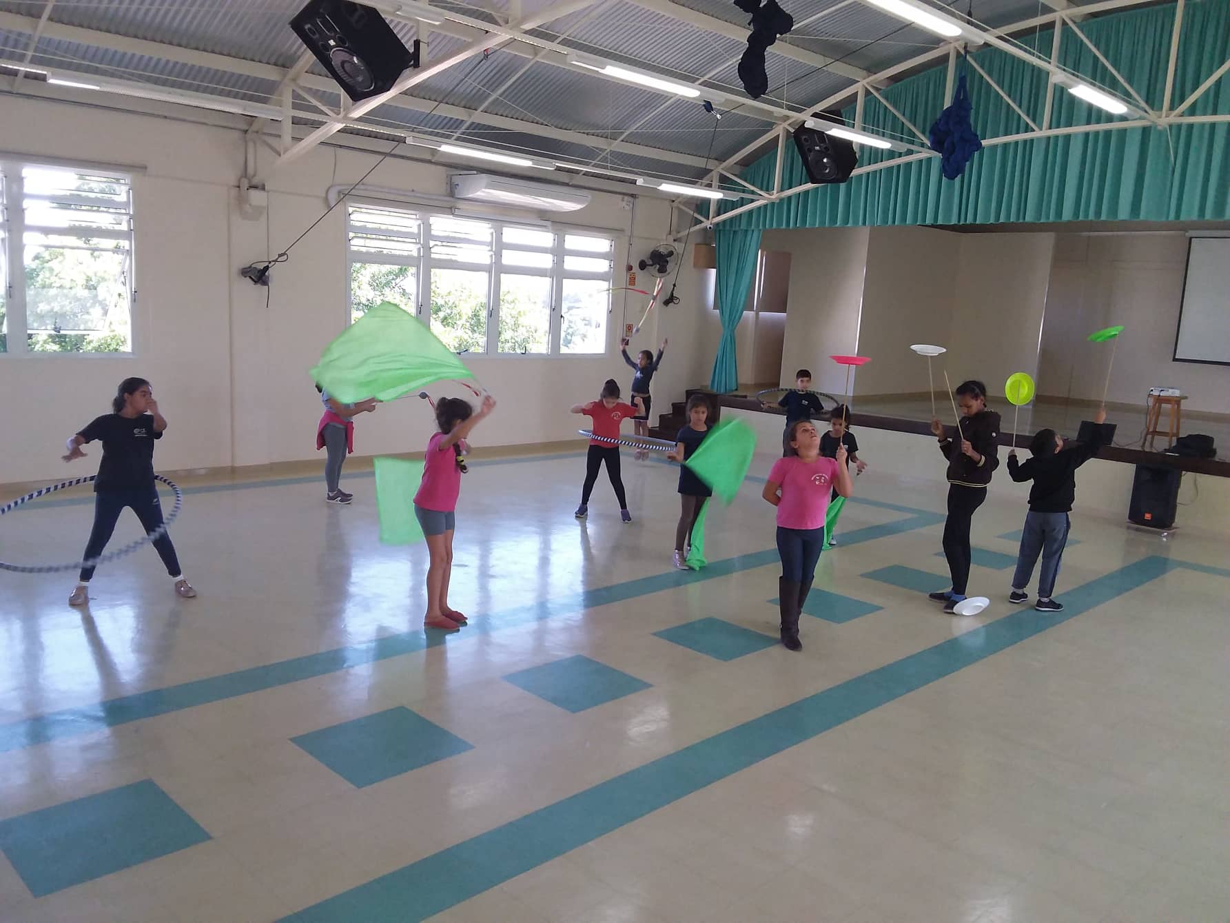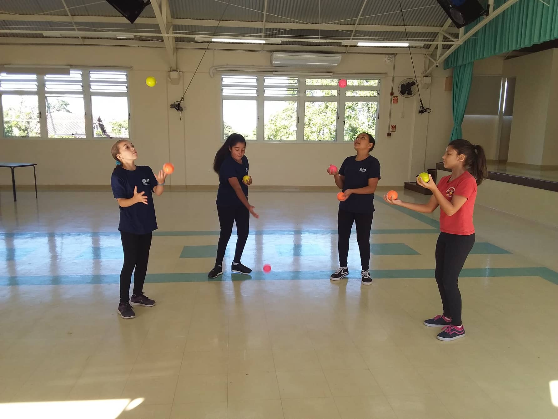 Toda semana temos oficina de circo no Instituto São Benedito, com os jovens da Oficinas Culturais e também com as crianças do Serviço de Convivência e Fortalecimento de Vínculos (SCFV). Segunda-feira tem a oficina de circo com os adolescentes, quarta-feira tem mais circo com atividade de expressão corporal, manipulação de materiais de malabarismo e relatório através de desenhos feito pelas turmas B e C manhã. É sempre muito divertido e realizado com muita atenção com o auxílio da educadora Joana.