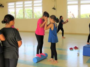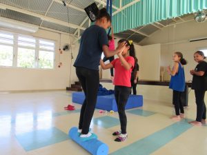 São diversas atividades que incluem a concentração e equilíbrio, as crianças se divertem e se empenham muito realizando a oficina.
