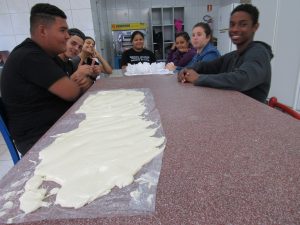 E para lembrarmos os velhos tempos, a turma da gastronomia realizou a receita da rapadura de leite em pó… Aquela que fez parte da história de muitos Ex alunos, que ainda lembra-se com carinho e afeto dos momentos vividos na instituição… Neste dia realizaram ainda a receita de negrinho que não é necessário ir ao fogo. Estas receitas são práticas e ideais para quem se interessa em ter uma renda extra. Alguns adolescentes já colocaram em prática e tiveram bons resultados.