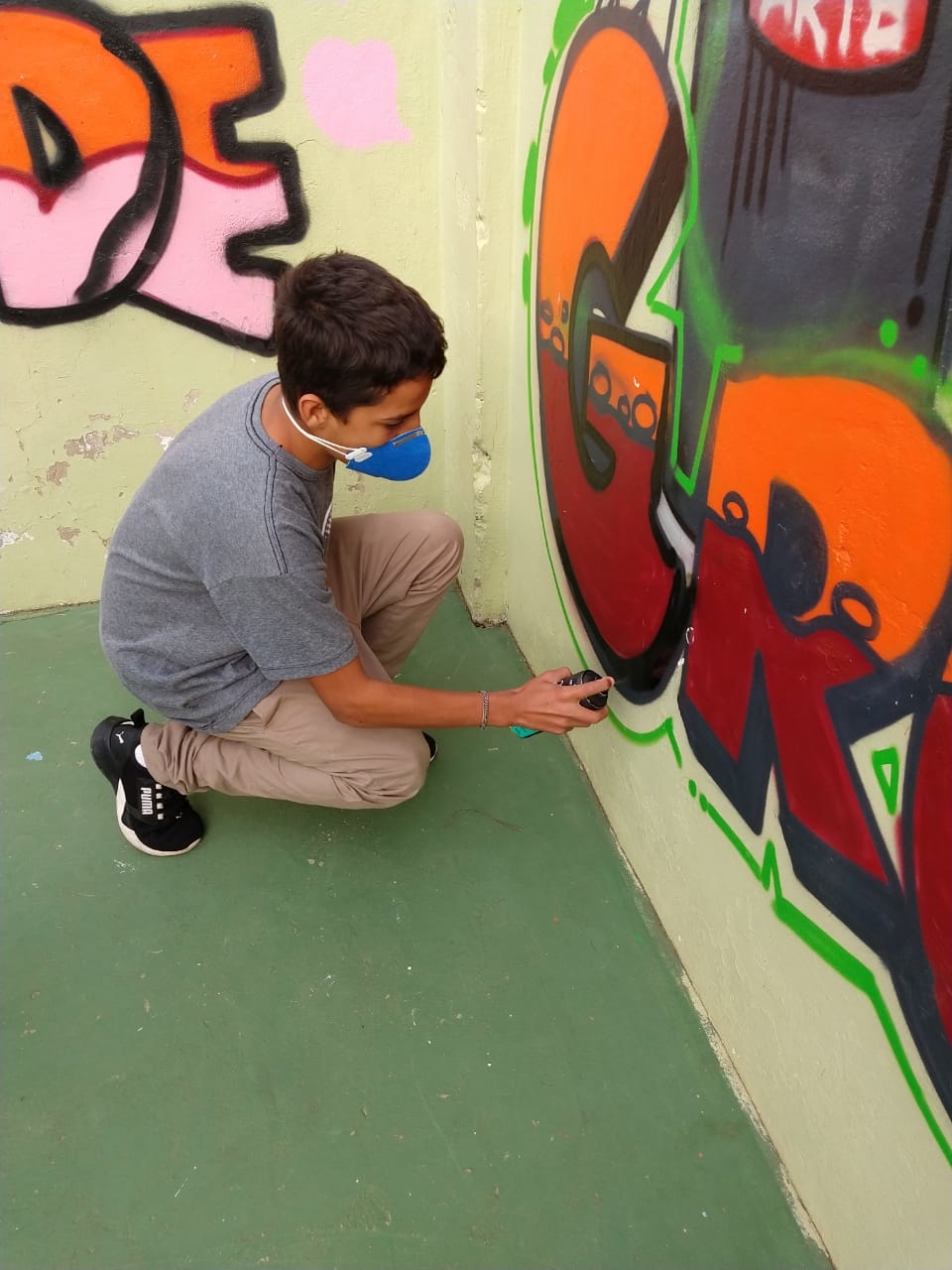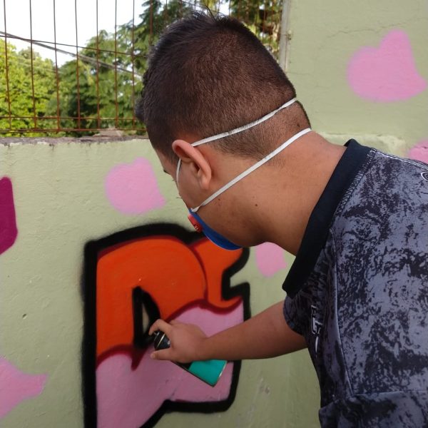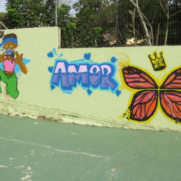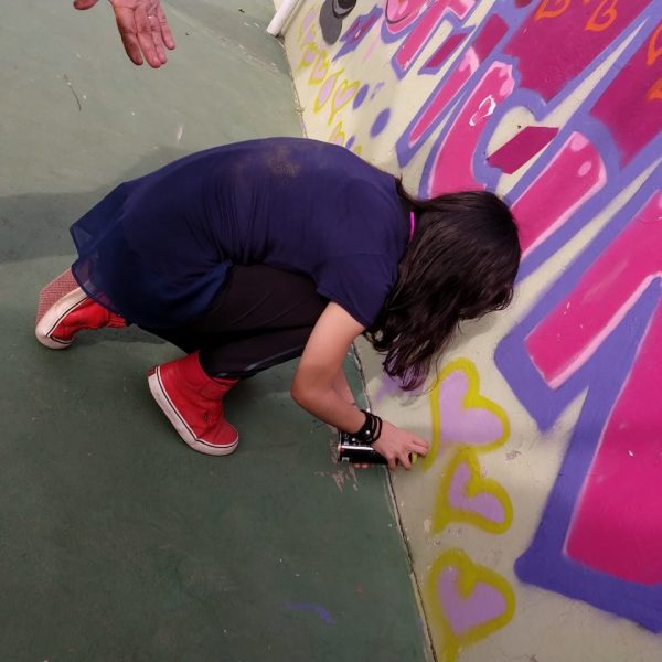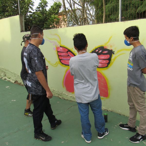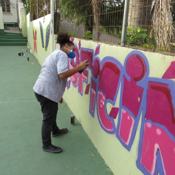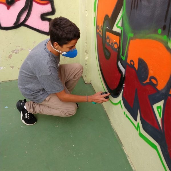 Na modalidade de Customização os jovens tiveram mais uma aula de grafite com o grafiteiro Fabiano Biason Prado, eles terminaram de pintar a quadra de esportes da instituição, fizeram lindos desenhos e utilizando spray e pincel arrasaram na hora da prática!