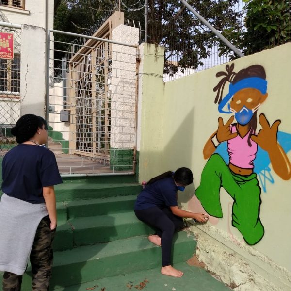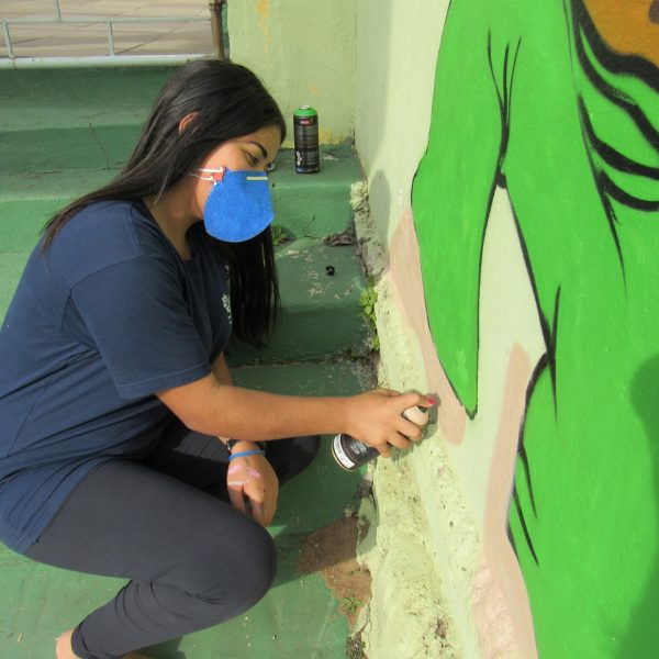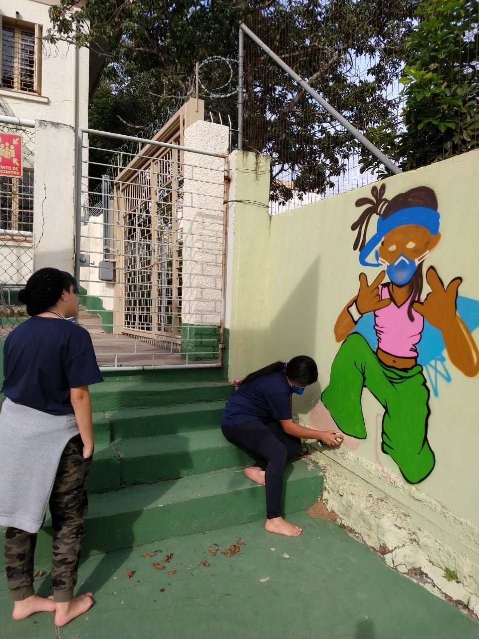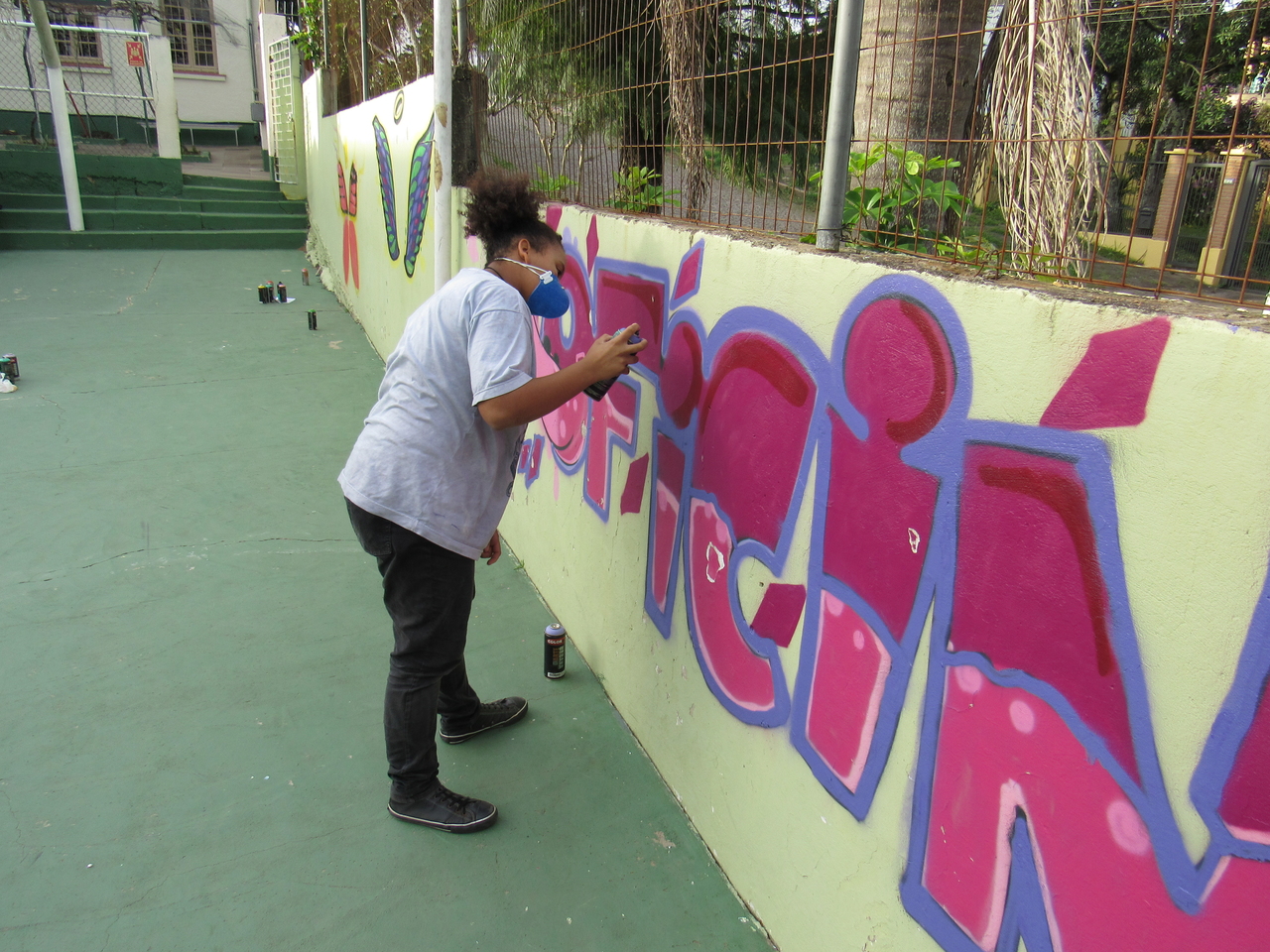 Na modalidade de Customização os jovens tiveram mais uma aula de grafite com o grafiteiro Fabiano Biason Prado, eles terminaram de pintar a quadra de esportes da instituição, fizeram lindos desenhos e utilizando spray e pincel arrasaram na hora da prática!