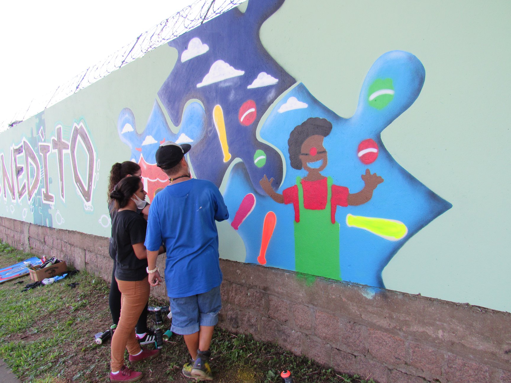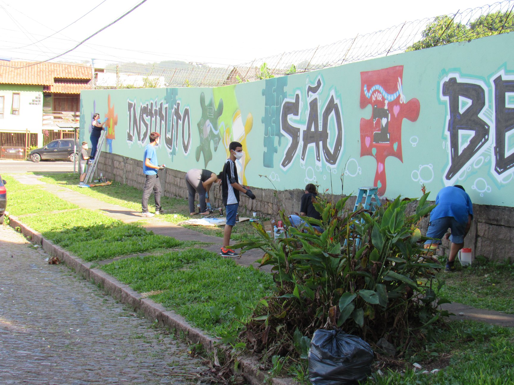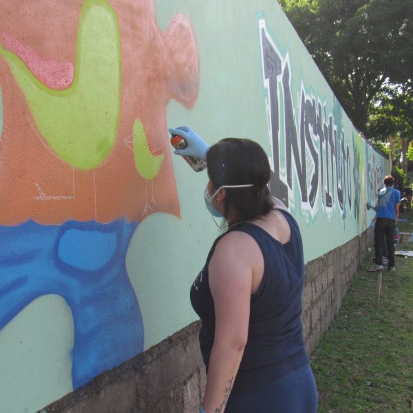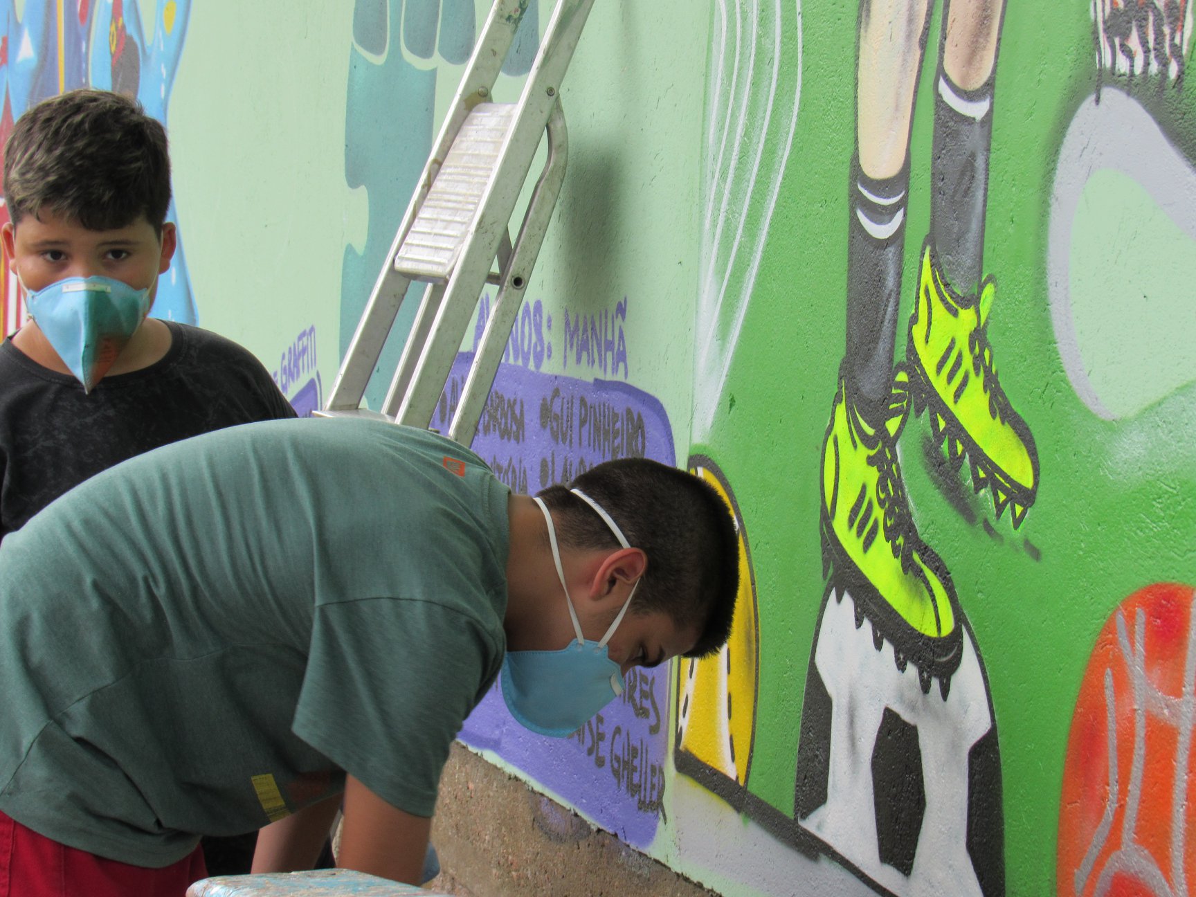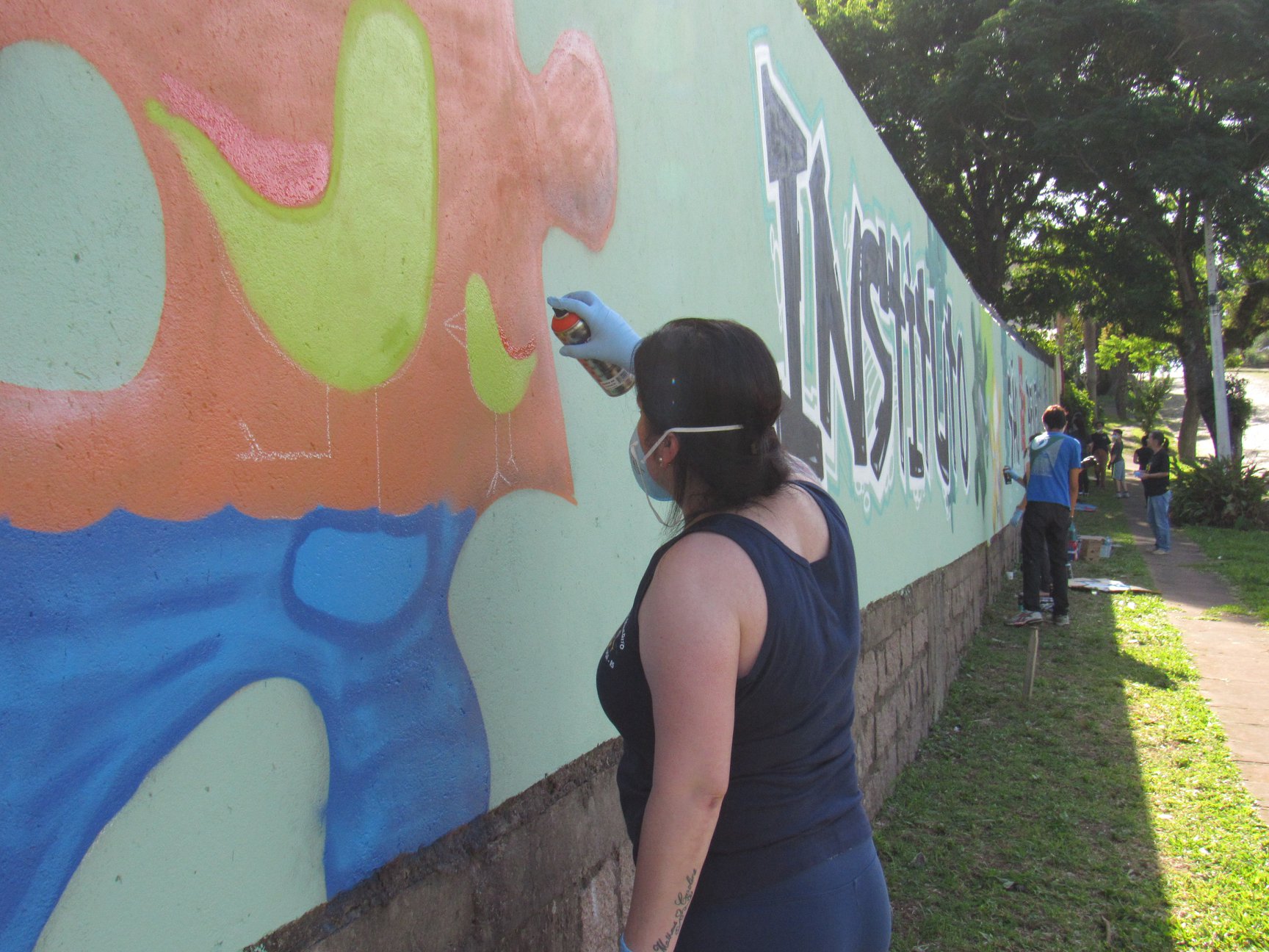 Grafitando o muro do Instituto, nossos artistas sempre se empenhando!