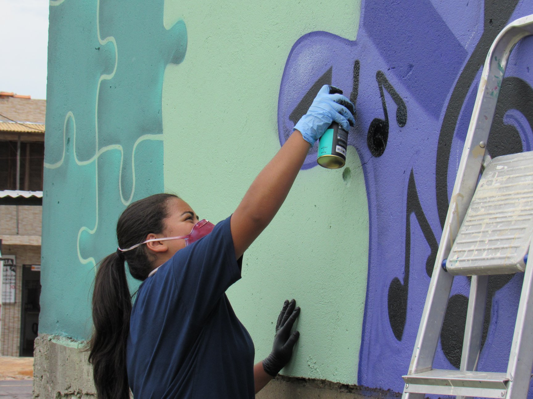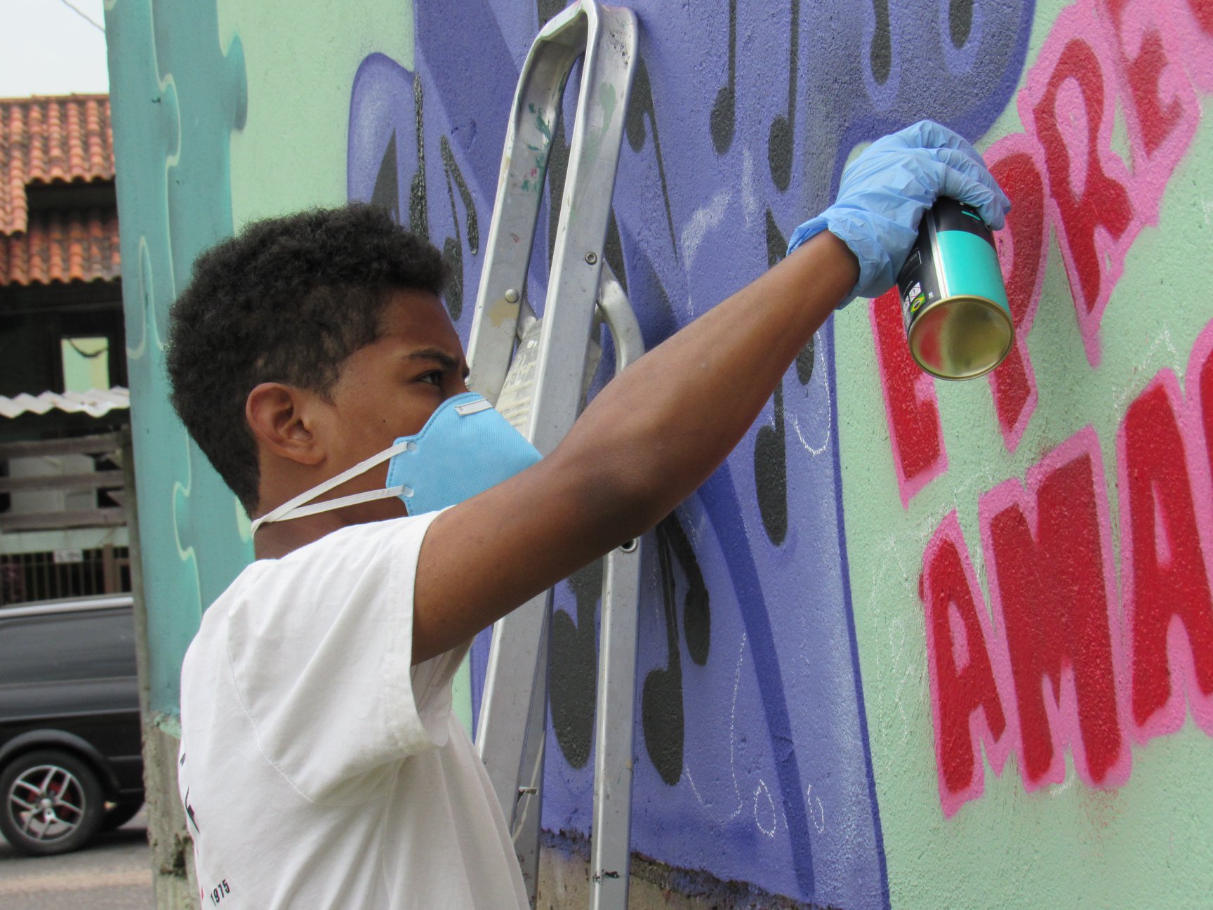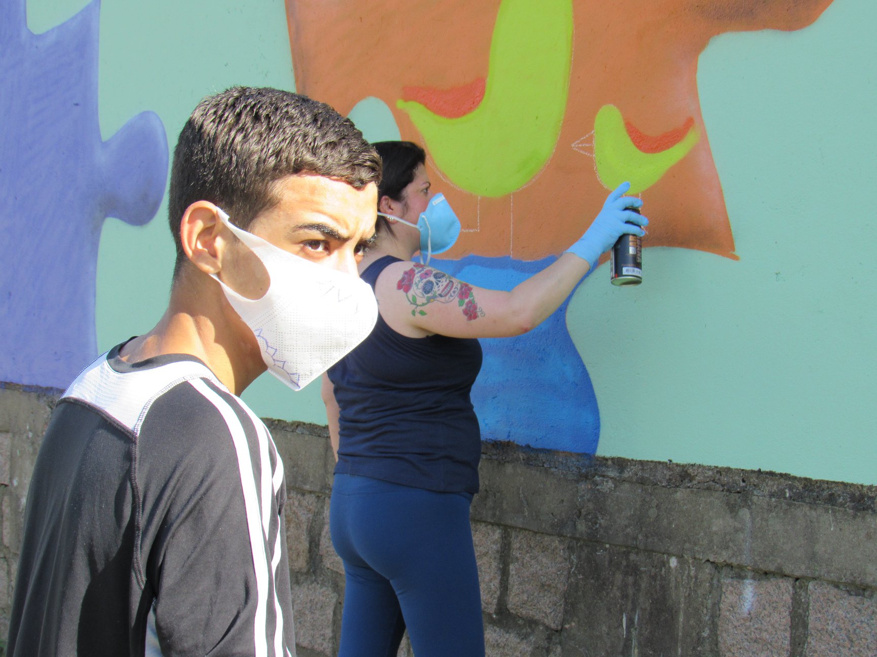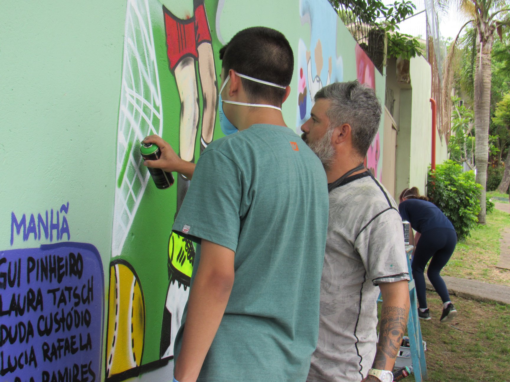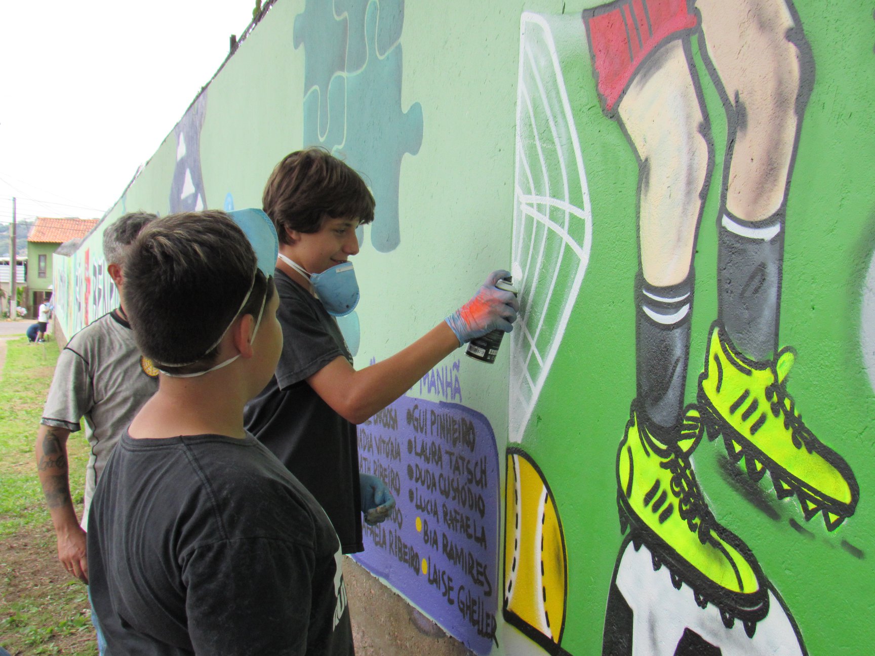 Grafitando o muro do Instituto, nossos artistas sempre se empenhando!