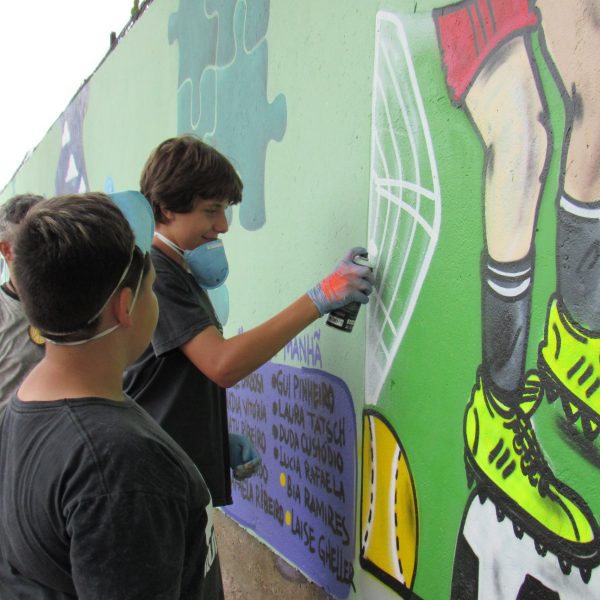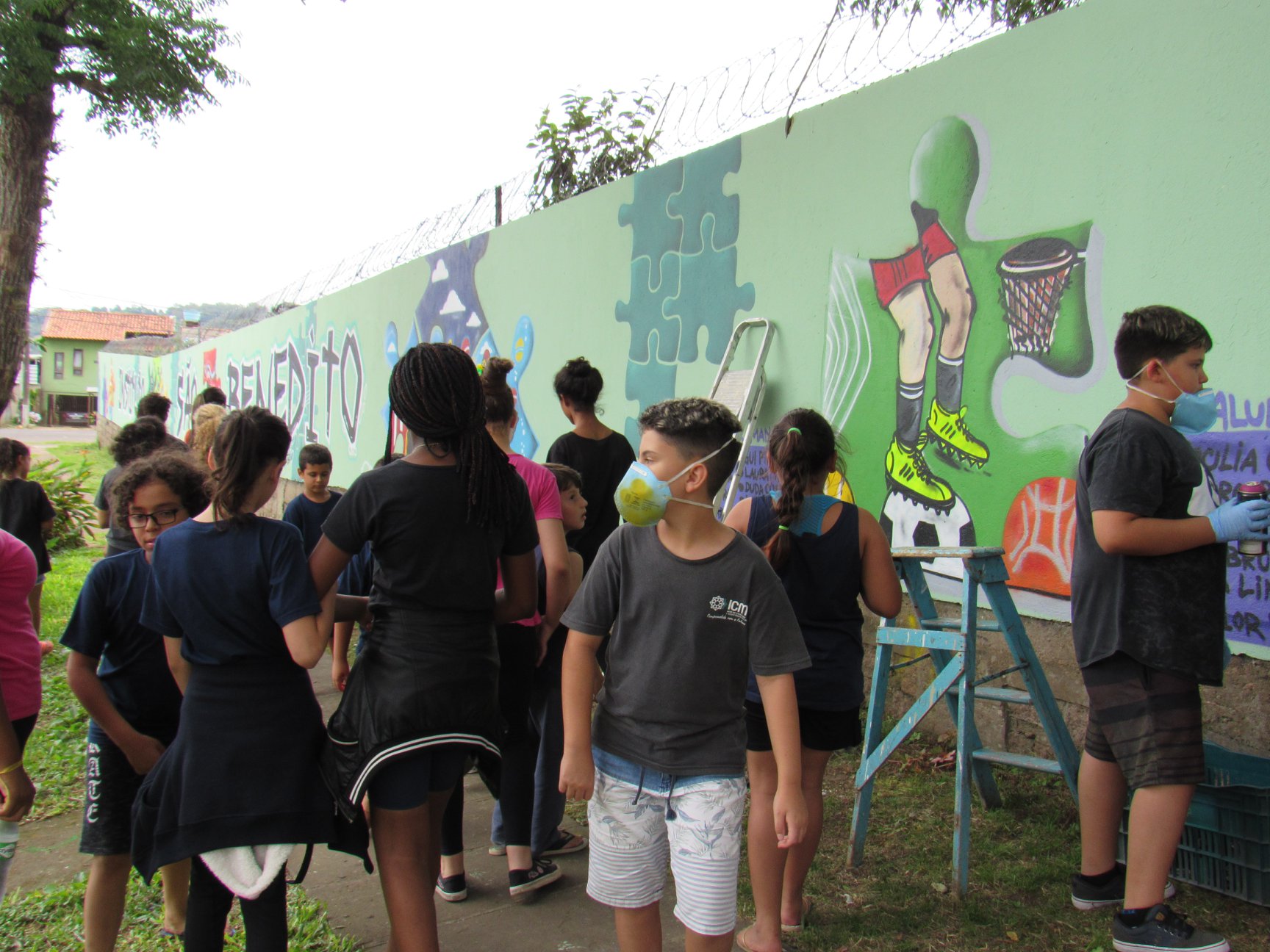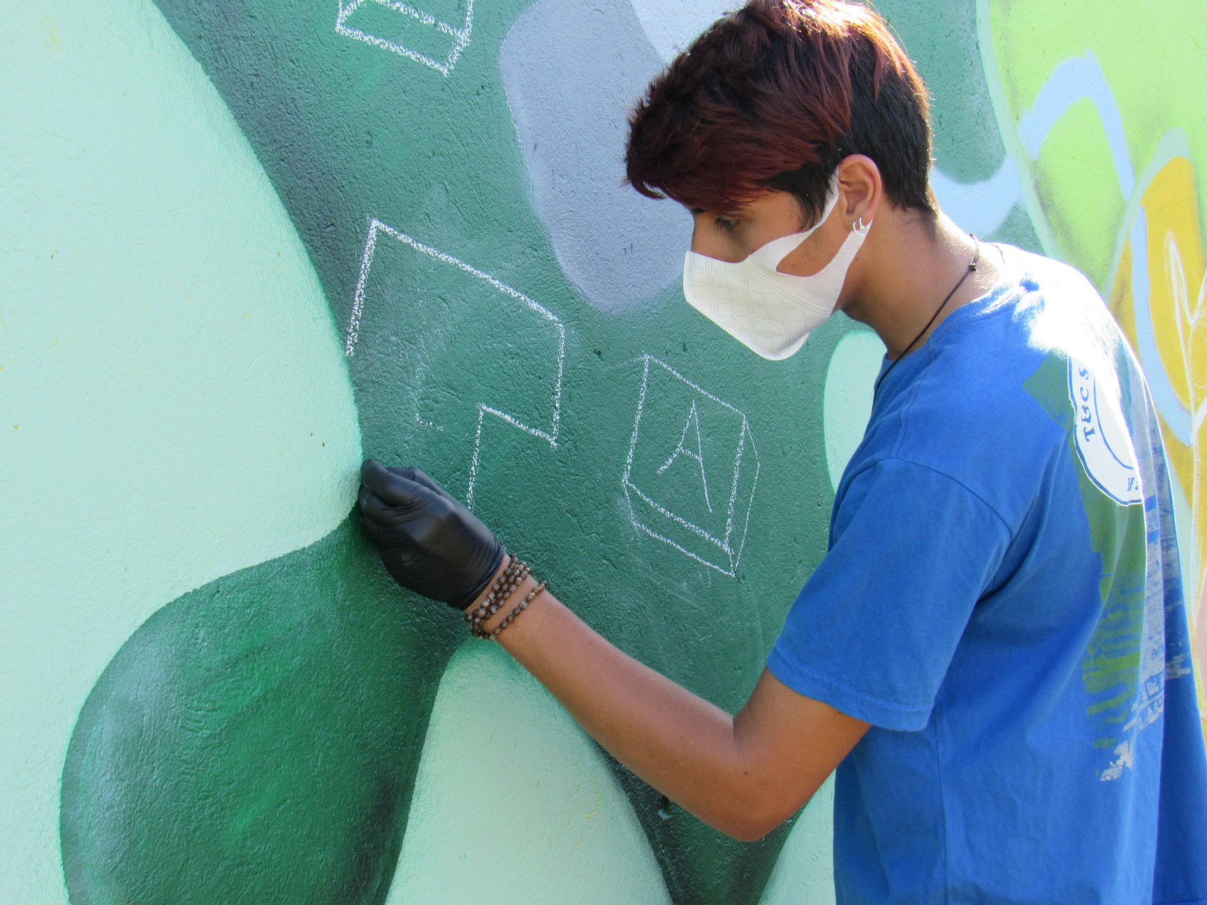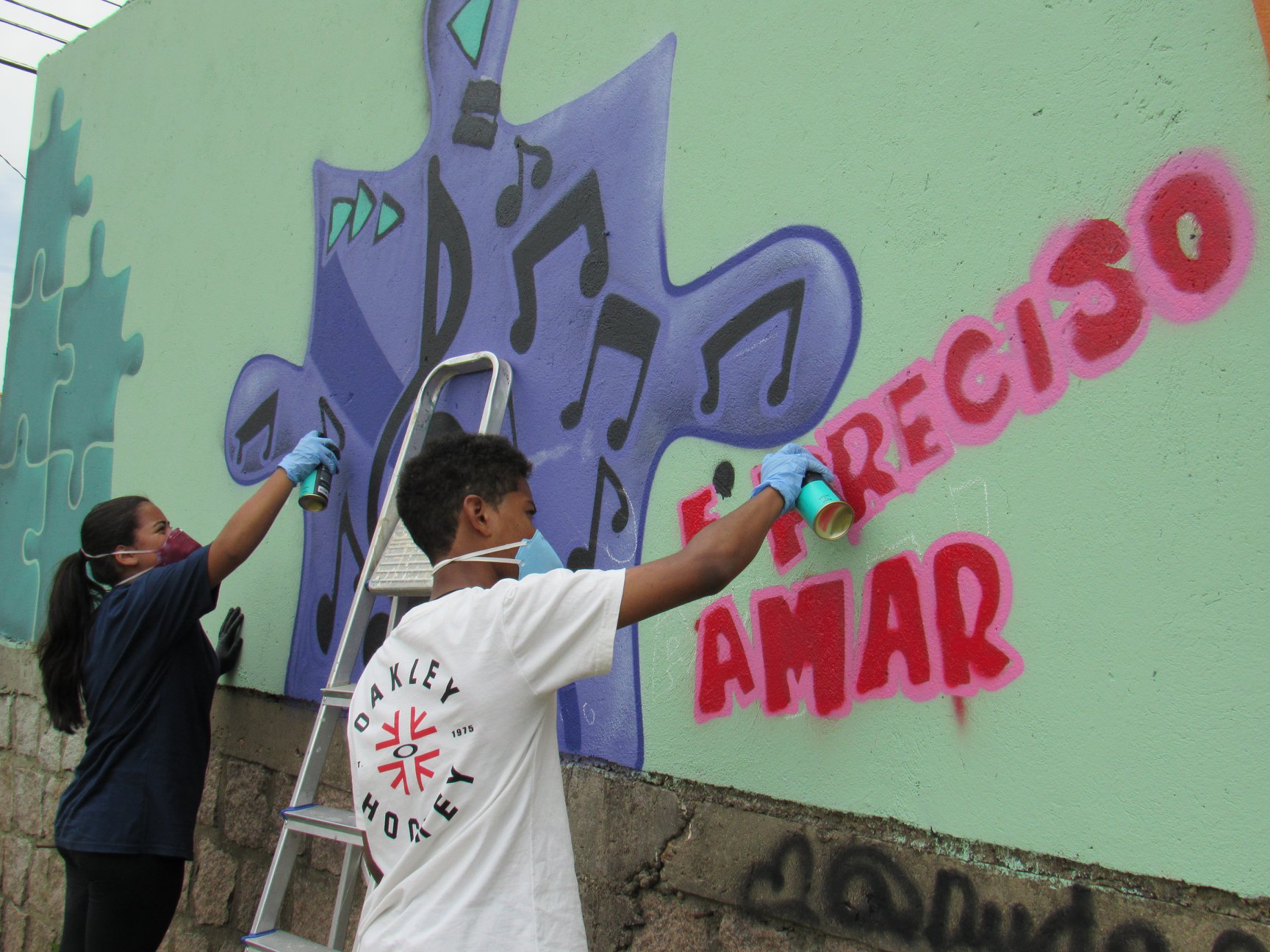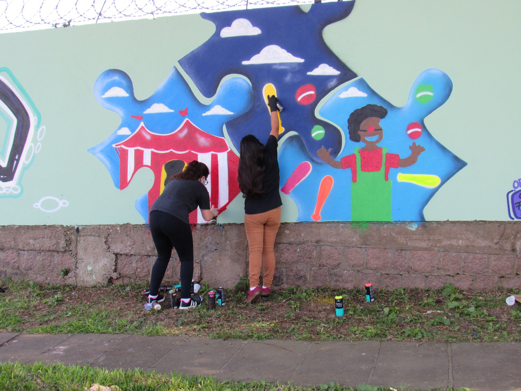 Grafitando o muro do Instituto, nossos artistas sempre se empenhando!