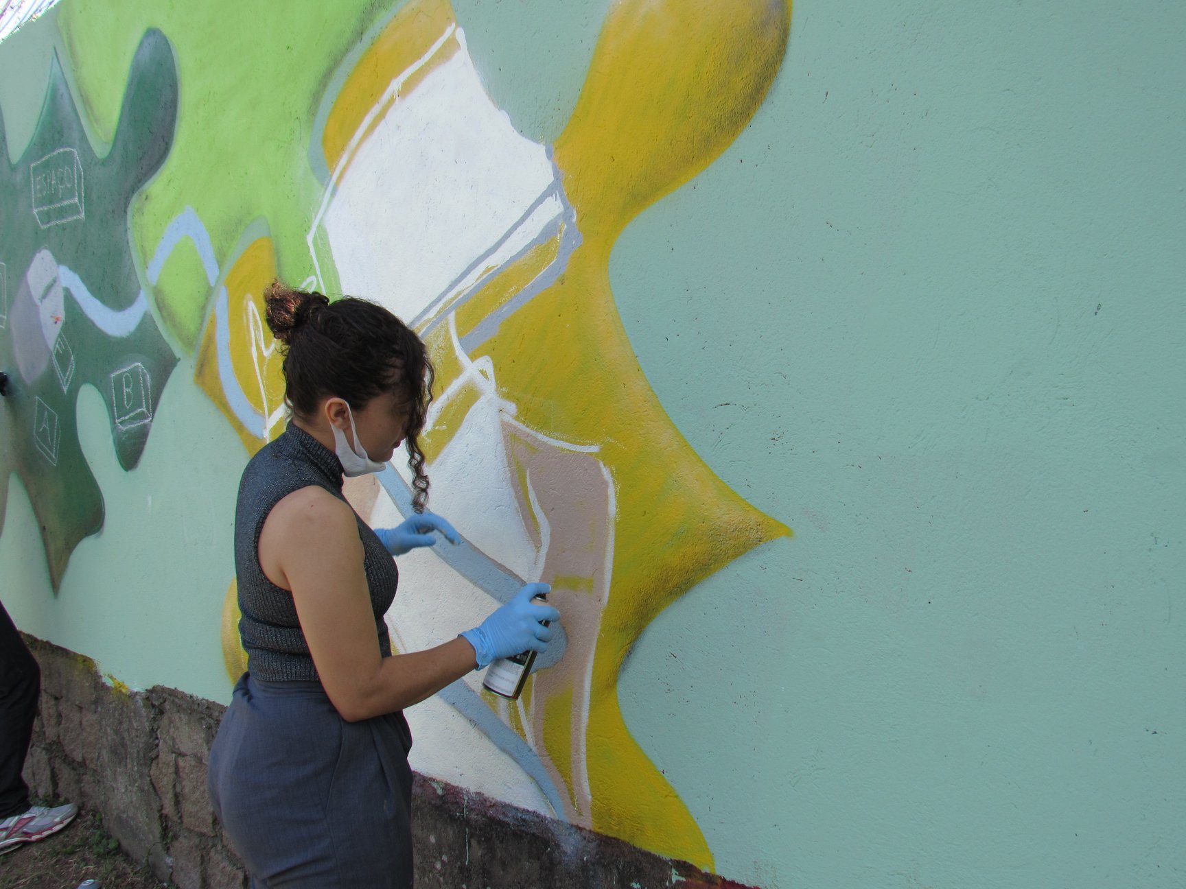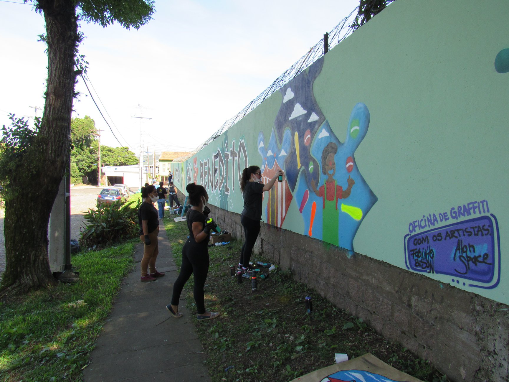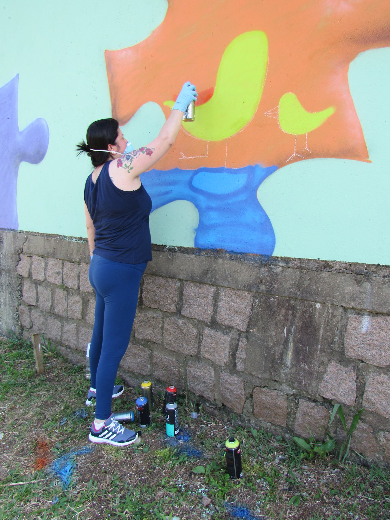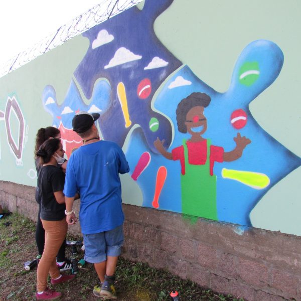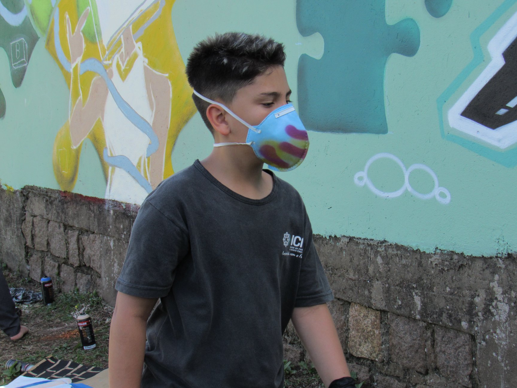 Grafitando o muro do Instituto, nossos artistas sempre se empenhando!