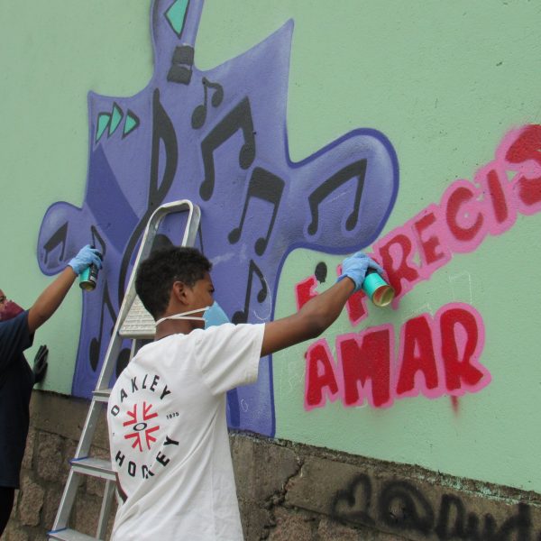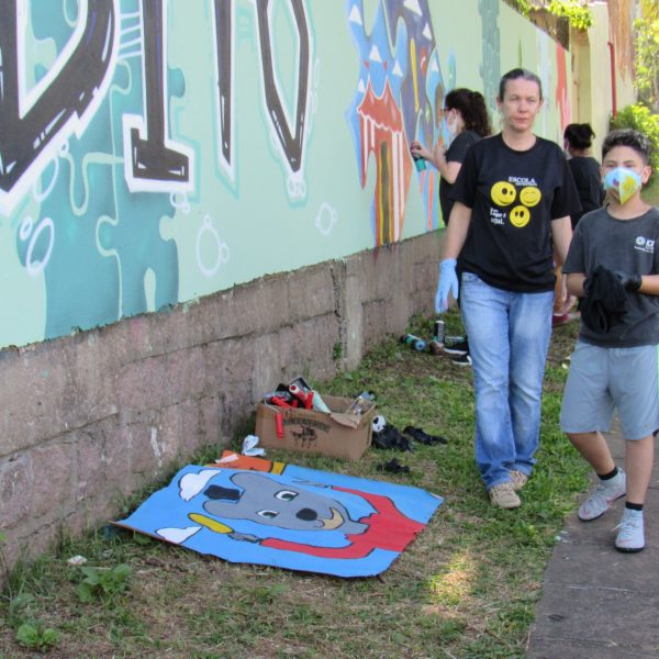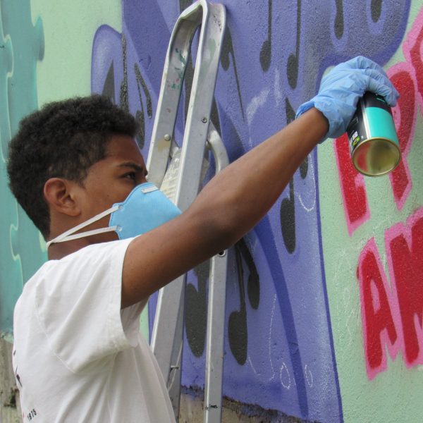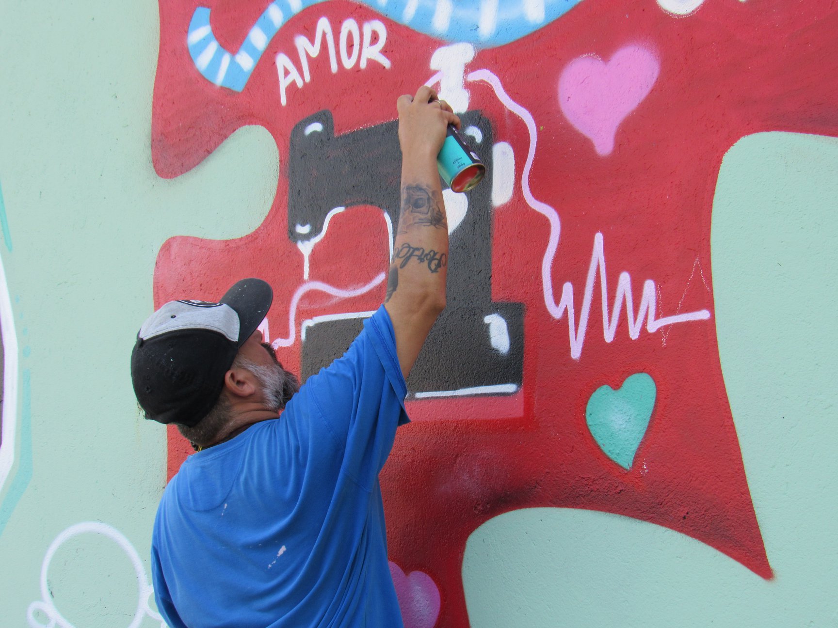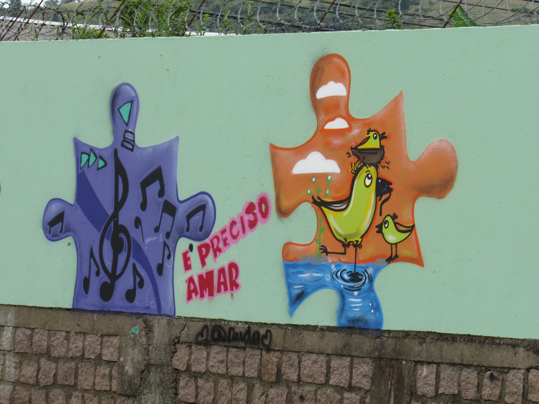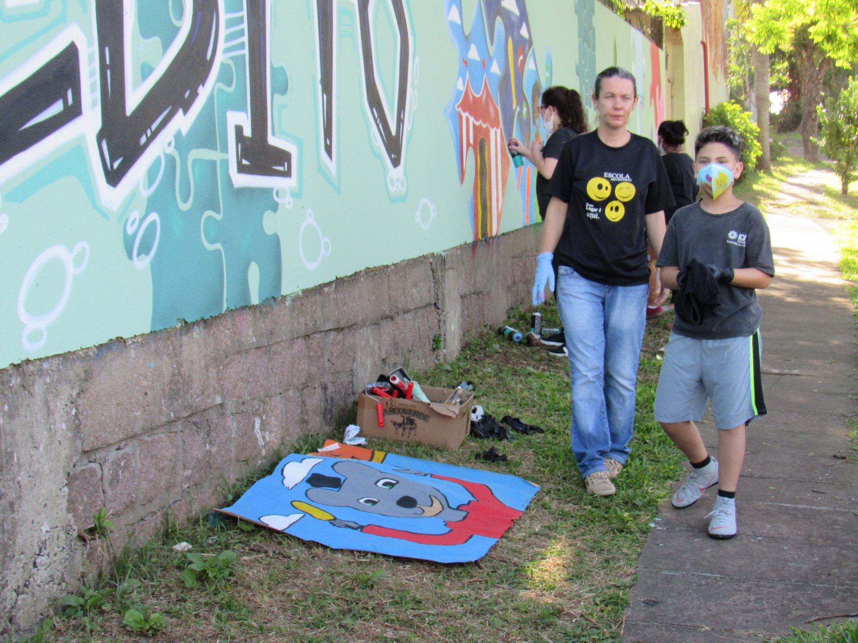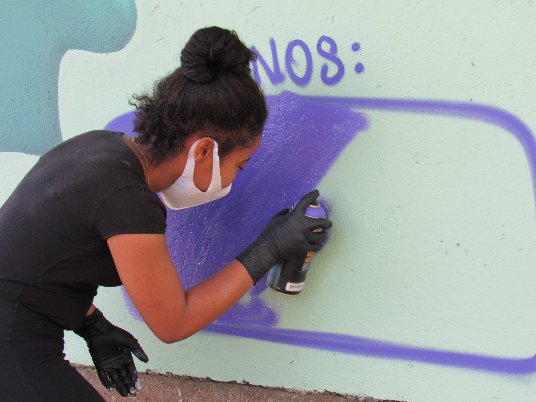Grafitando o muro do Instituto, nossos artistas sempre se empenhando!