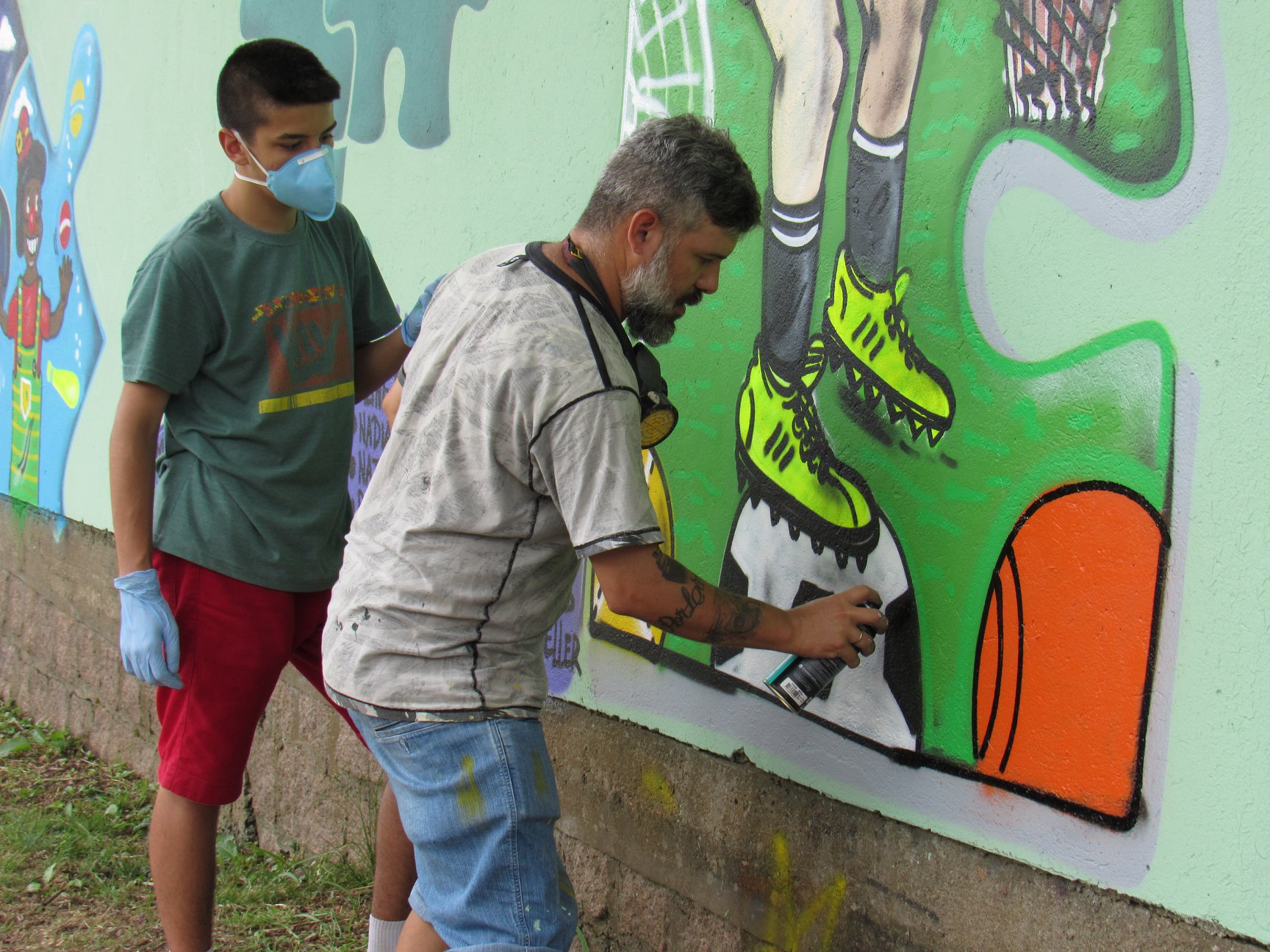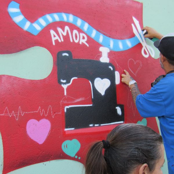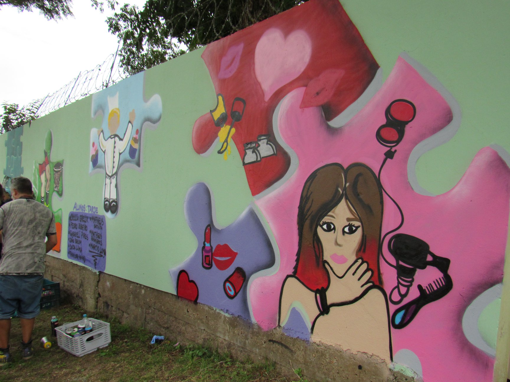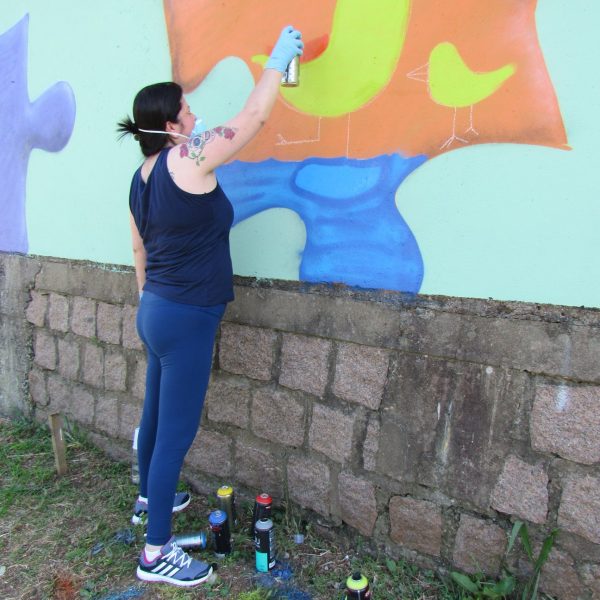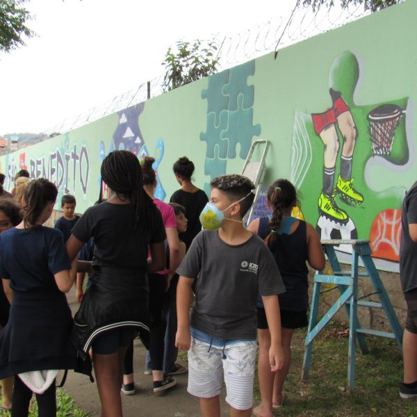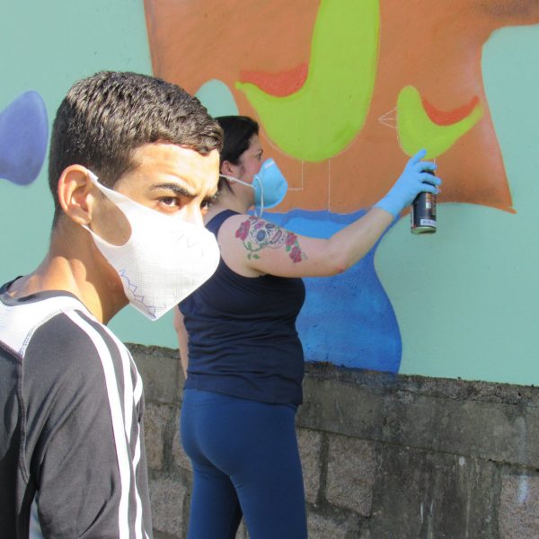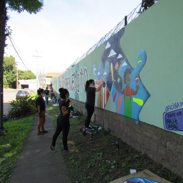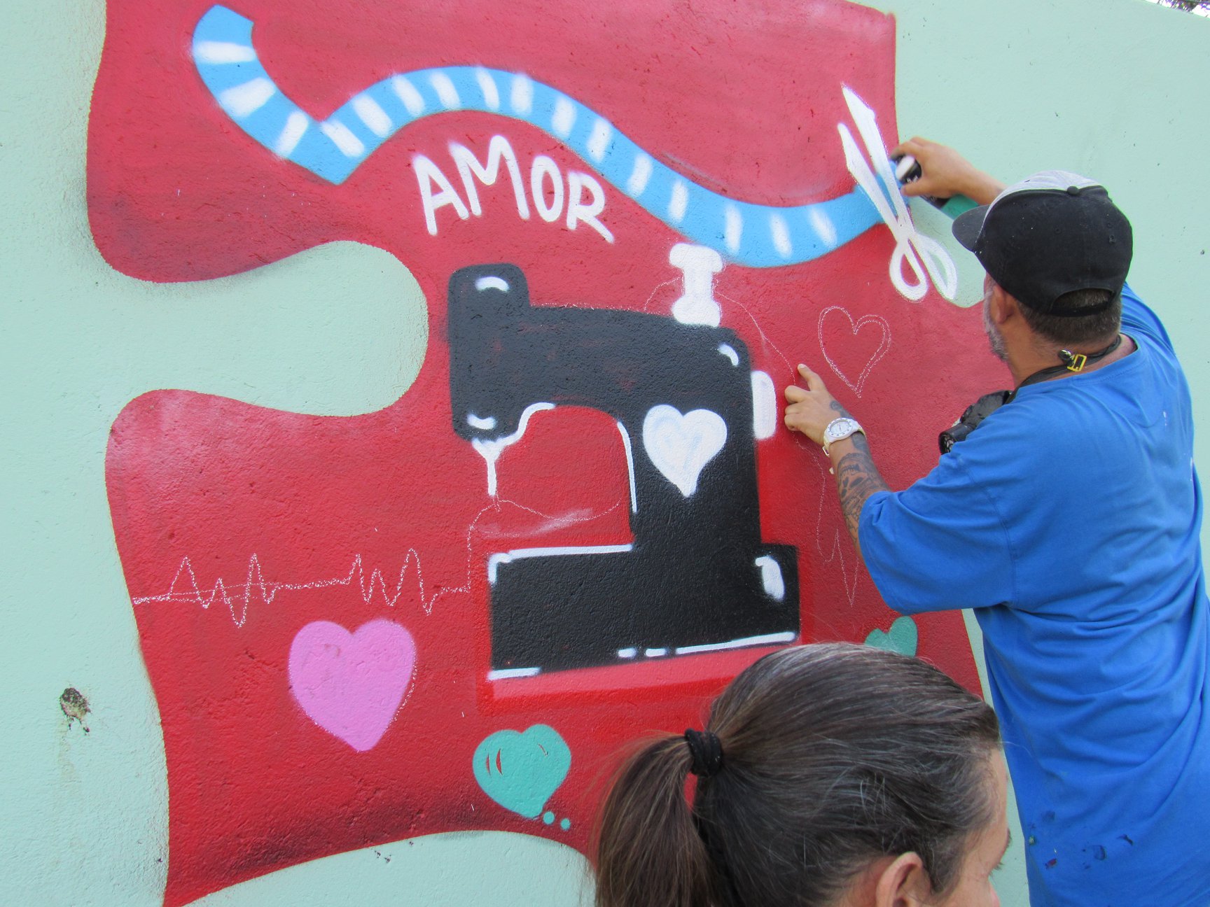 Grafitando o muro do Instituto, nossos artistas sempre se empenhando!
