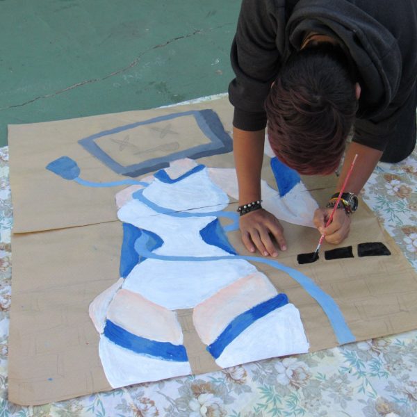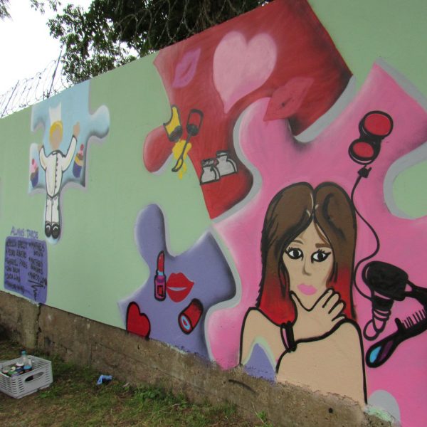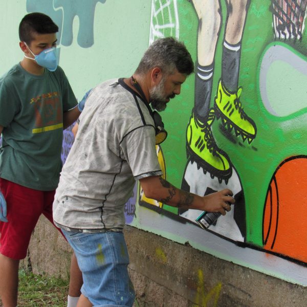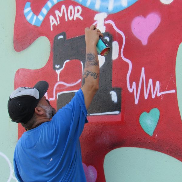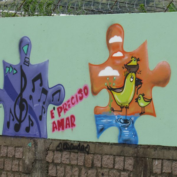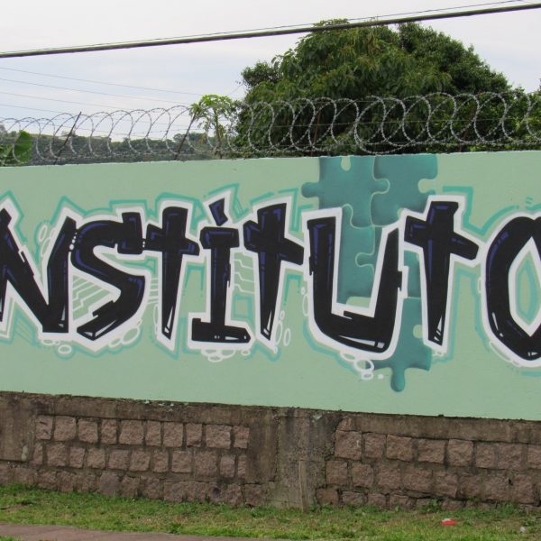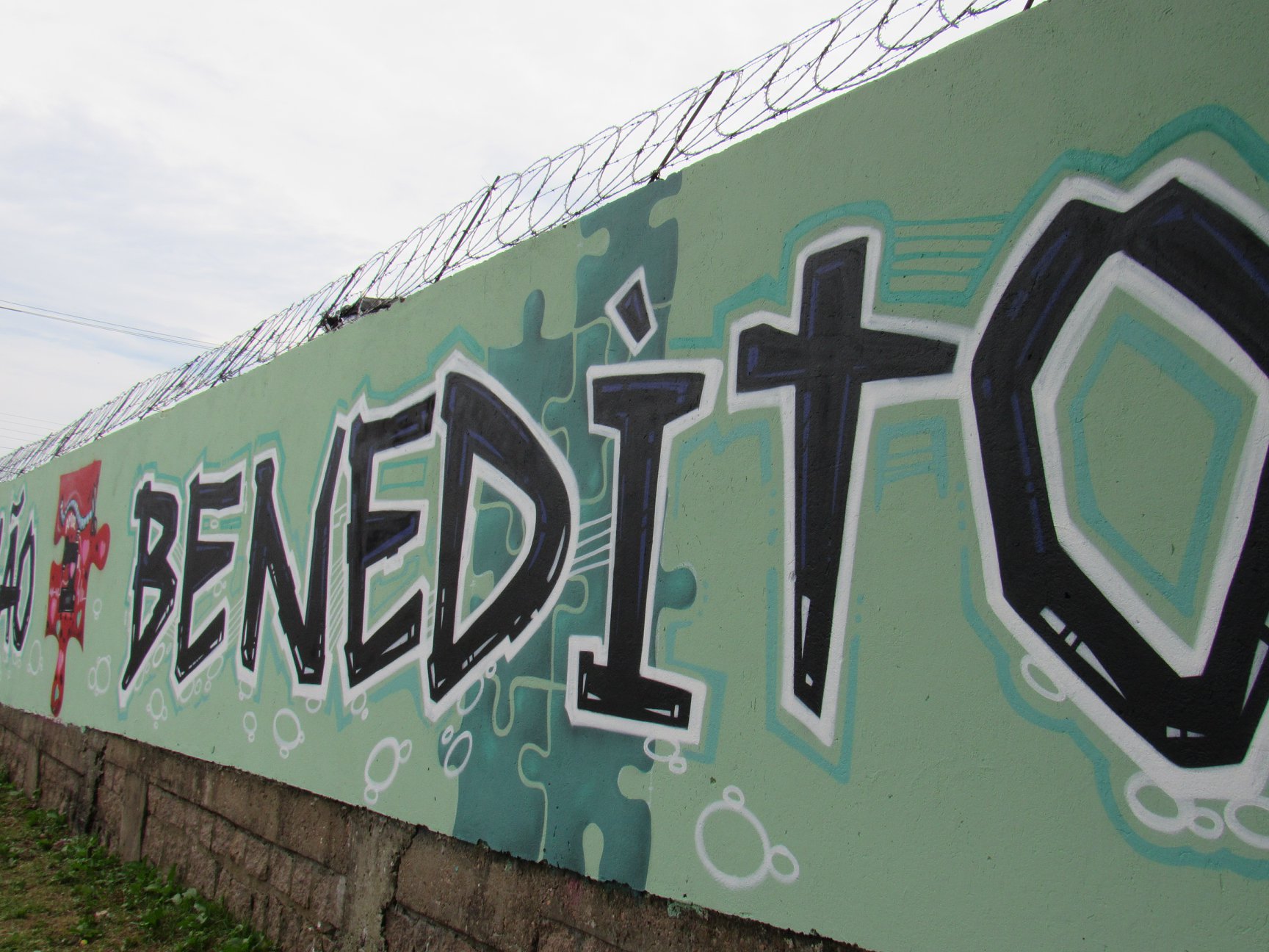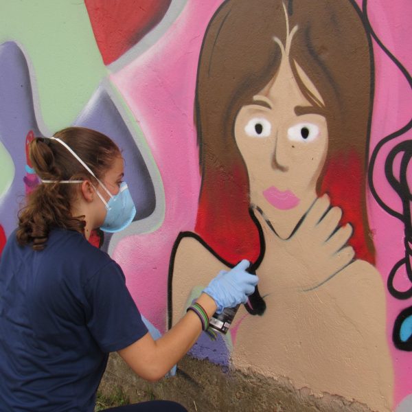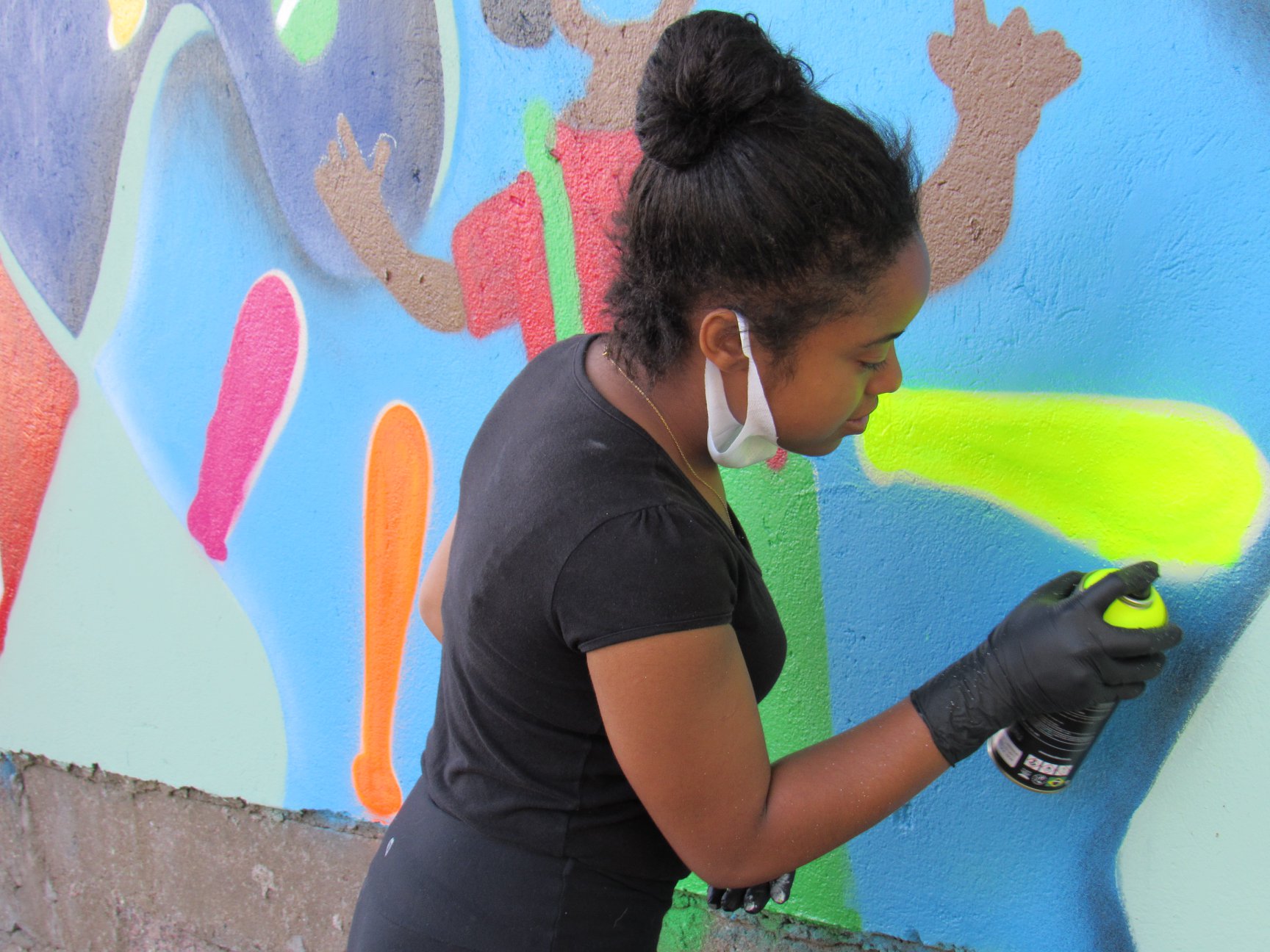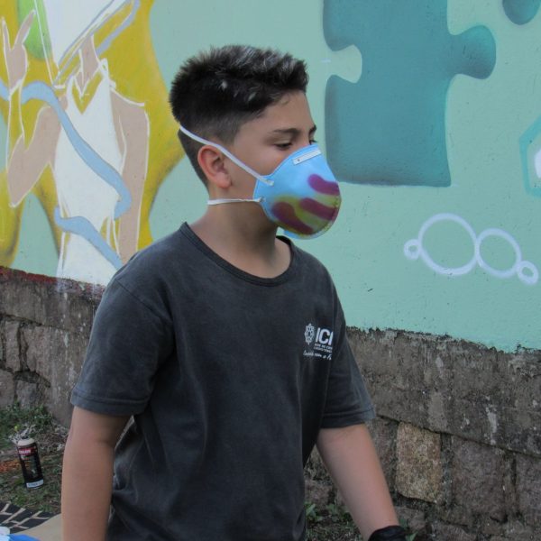 Grafitando o muro do Instituto, nossos artistas sempre se empenhando!