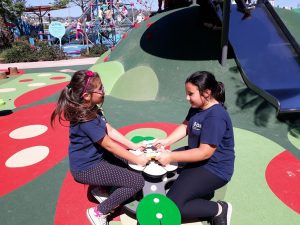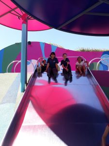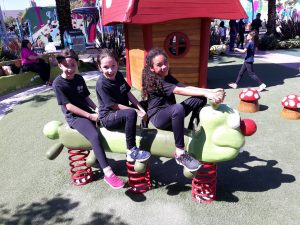 Durante a locomoção as crianças já foram passando o protetor solar, o dia estava lindo com muito sol e todos puderam aproveitar bastante nos brinquedos. Com a variedade de brinquedos tinha diversão para todos os gostos e todas as idades, e para fechar com chave de ouro todos tomaram sorvete antes de voltar para a instituição.