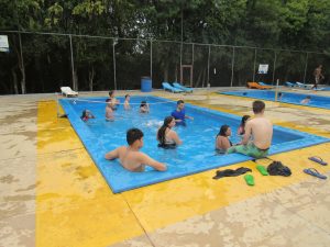 O dia estava muito lindo e ensolarado os jovens puderam aproveitar bastante as piscinas!