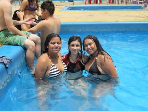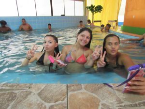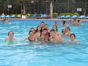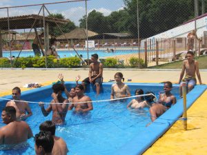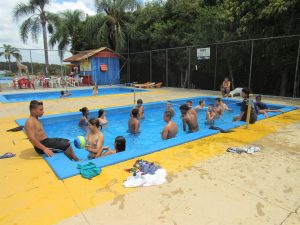 O dia estava muito lindo e ensolarado os jovens puderam aproveitar bastante as piscinas!