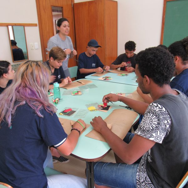 Neste dia os jovens da modalidade Customização participaram da oficina de EVA com a Educadora Catiani, eles começaram a atividade fazendo os personagens do “Chaves”. A oficina exige bastante concentração e habilidade para realizar as tarefas com sucesso, os jovens tiveram bom desempenho que resultou em lindos trabalhos!