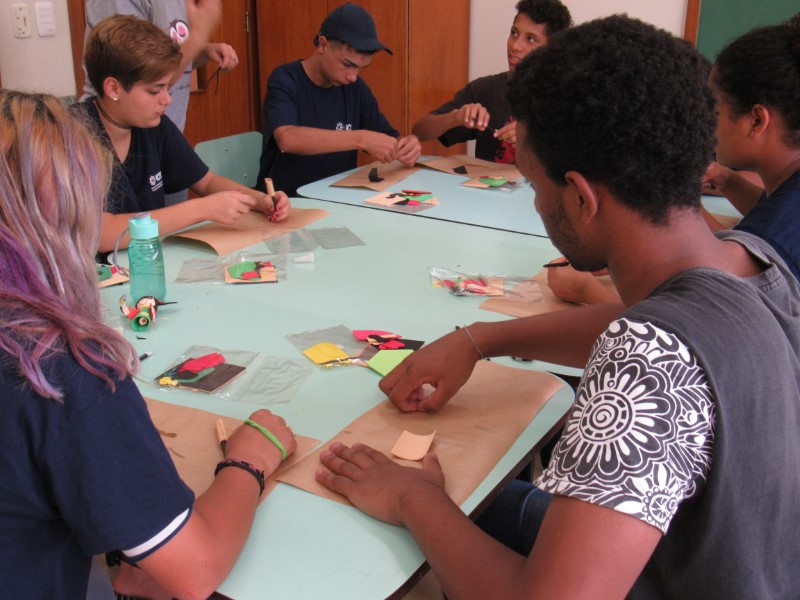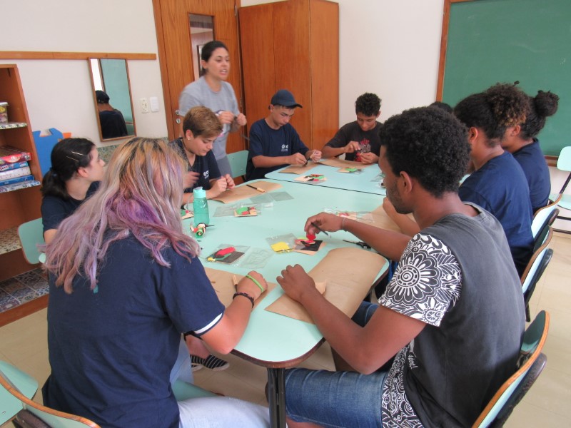 Neste dia os jovens da modalidade Customização participaram da oficina de EVA com a Educadora Catiani, eles começaram a atividade fazendo os personagens do “Chaves”. A oficina exige bastante concentração e habilidade para realizar as tarefas com sucesso, os jovens tiveram bom desempenho que resultou em lindos trabalhos!