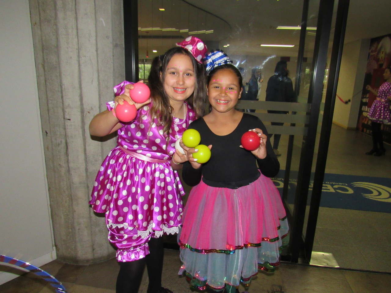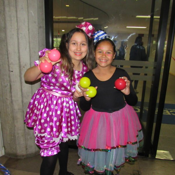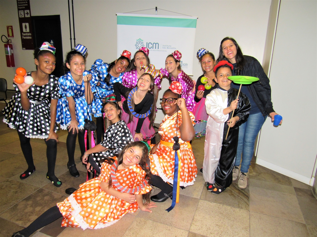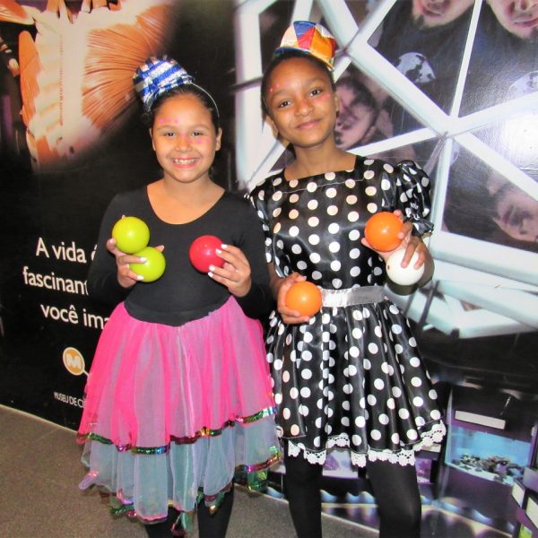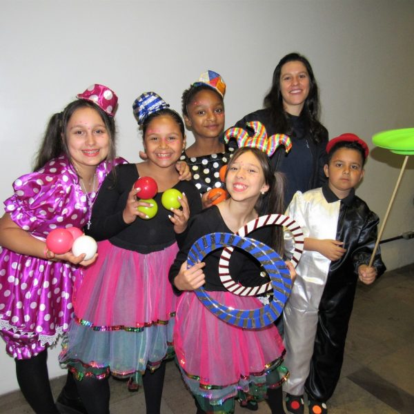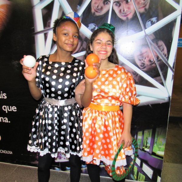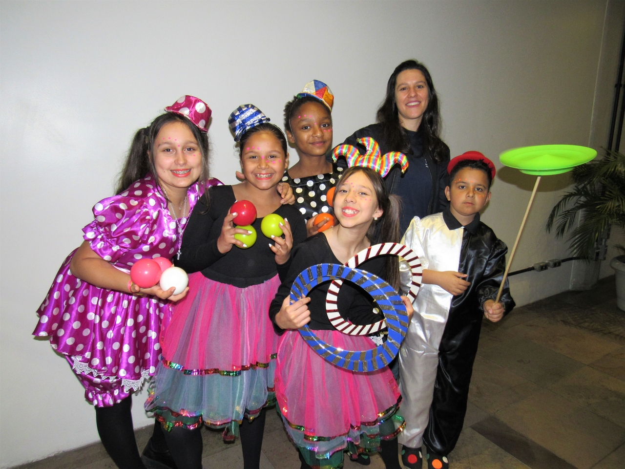 Nossos educandos foram caracterizados e fizeram truques de malabarismo na recepção, desejando um bom dia para todos que chegaram!