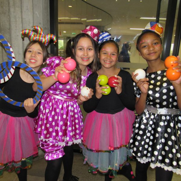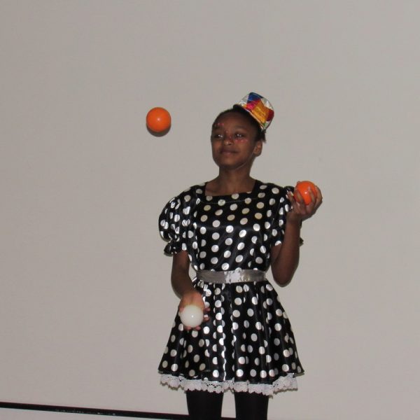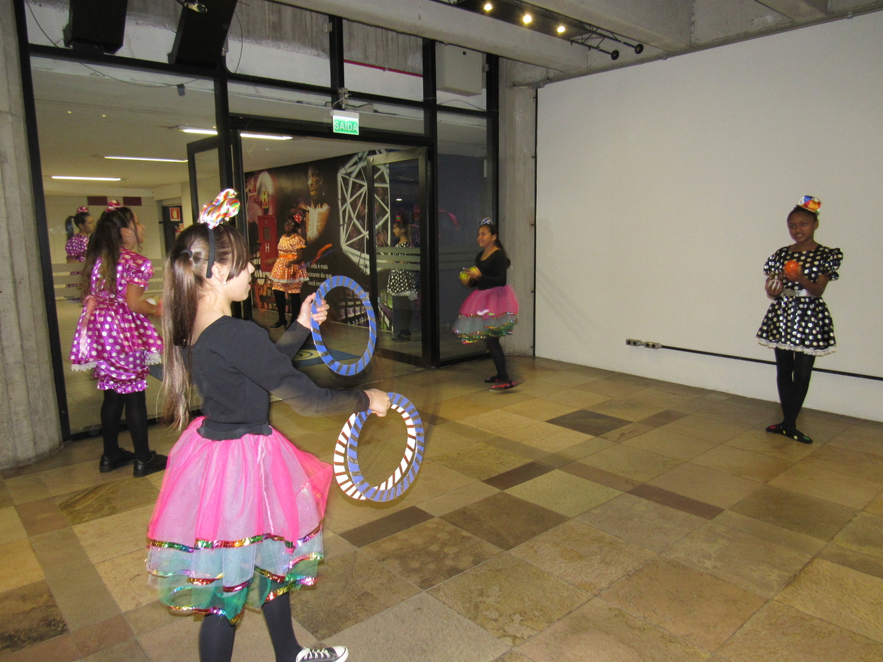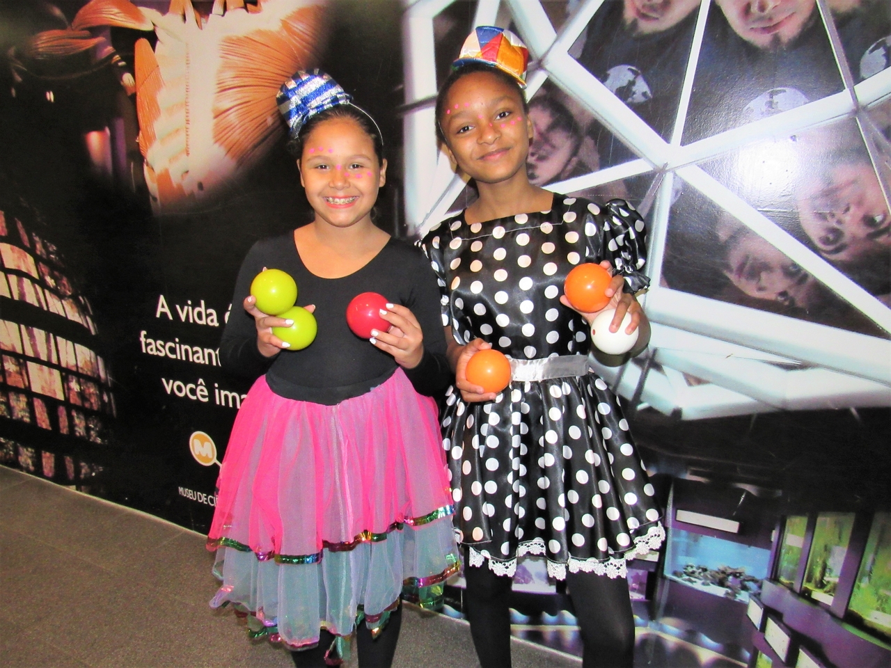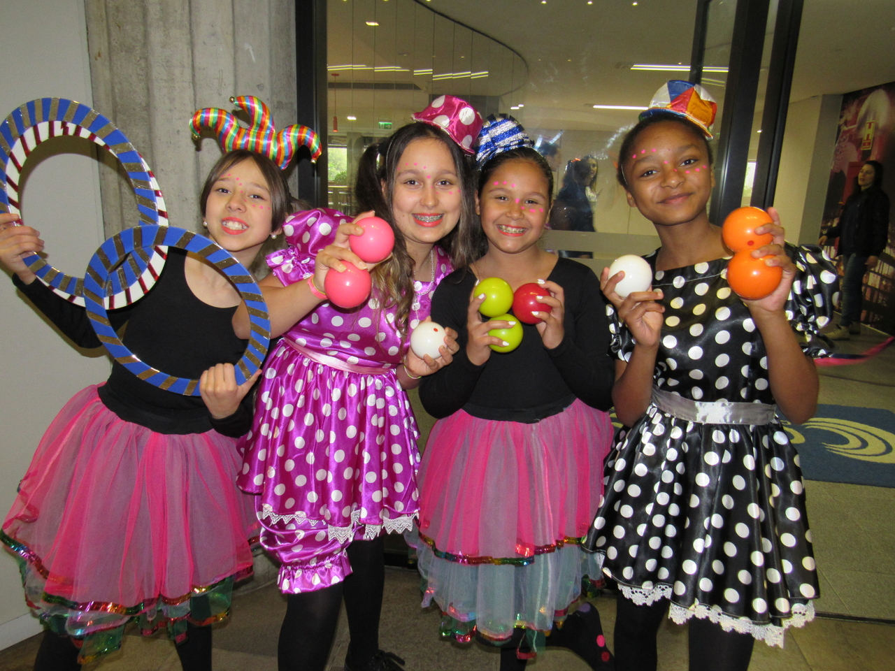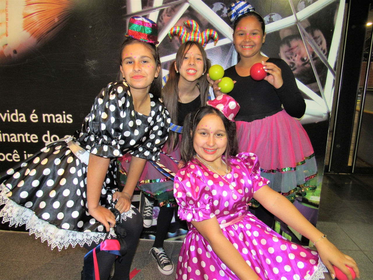 Nossos educandos foram caracterizados e fizeram truques de malabarismo na recepção, desejando um bom dia para todos que chegaram!