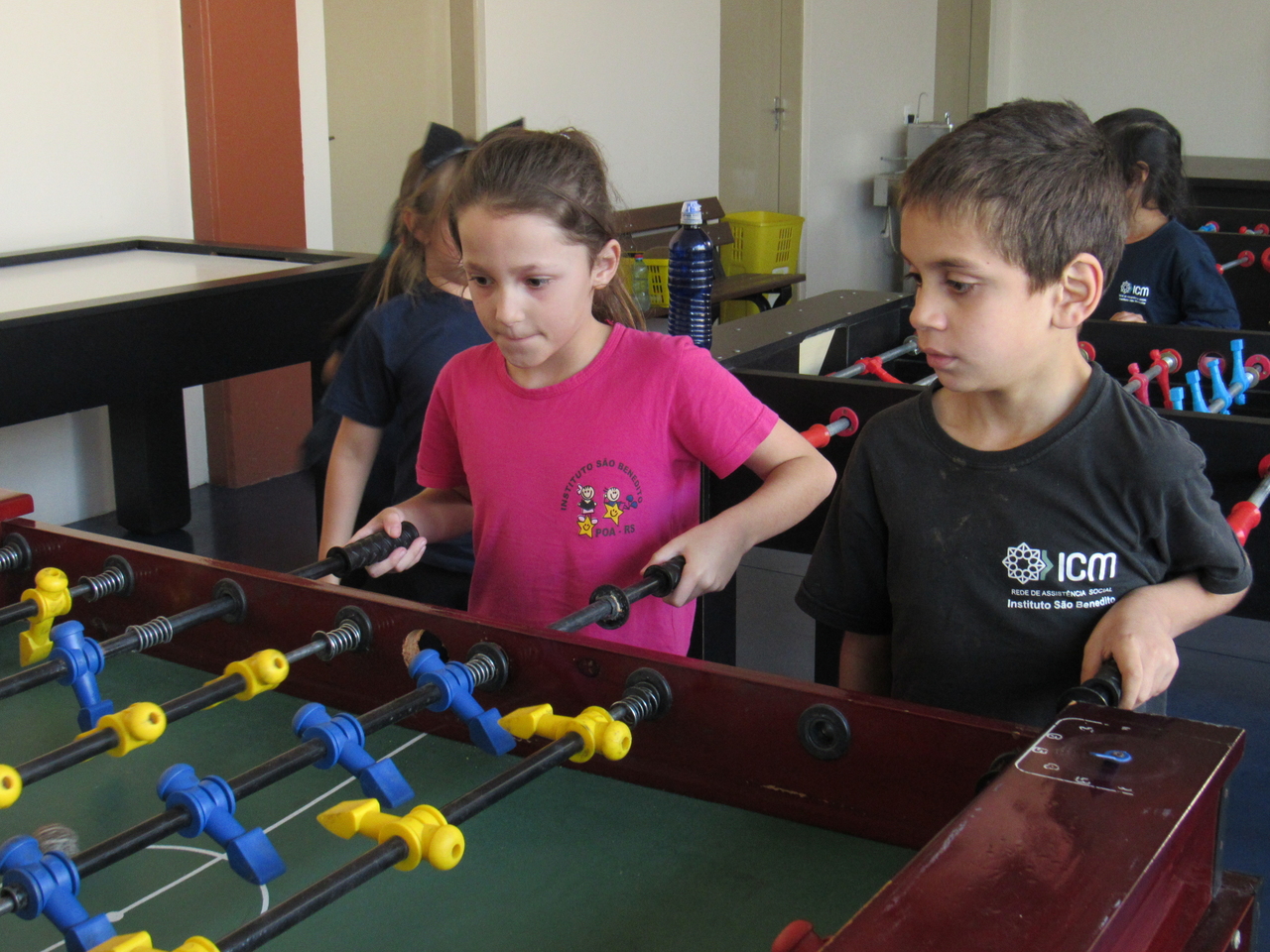 As crianças e adolescentes do Instituto São Benedito adoram os momentos de recreação com os colegas. Utilizam a sala de jogos, pracinha, quadra de esportes e cama elástica nos momentos de lazer.