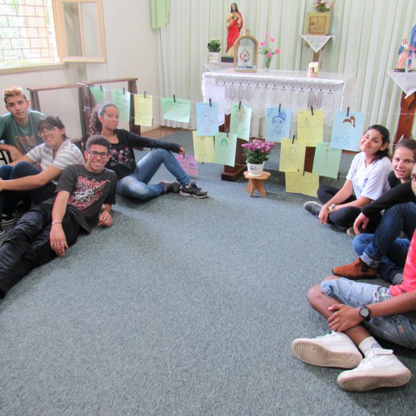 Neste dia ocorreu o reencontro dos jovens, foi o primeiro encontro de 2019. Fizeram a dinâmica do ” Quem sou eu” onde falavam suas caraterísticas… Foi feito relatos e preparações de algumas ações e também desenharam os amigos que não puderam estar presente no dia para que simboliza-se os colegas.