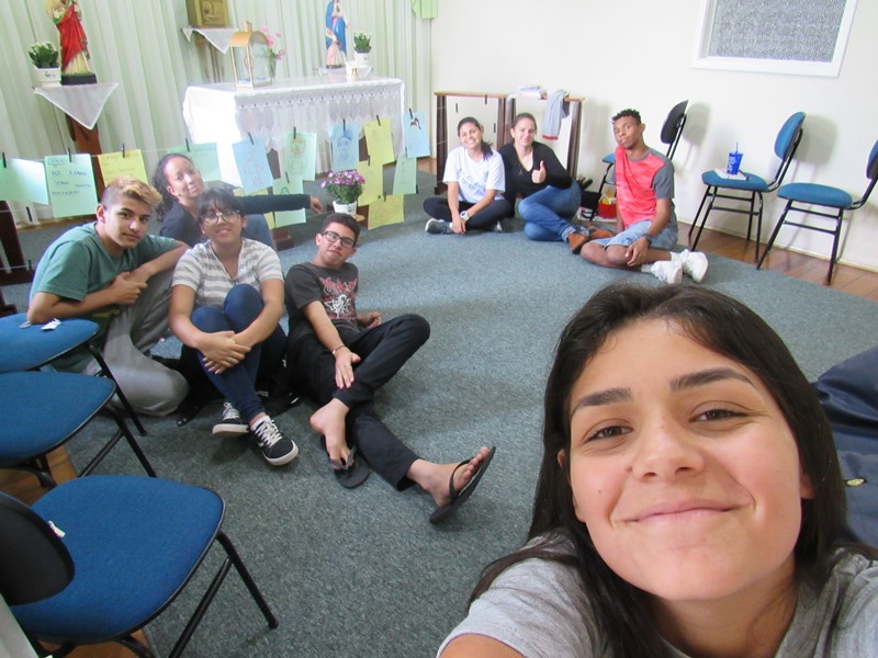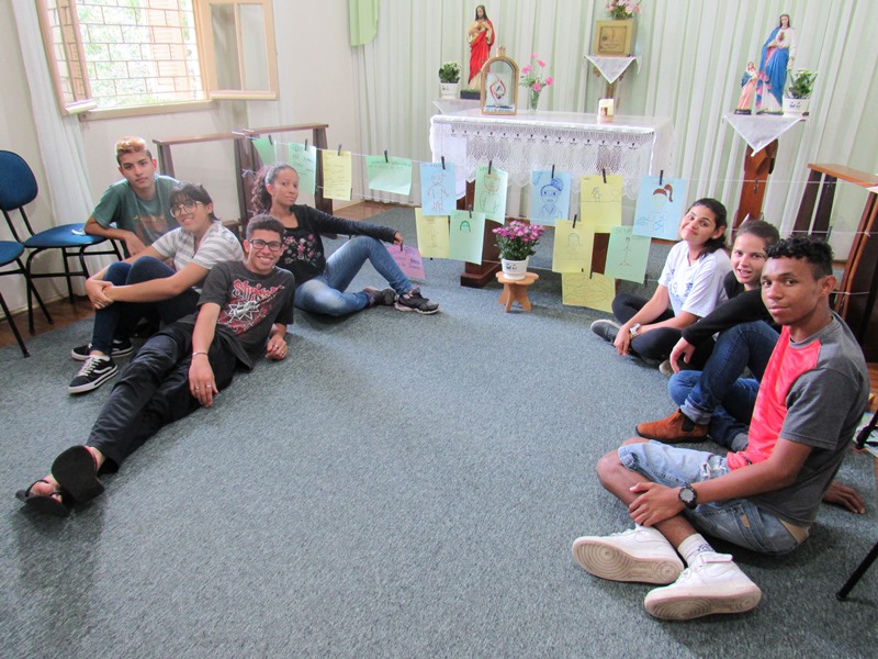 Neste dia ocorreu o reencontro dos jovens, foi o primeiro encontro de 2019. Fizeram a dinâmica do ” Quem sou eu” onde falavam suas caraterísticas… Foi feito relatos e preparações de algumas ações e também desenharam os amigos que não puderam estar presente no dia para que simboliza-se os colegas.