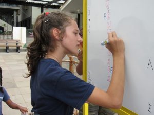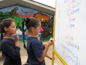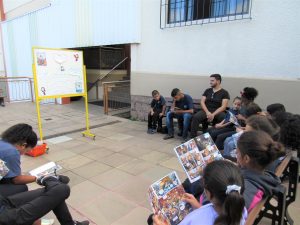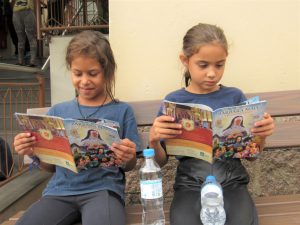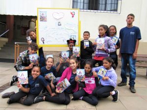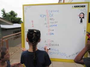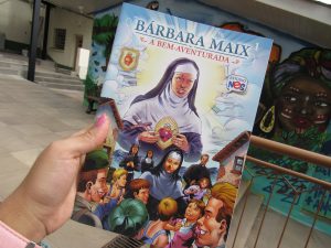 As crianças e adolescentes fizeram a leitura do livro onde conta a história e trajetória de Bárbara Maix em sua vida religiosa. Após a leitura, juntos montaram um acrostico com o nome de Bárbara onde cada um escreveu uma palavra que lembrasse seus ensinamento e características.