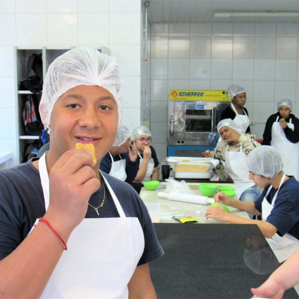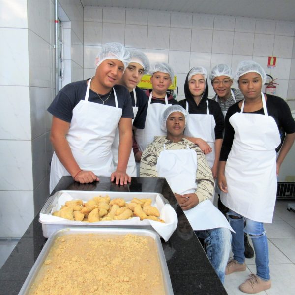 Na modalidade de Culinária os jovens estão sempre conhecendo novas receitas, nesta semana aprenderam a fazer risoles de frango.