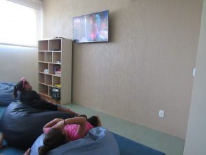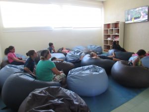 E com esse calor, como a piscina estava passando pela limpeza, aproveitamos para fazer sessão cinema na sala de formação…