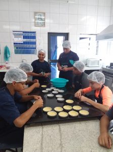 Dividindo as tarefas e revezando na produção, os jovens fizeram muitas tortinhas deliciosas, depois de tudo pronto e limpo hora de degustar!