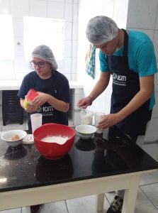 Neste dia foi feito uma integração entre as modalidades Oficinas Culturais e Culinária no turno da manhã e também no turno da tarde. As duas turmas fizeram juntas a receita de Tortinha de Limão sob orientação das educadoras Suely e Joana.