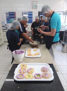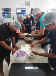 Dividindo as tarefas e revezando na produção, os jovens fizeram muitas tortinhas deliciosas, depois de tudo pronto e limpo hora de degustar!