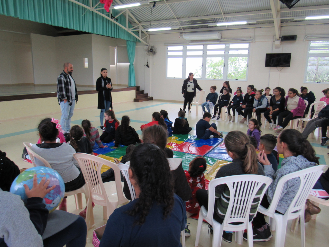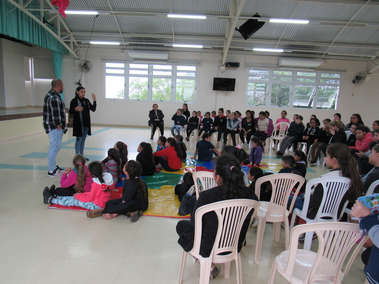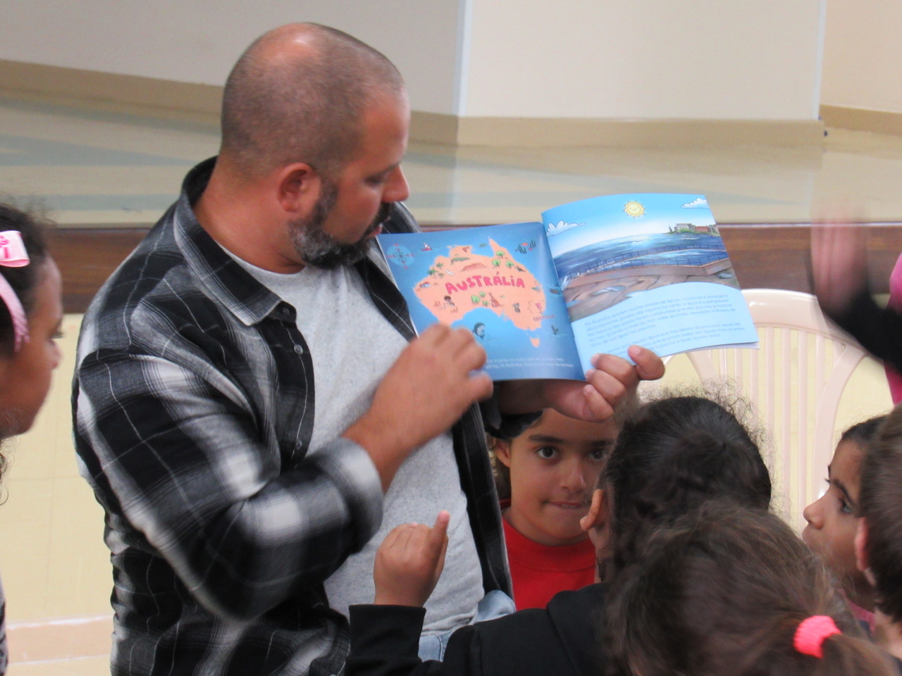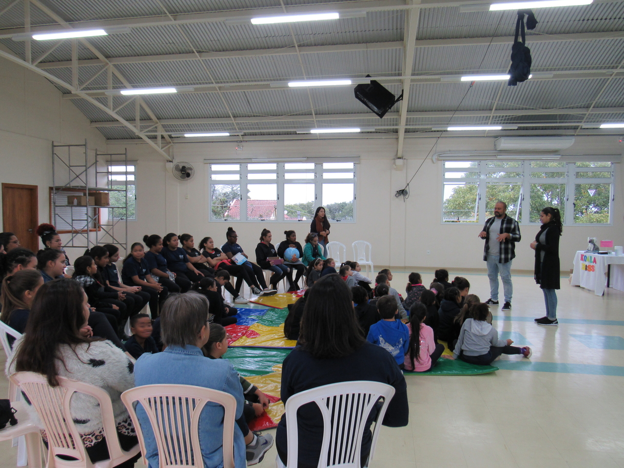 As crianças fizeram a leitura da história Koala Boss para o grande grupo, depois tivemos a roda de conversas para esclarecer algumas dúvidas sobre o livro e sobre a Austrália, que é onde o escritor mora atualmente e onde ele criou a obra.