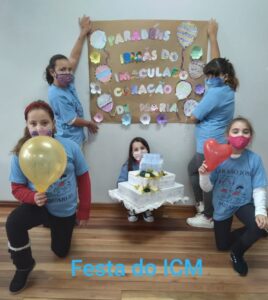 As crianças e adolescentes, do Lar São José, comemoram e parabenizam as Irmãs da Congregação ICM pela data. O registro é do Grupo 4, da educadora Gisele, que confeccionou um bolo, símbolo de Festa e alegria. Que o Imaculado Coração de Maria abençoe a vida da Congregação, em todos os espaços de missão.