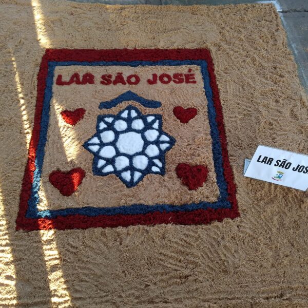 Tapete de Corpus Christi, evento religioso, que integra diferentes Instituições locais na confecção de tapetes.