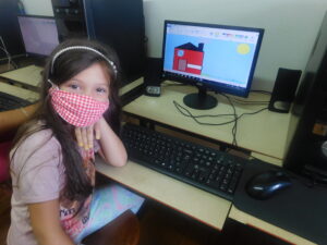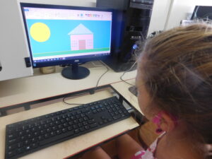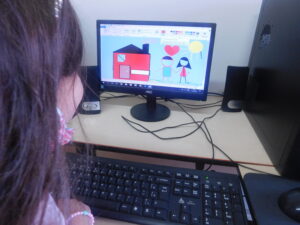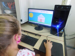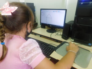 Nestes registros elas estão realizando atividades lúdicas e, principalmente, sendo estimuladas a interagir e aprender sobre os recursos tecnológicos.