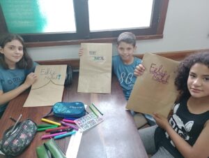 As sacolas foram confeccionadas pelas equipes de trabalho das duas instituições. Posteriormente, nas oficinas de Arteterapia com residentes na Pella Bethânia e de Artes com as crianças e adolescentes no Lar São José, as mesmas ganharam as cores do Natal.
