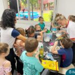 Essa semana, apesar da chuva, as crianças realizaram diversas atividades! Nos momentos mais chuvosos, atividades internas como uma sessão de cinema com direito a muita pipoca, assim como criação de uma massinha! Foi também realizada pelas crianças a produção de um sanduíche saudável, baseado na história “O Sanduíche da Maricota”. Já as atividades externas foram muito aproveitadas nos dias menos molhados e mais quentes, contando com piscina, lona, pintura ao ar livre e muitas brincadeiras na quadra e na pracinha. Como sempre, as crianças cuidaram dos bichinhos disponíveis no espaço, dando água, comida e muito amor! Foi demais! Estamos prontos para uma inesquecível última semana!