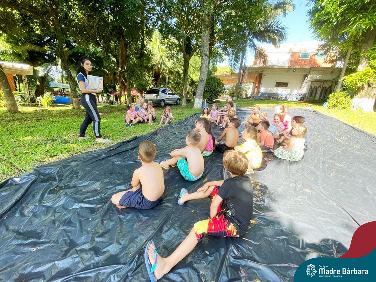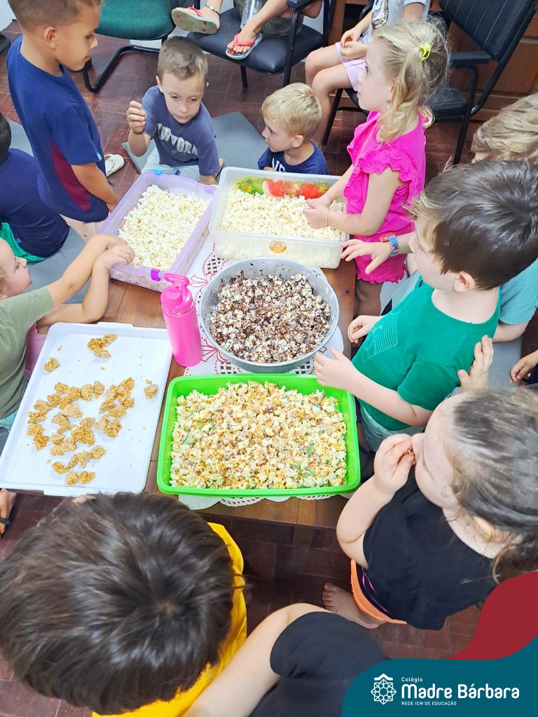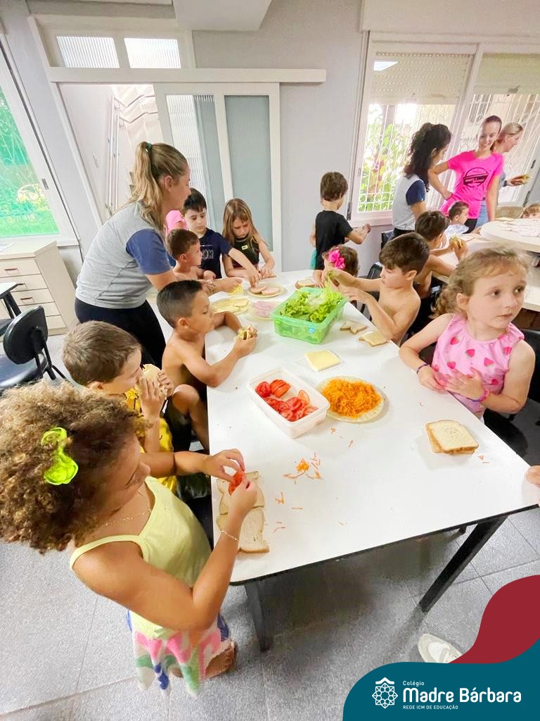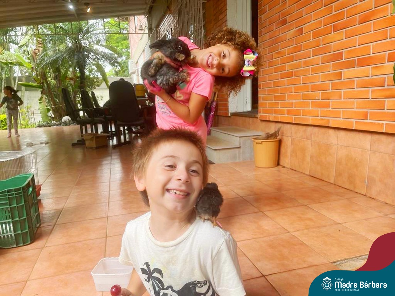 Essa semana, apesar da chuva, as crianças realizaram diversas atividades! Nos momentos mais chuvosos, atividades internas como uma sessão de cinema com direito a muita pipoca, assim como criação de uma massinha! Foi também realizada pelas crianças a produção de um sanduíche saudável, baseado na história “O Sanduíche da Maricota”. Já as atividades externas foram muito aproveitadas nos dias menos molhados e mais quentes, contando com piscina, lona, pintura ao ar livre e muitas brincadeiras na quadra e na pracinha. Como sempre, as crianças cuidaram dos bichinhos disponíveis no espaço, dando água, comida e muito amor! Foi demais! Estamos prontos para uma inesquecível última semana!