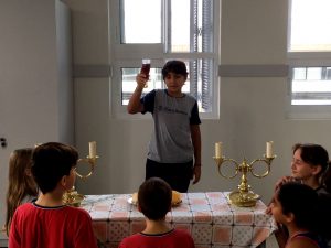 Nas aulas de Ensino Religioso a turma 51 refletiu sobre o verdadeiro significado da festa da Páscoa. Na Igreja Matriz, os alunos reviveram a Via Sacra, relacionando cada passagem aos dias atuais. Em sala de aula, foram desafiados a interpretar o Domingo de Ramos, a Quinta e a Sexta-feira Santa e o Domingo de Páscoa. Conheceram os símbolos e seus significados e reviveram o momento da Santa Ceia, com pãezinhos e suco de uva. Para finalizar, trocaram entre si cartões e bombons, na dinâmica Amigo do Chocolate. Foram momentos ricos, permeados de oração e reflexão sobre a mais importante festa cristã, a Festa da Páscoa.