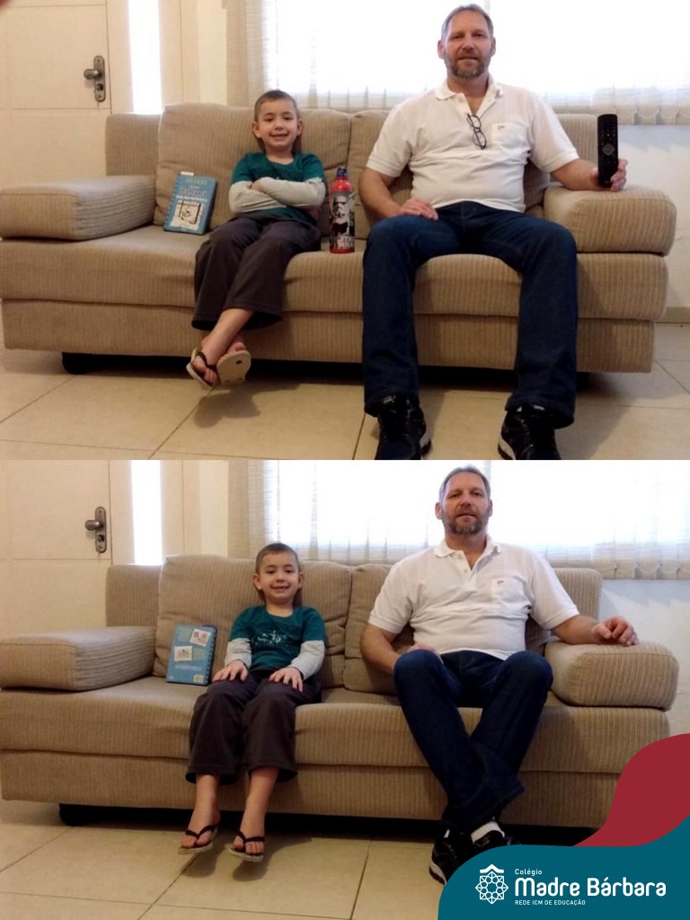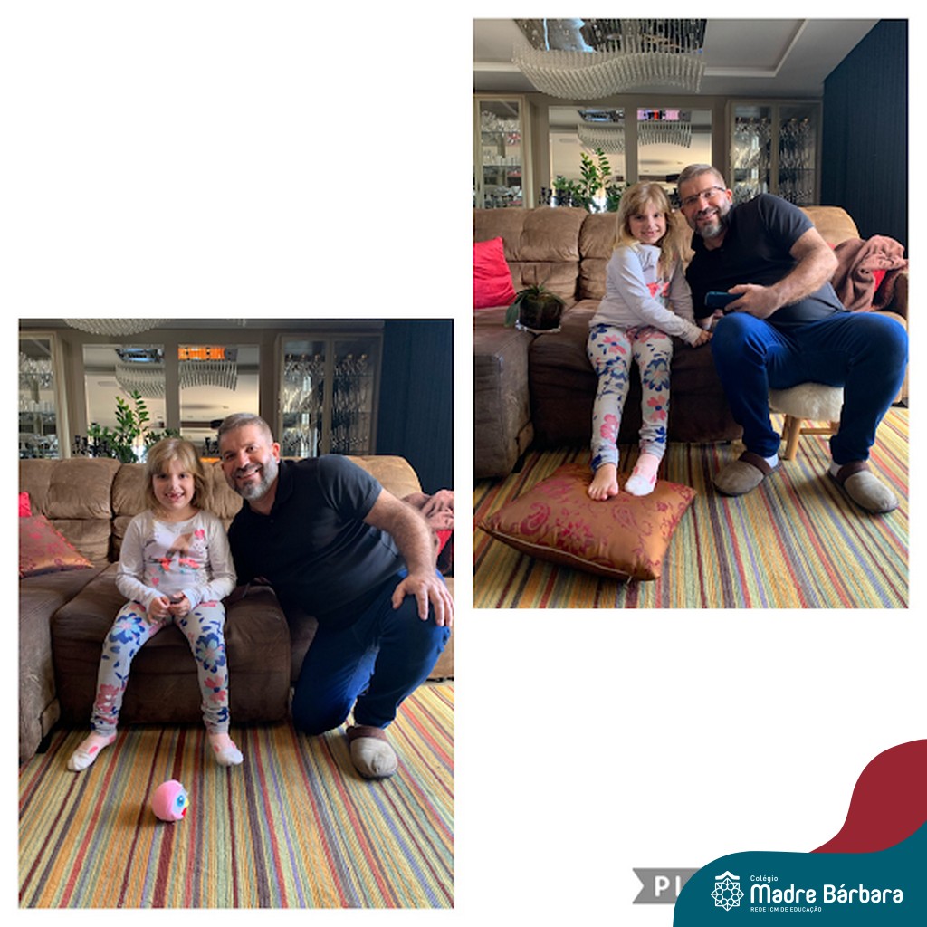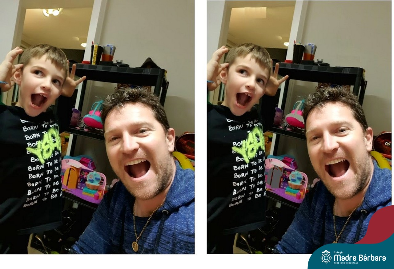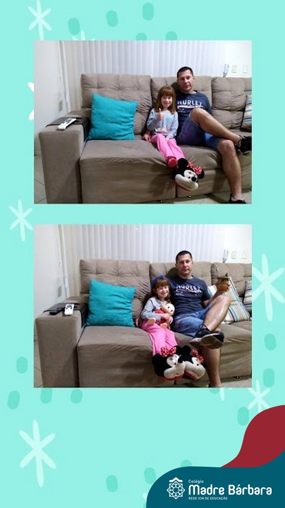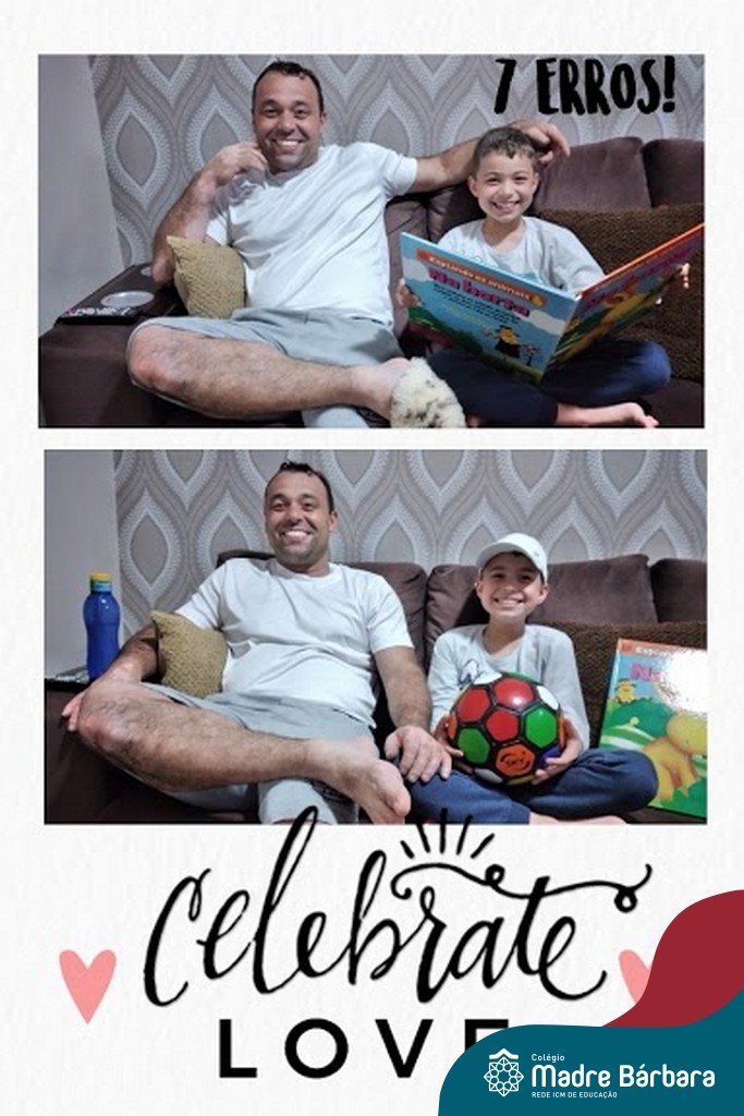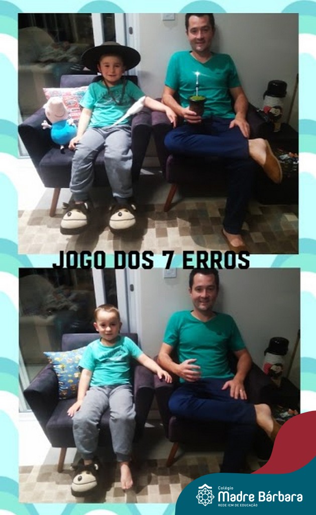 Durante os Estudos Domiciliares que antecederam o dia dos pais, uma das propostas realizadas para as turma 11, 12 e 14, foi a brincadeira dos “7 ERROS”. O desafio das famílias foi registrar através de fotos, a criança e o papai, e postar no mural da turma, no Google Classroom. A atividade foi desafiante e gerou diversão nas salas de aula de cada turma!