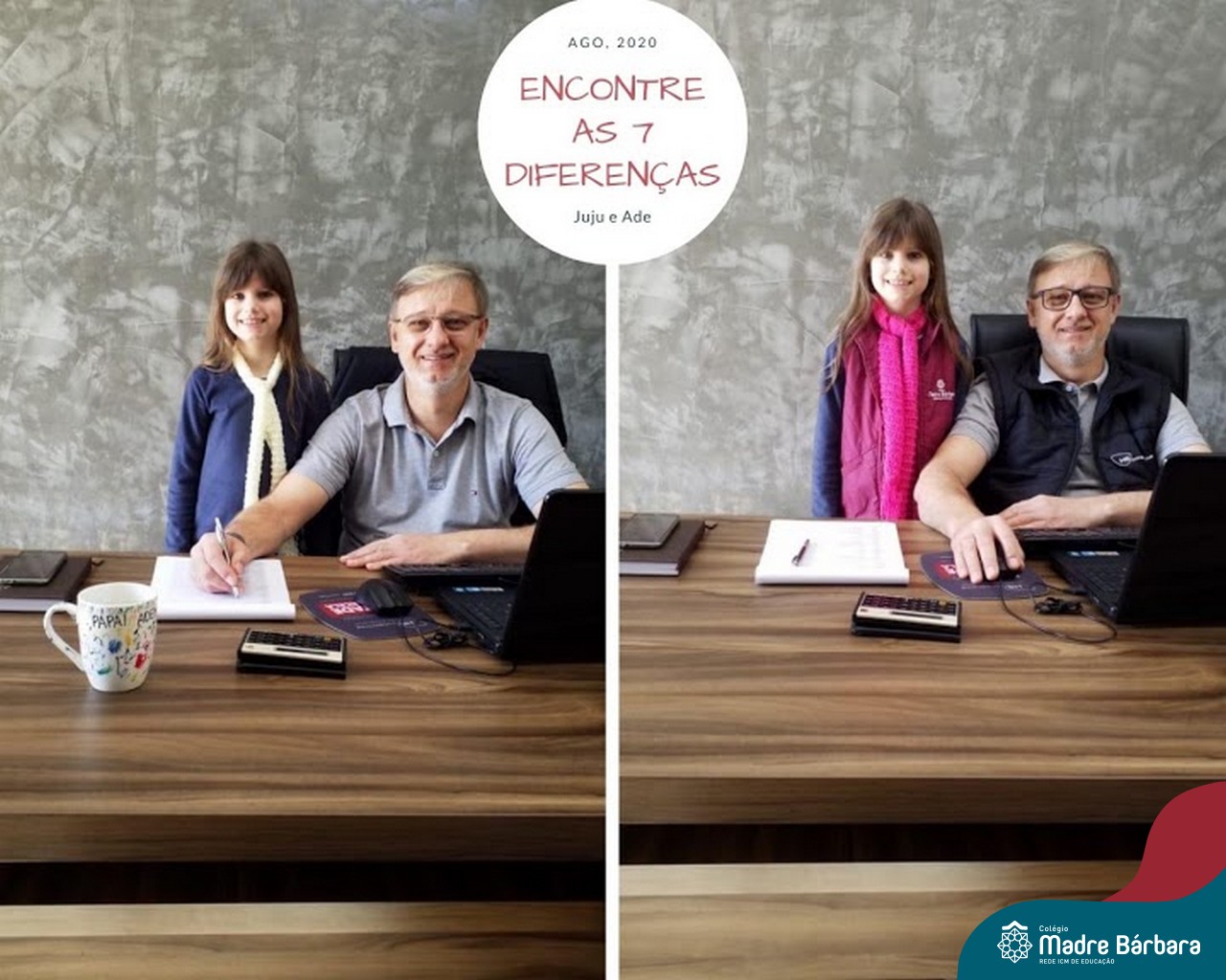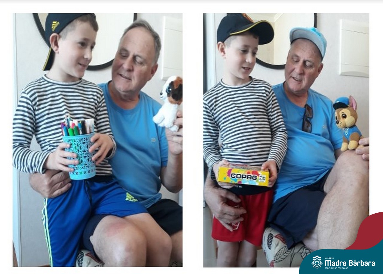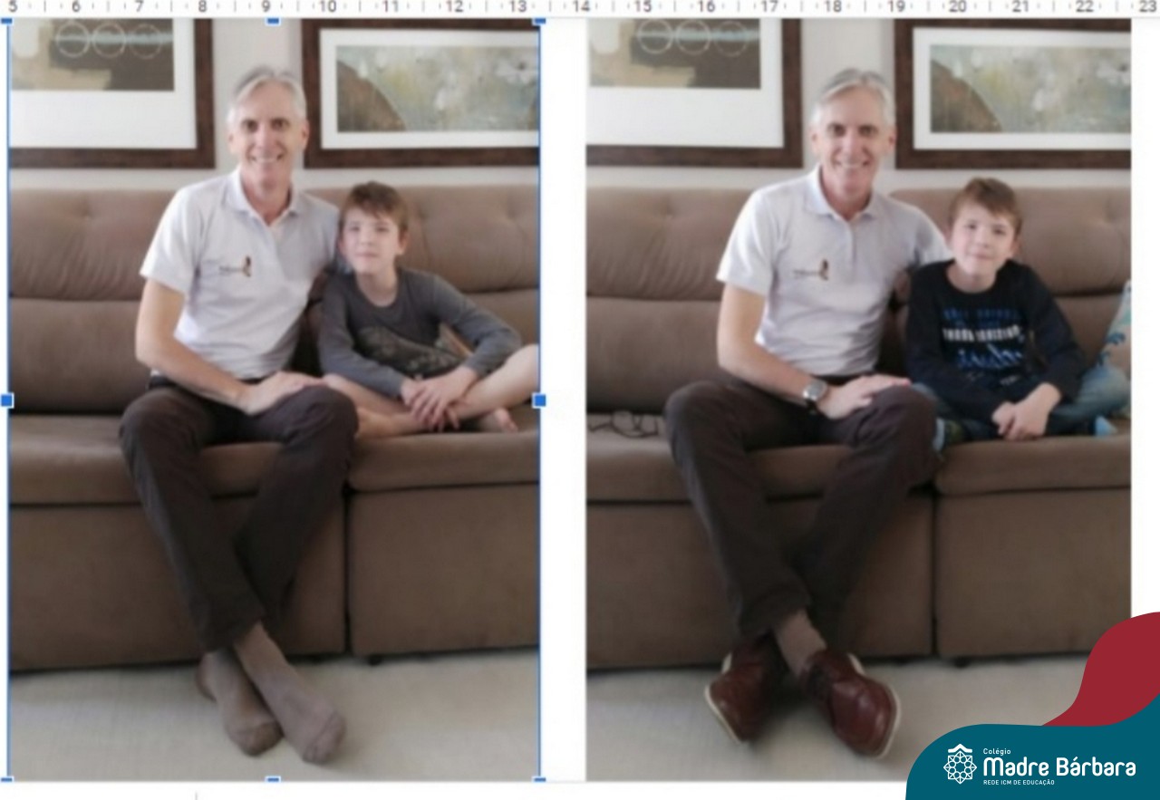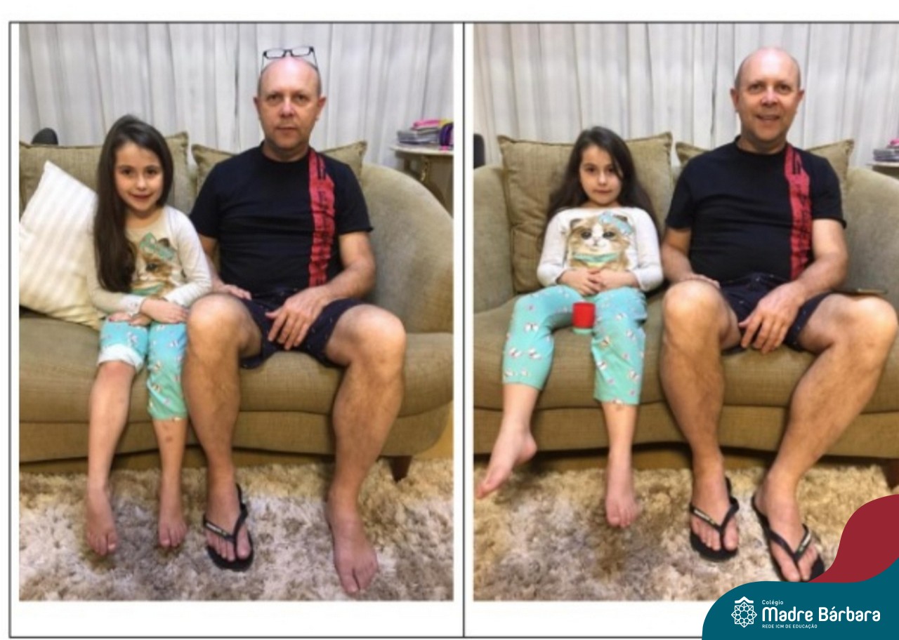 Durante os Estudos Domiciliares que antecederam o dia dos pais, uma das propostas realizadas para as turma 11, 12 e 14, foi a brincadeira dos “7 ERROS”. O desafio das famílias foi registrar através de fotos, a criança e o papai, e postar no mural da turma, no Google Classroom. A atividade foi desafiante e gerou diversão nas salas de aula de cada turma!